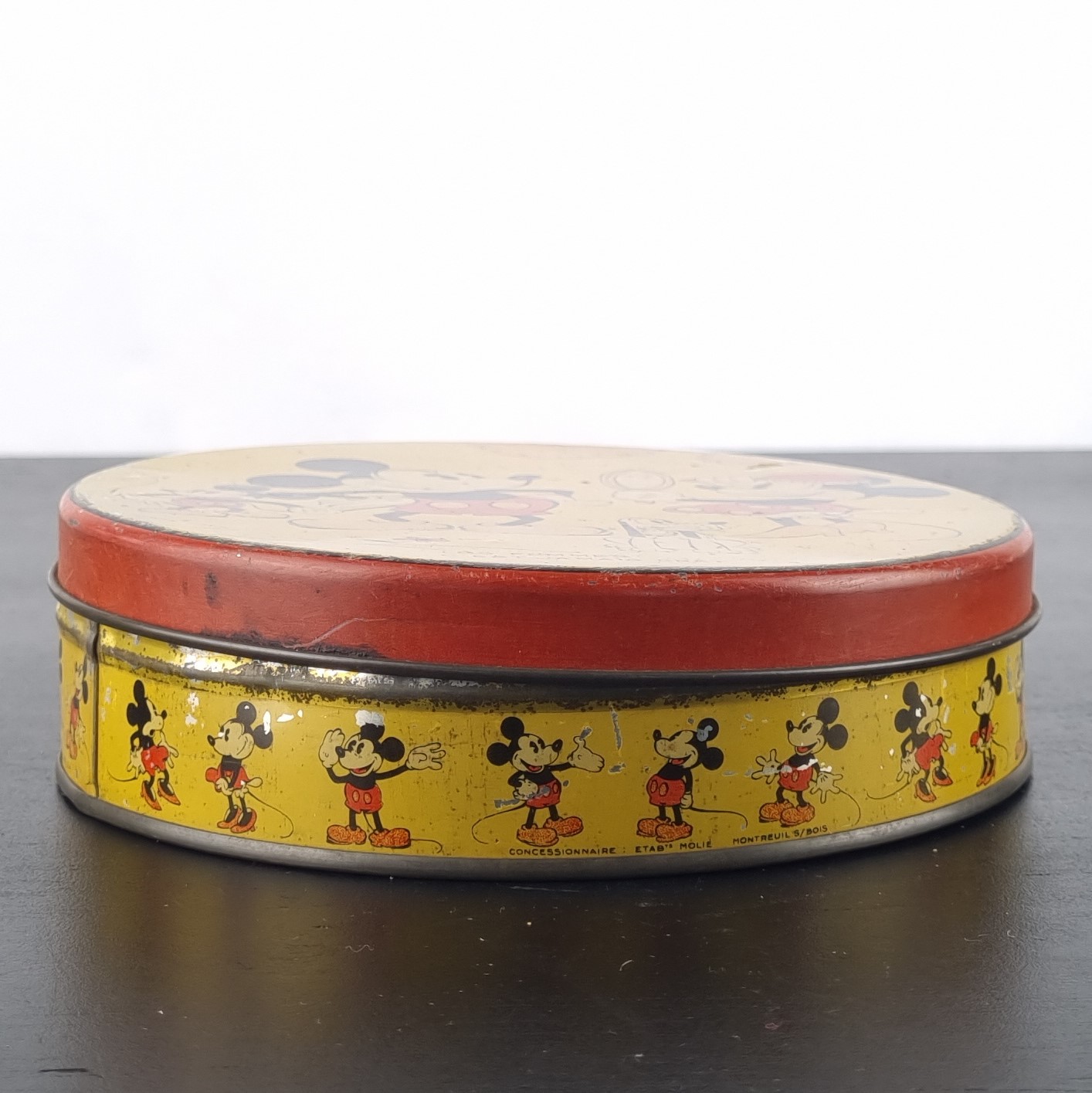 Walt Disney produced from the start merchandise. In the beginning merchandise was more often made from metal then from plastic. This canister was made from metal and displays Mickey Mouse, Minnie Mouse and Pluto. Made in the 30’s, about 90 years old. Most metal items are (partially) destroyed. A big contributor to this is rust.