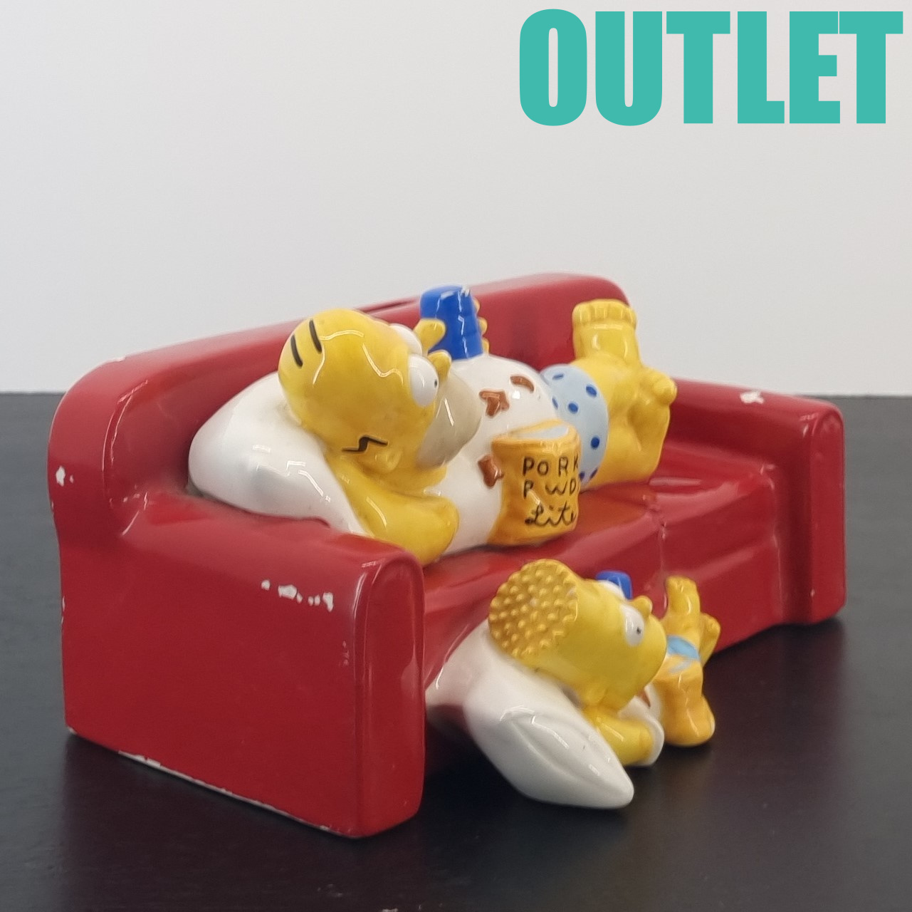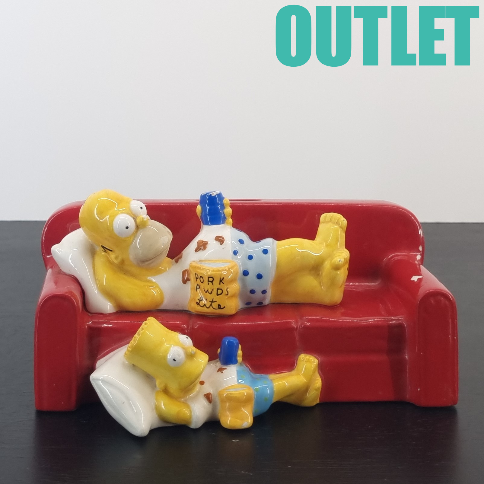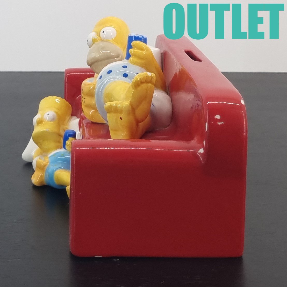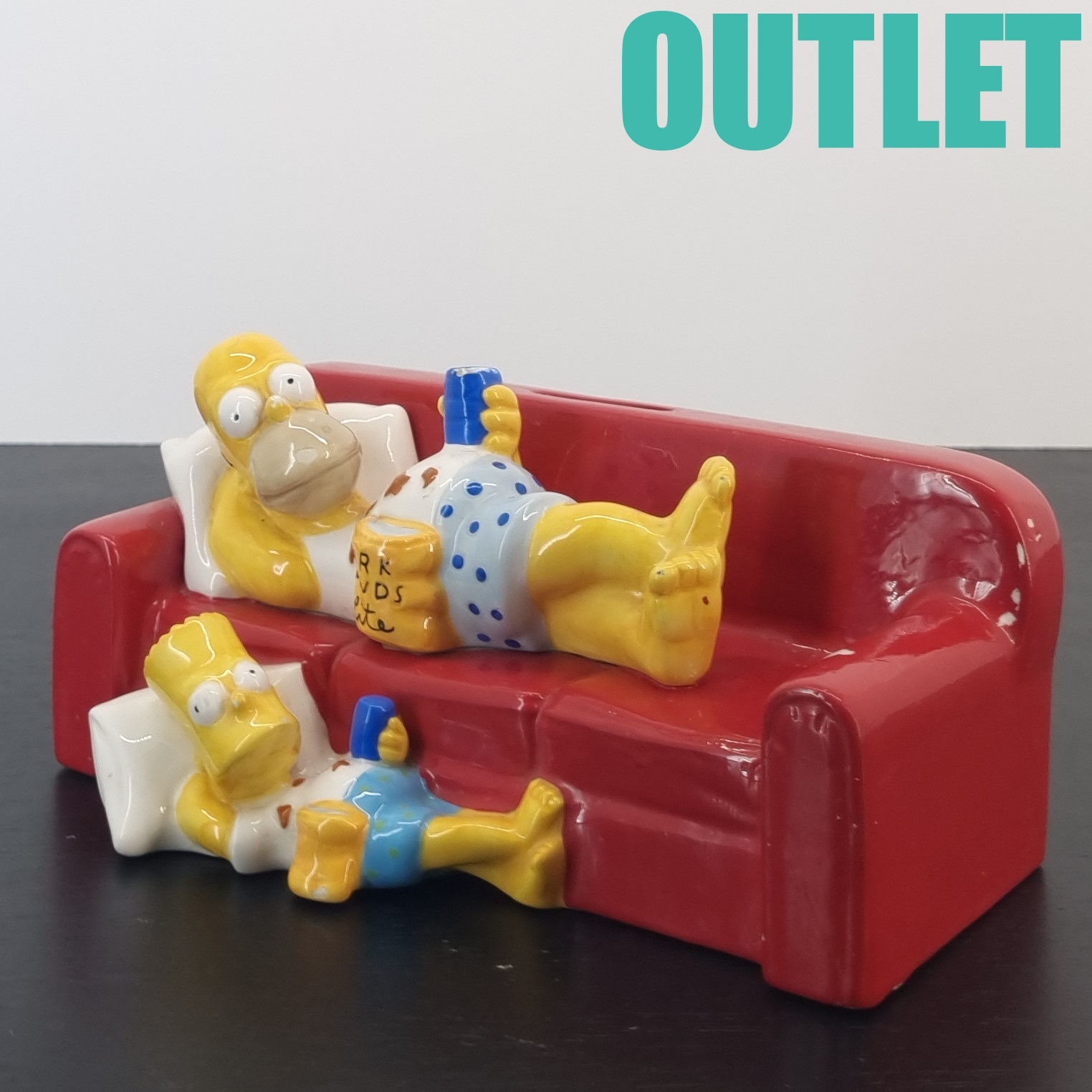 This money box of Homer and Bart Simpson is in our outlet category because it shows wear.