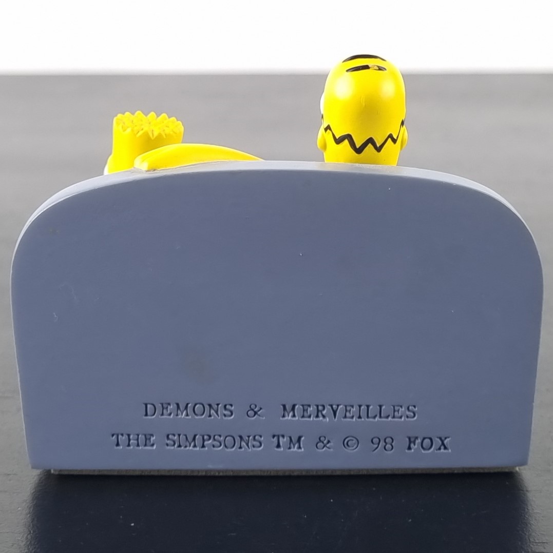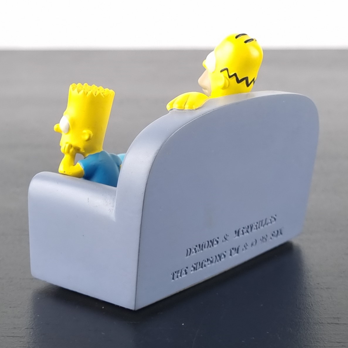 Vintage Bart and Homer on the couch figurine. Demons and Merveilles produced this collectible Simpsons figurine in license of Fox. It is made from high quality resin. This vintage collectible was produced in the year 1990. This Bart and Homer Simpson figurine is in excellent condition.