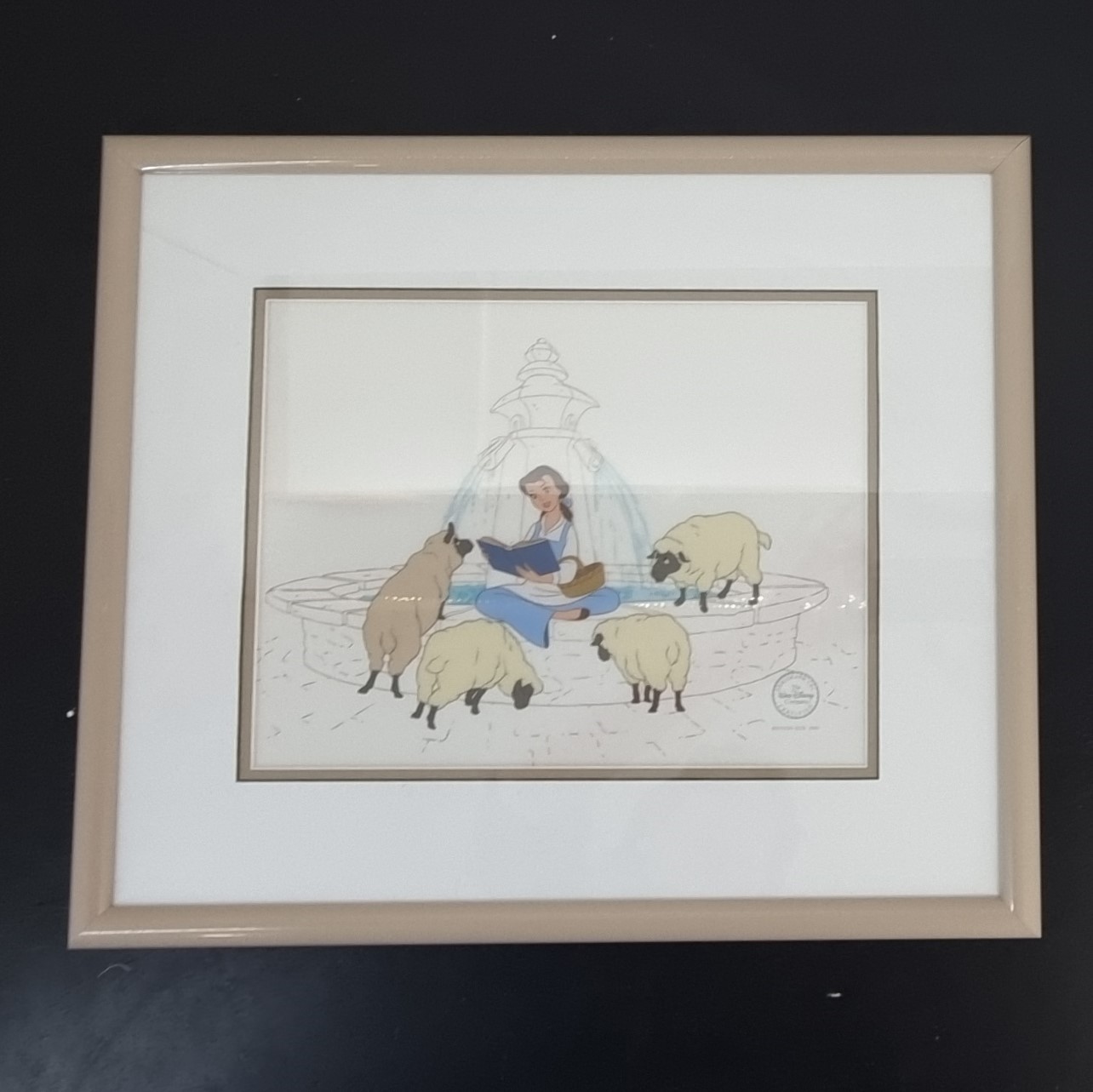 A magnificent collectible of your favorite Walt Disney classic movie; Beauty and the Beast. Here we see Belle, ”Bookish Beauty” reading at the fountain on the square surrounded by the sheeps. A iconic scene from the movie.