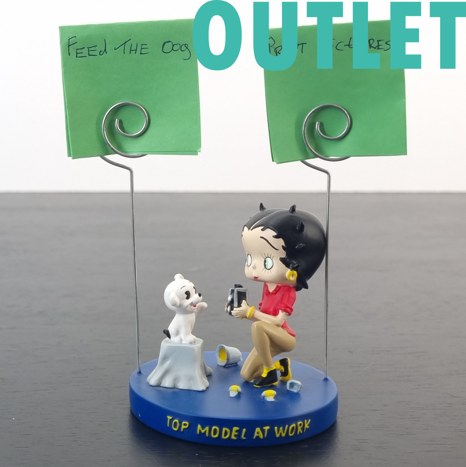 This double memo holder of Betty Boop is in our outlet category because it is has a little chip and some rust.