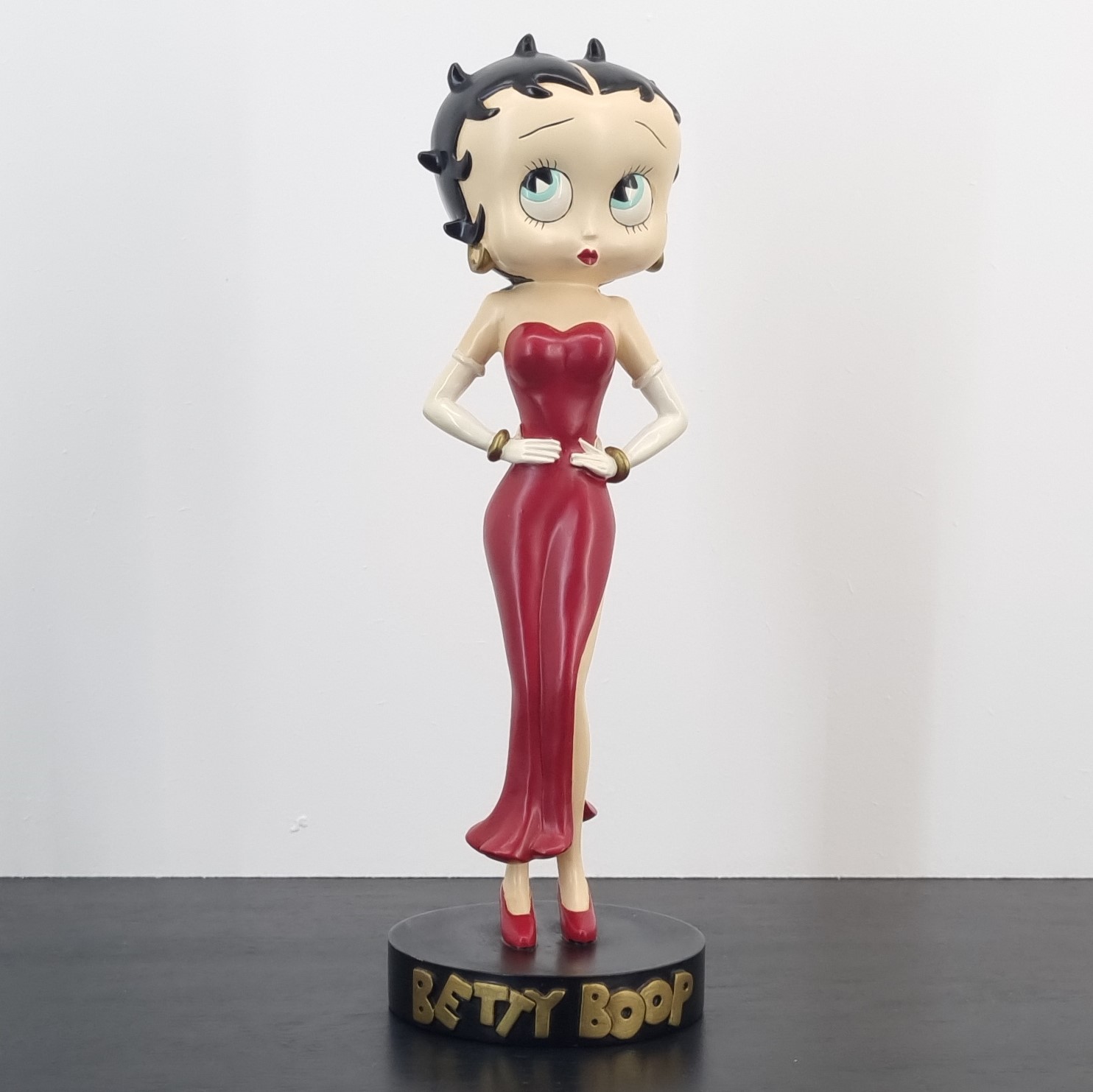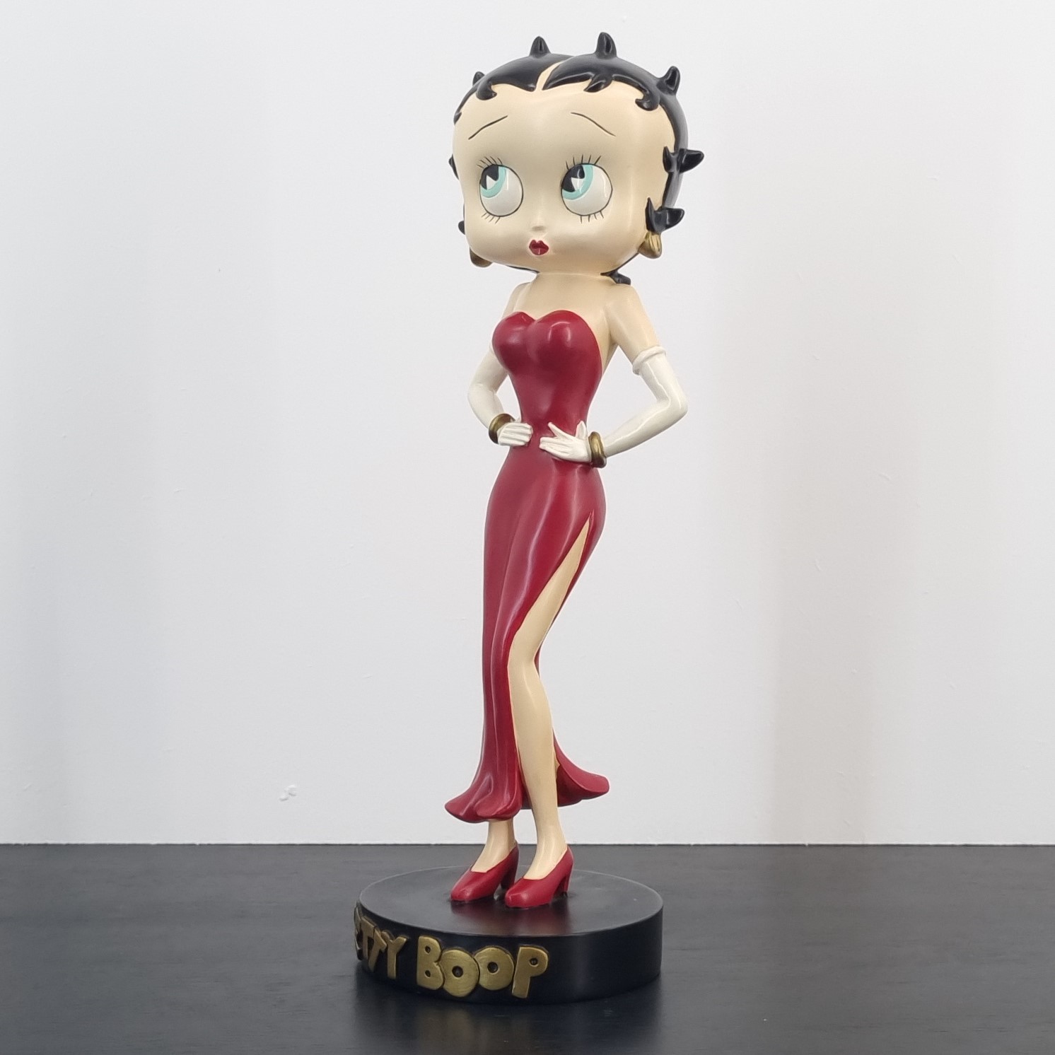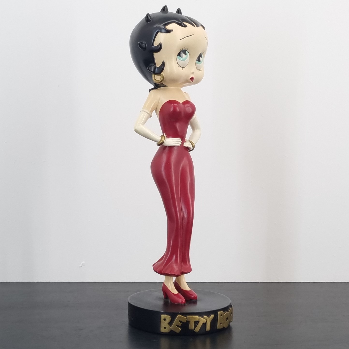 Vintage statue featuring Betty Boop in a elegant red dress, produced by Tropico Diffusion.