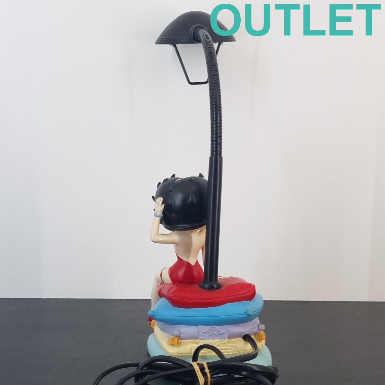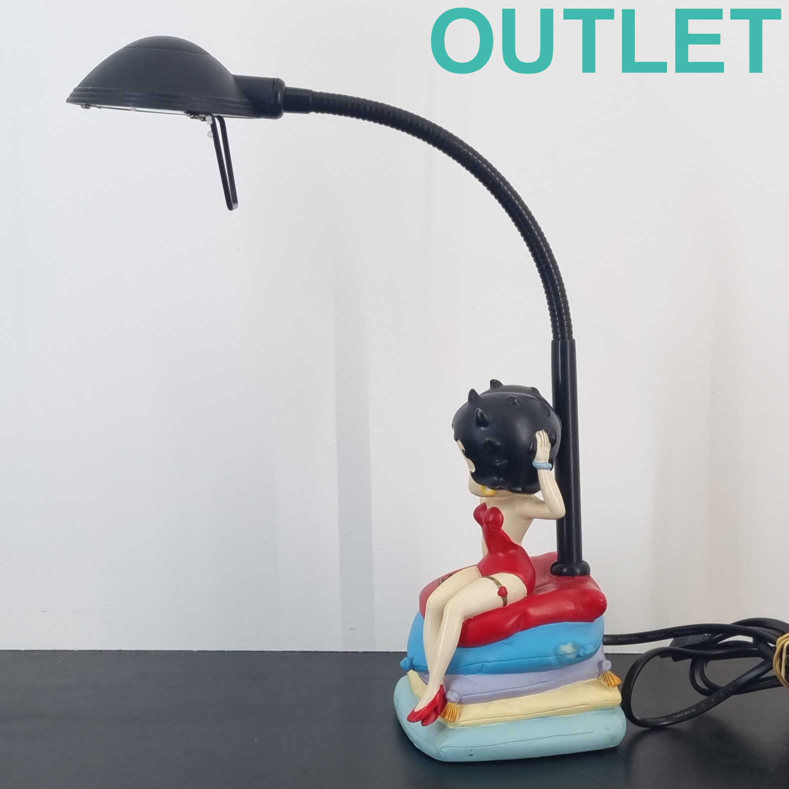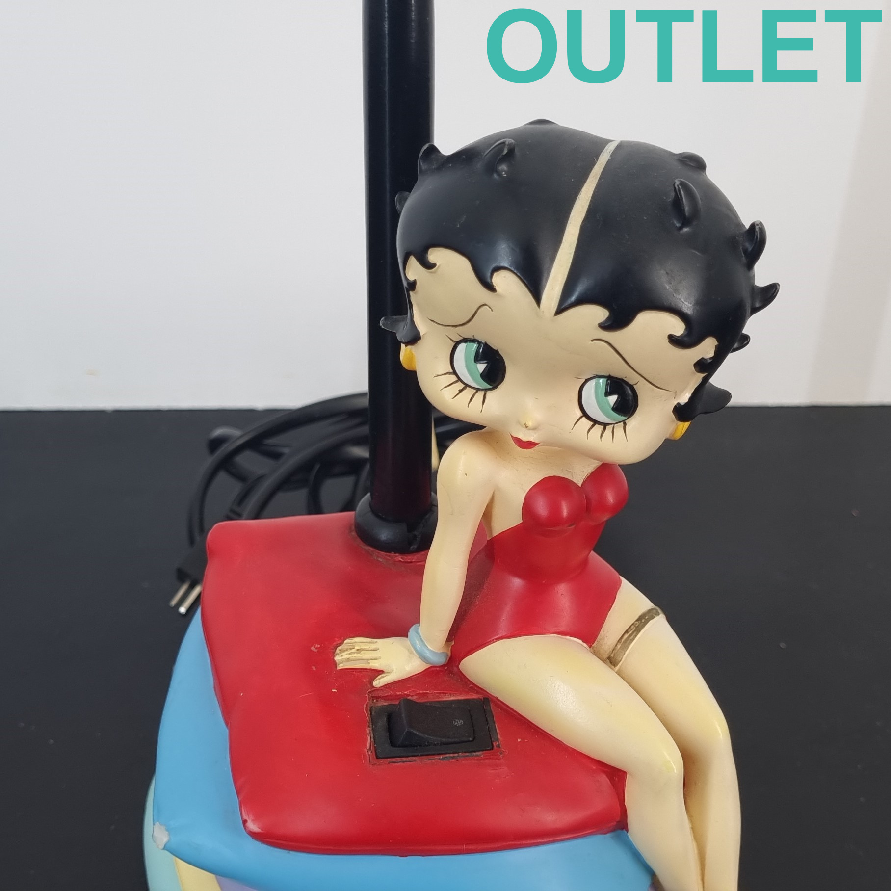 This clock of Betty Boop is in our outlet category because it is missing one point of the blue pillow and it shows wear. The lamp is in working condition. EU outlet.