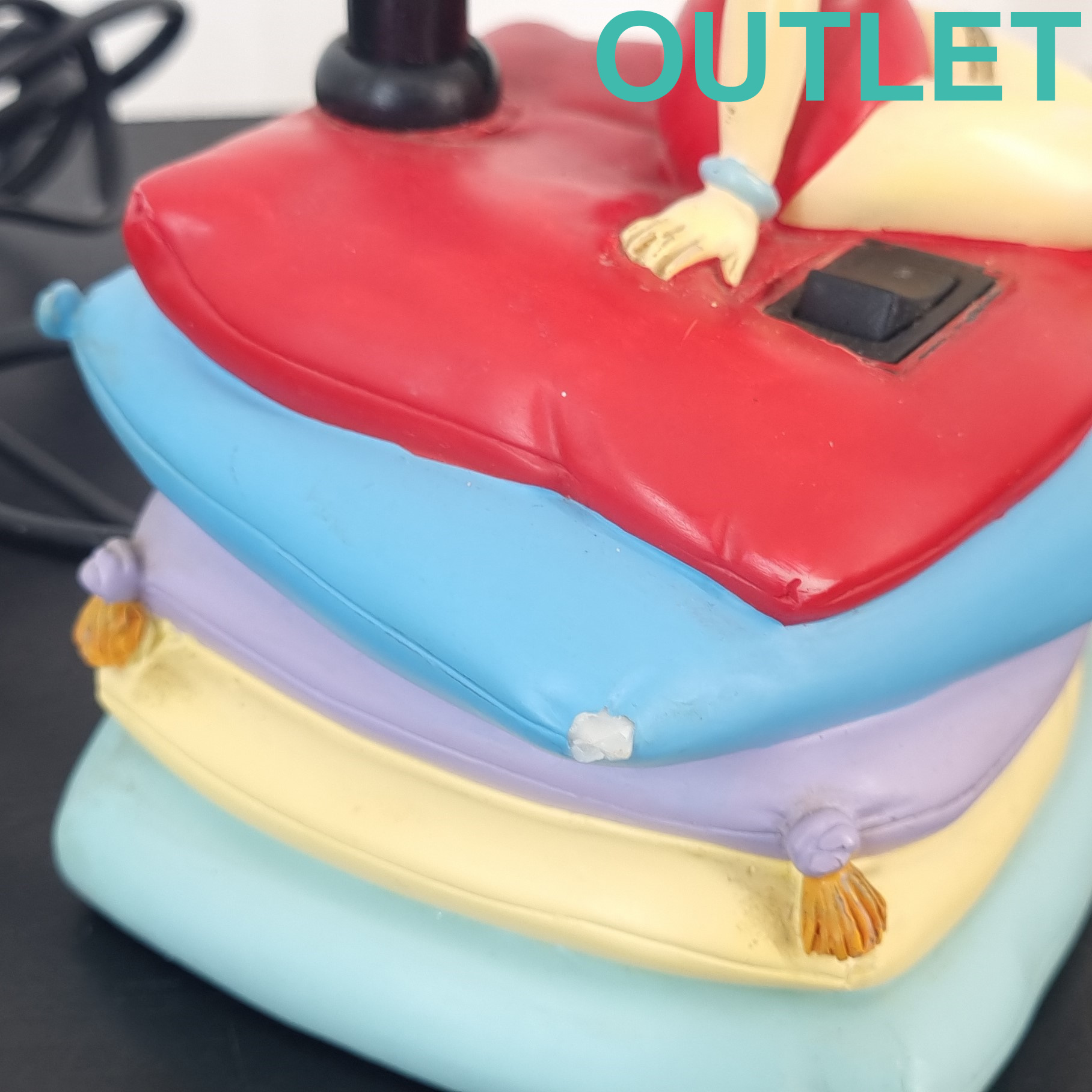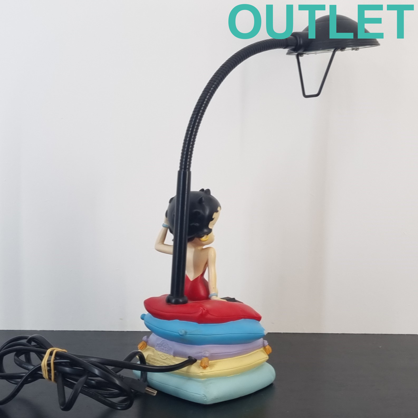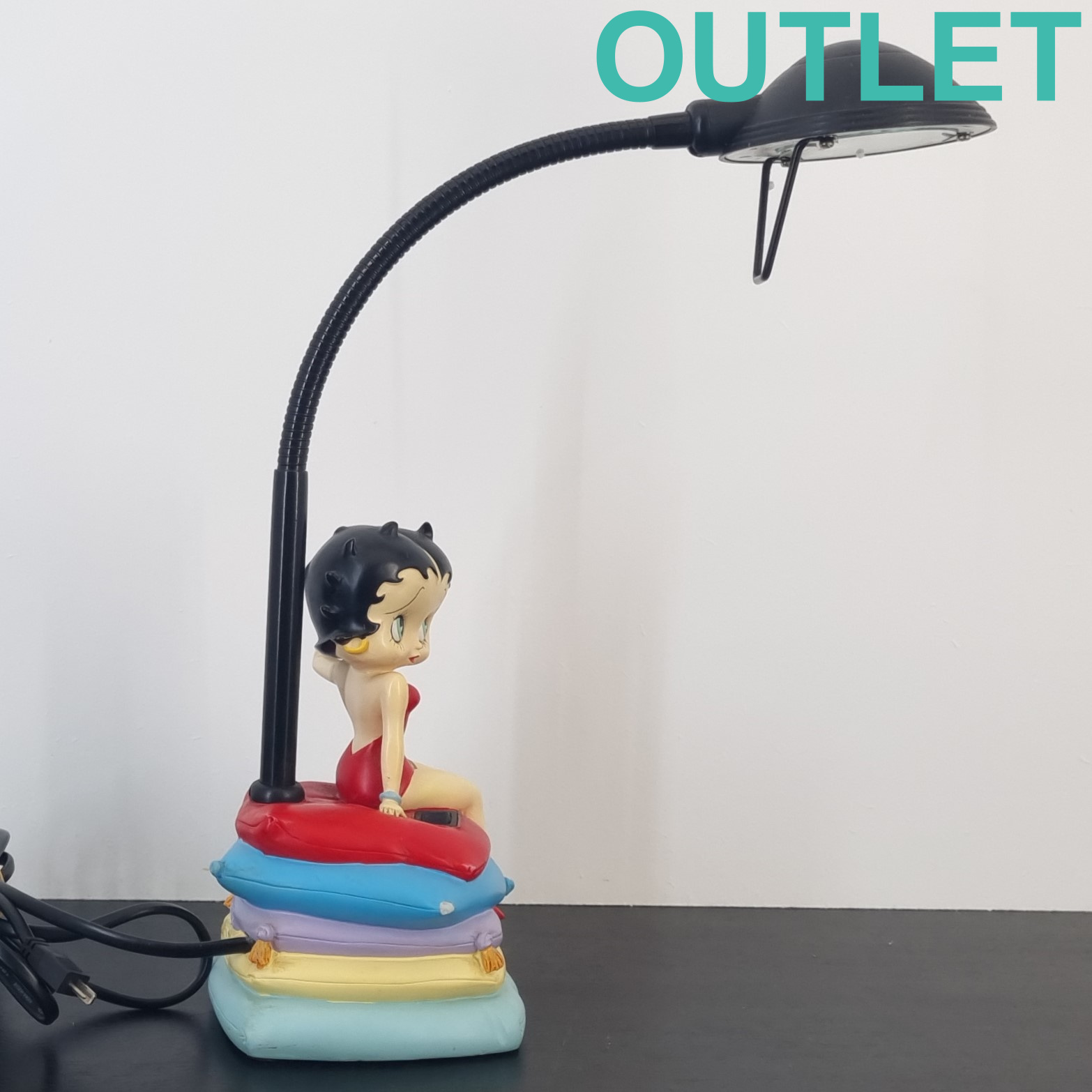 This clock of Betty Boop is in our outlet category because it is missing one point of the blue pillow and it shows wear. The lamp is in working condition. EU outlet.