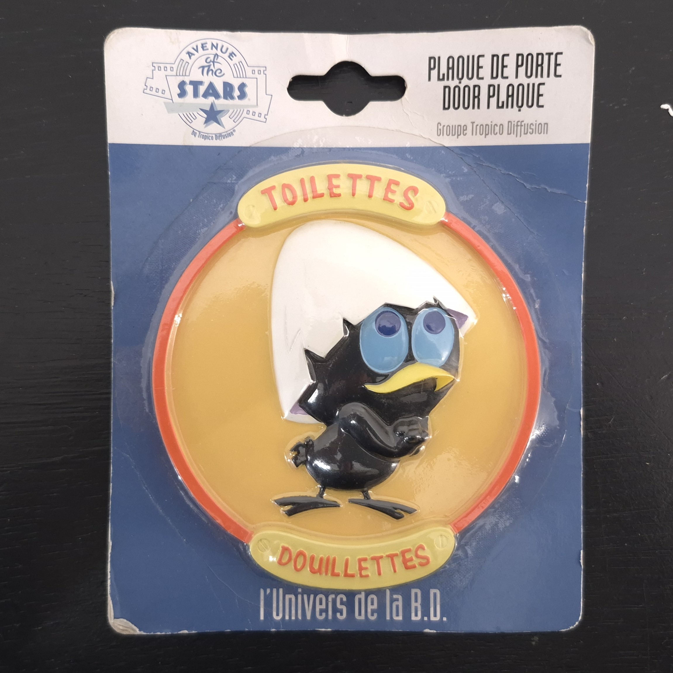 Vintage bathroom plaque featuring Calimero, produced by Tropico Diffusion.