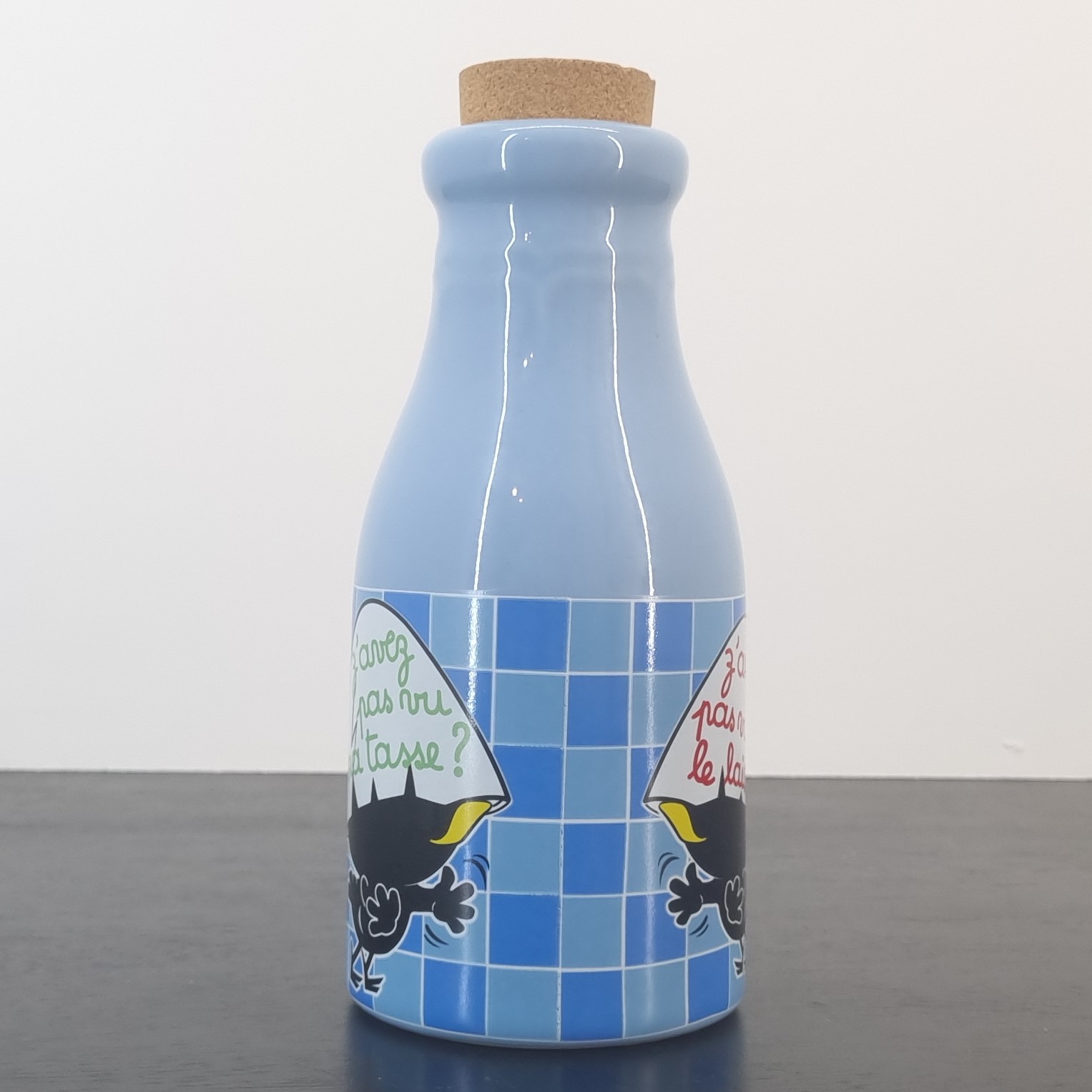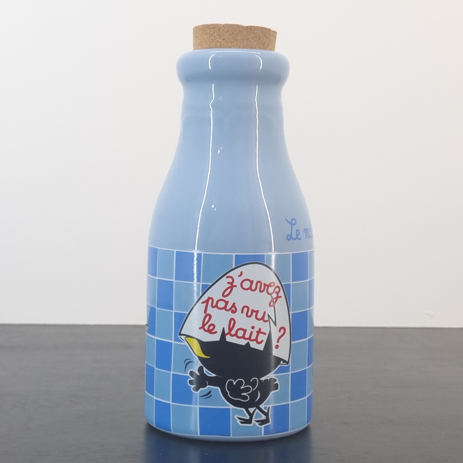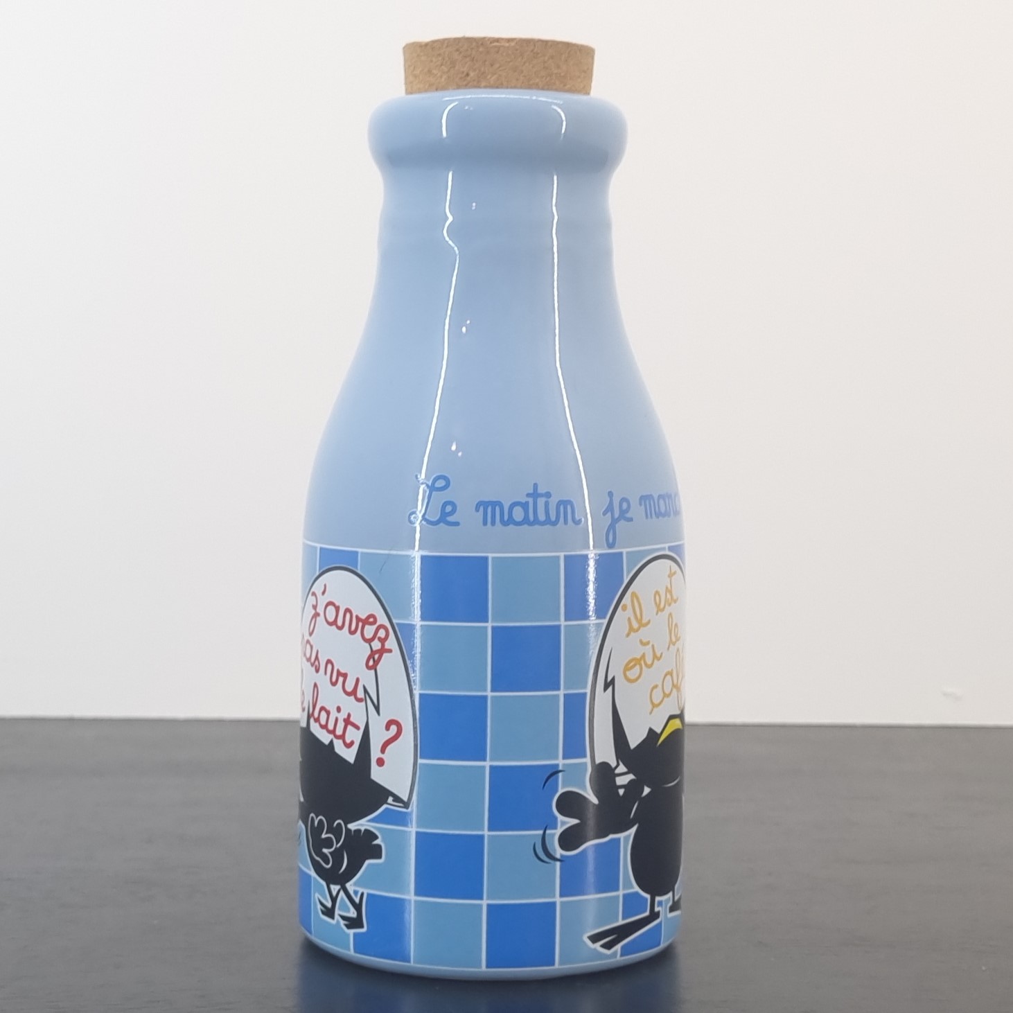 Magnificent milk bottle of Calimero. Every side of the milk bottle has it’s own text.