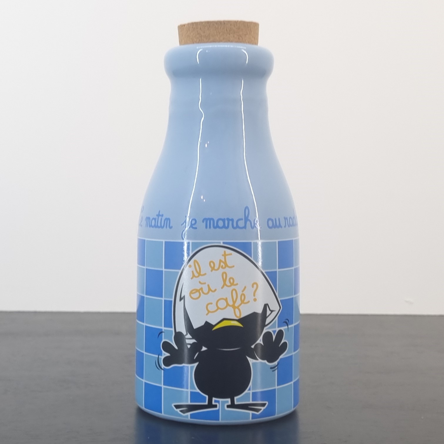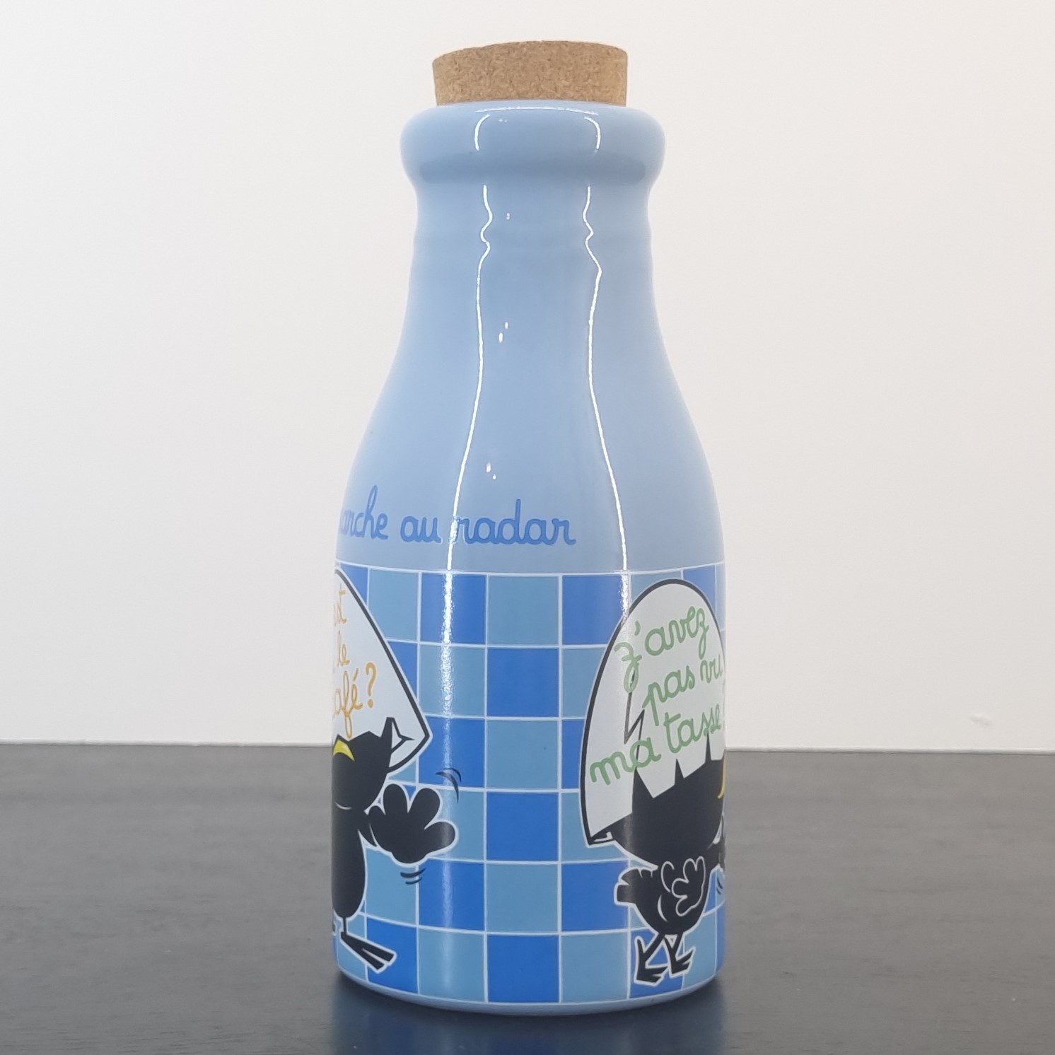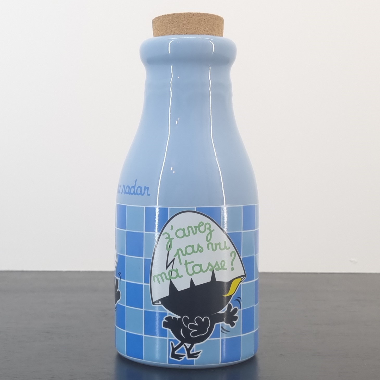 Magnificent milk bottle of Calimero. Every side of the milk bottle has it’s own text.