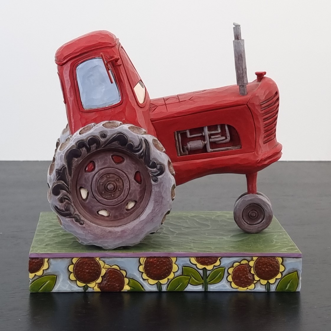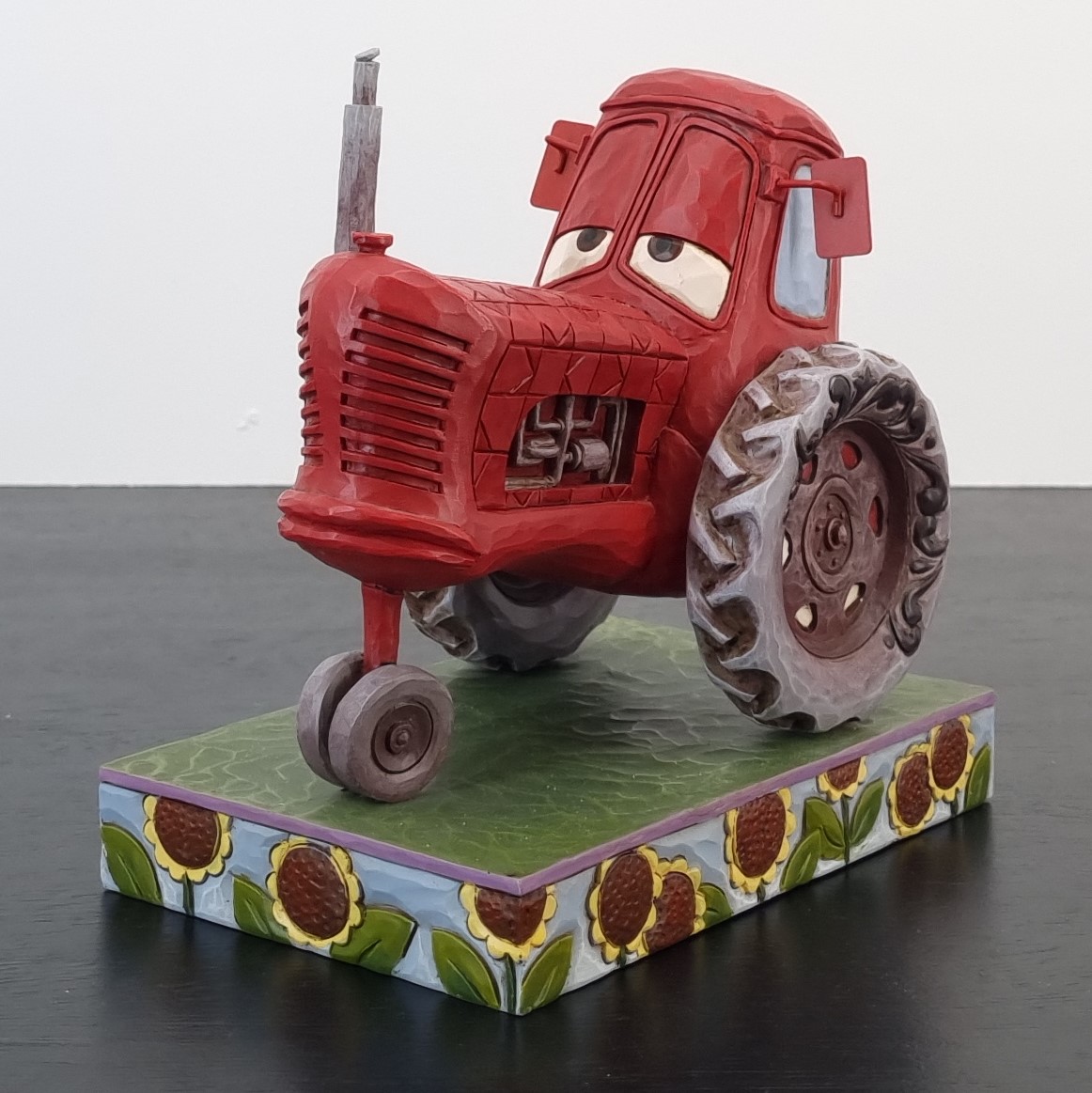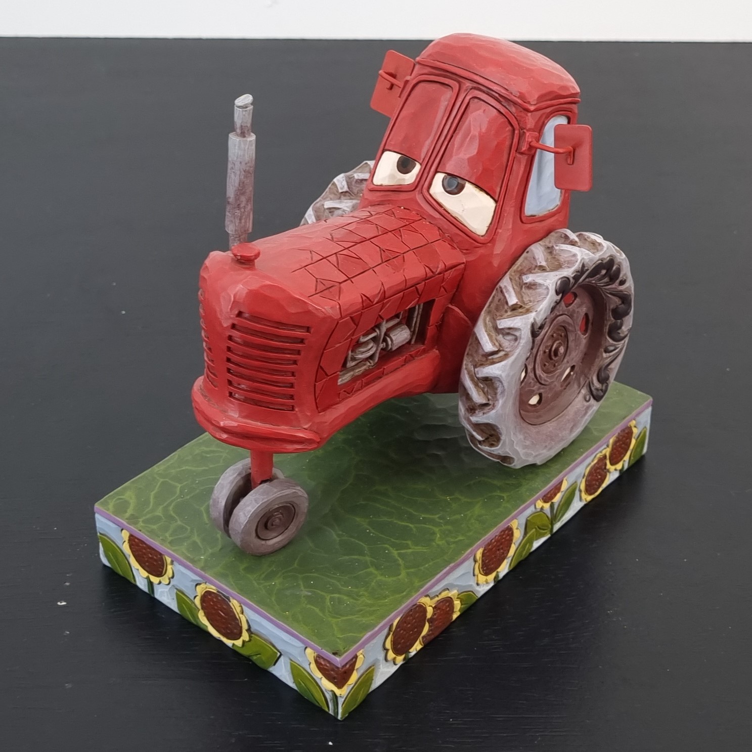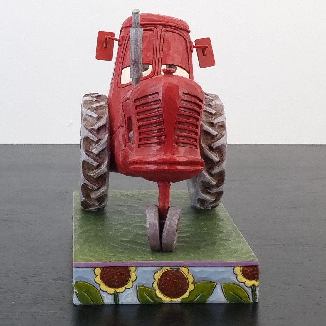 This unique figurine from Cars Tractor was sculpted by Jim Shore under Walt Disney’s license. It was taken in production by Enesco for their Walt Disney Traditions collection. Dates back to 2015. Crafted from durable stone resin, it remains in excellent condition. Celebrate the whimsical charm of Pixar’s “Cars” with the “Moooooo” statue, featuring the iconic Tractor character. Add this unique collectible to your collection and bring a touch of Radiator Springs to your home!