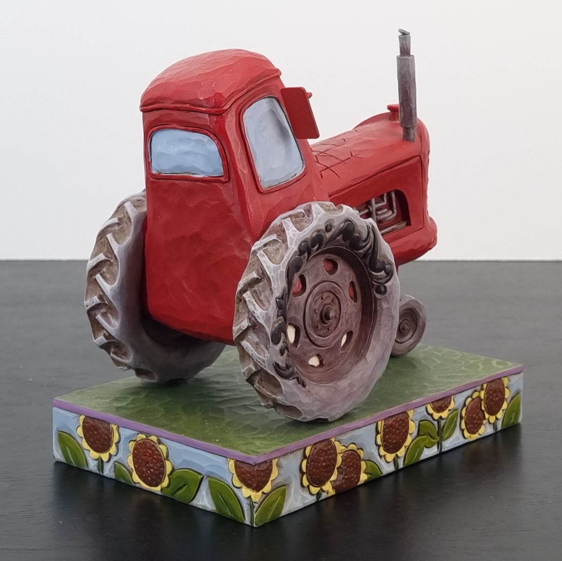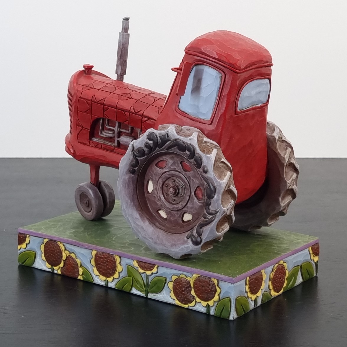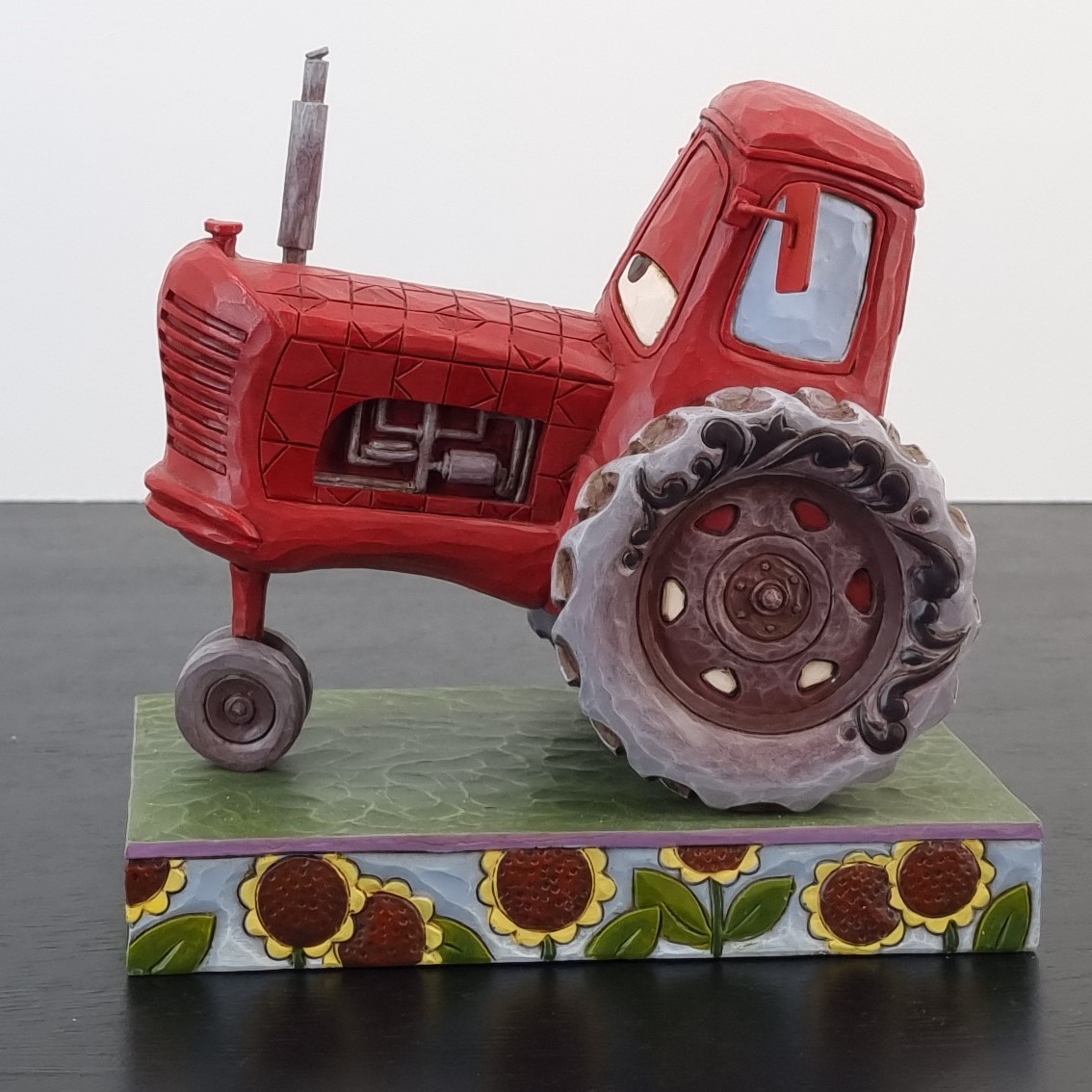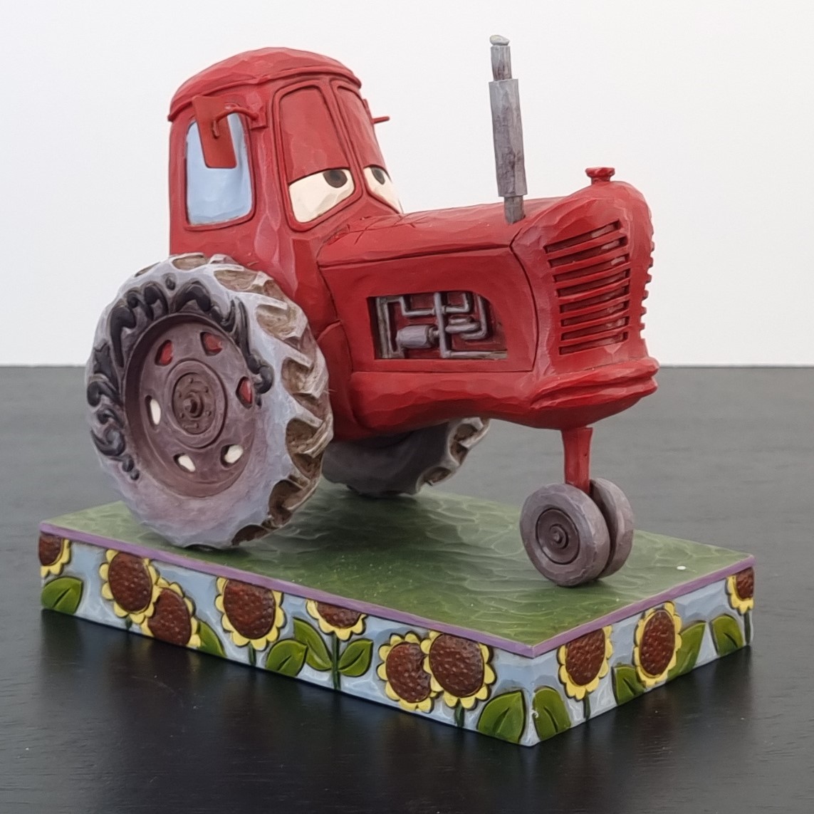 This unique figurine from Cars Tractor was sculpted by Jim Shore under Walt Disney’s license. It was taken in production by Enesco for their Walt Disney Traditions collection. Dates back to 2015. Crafted from durable stone resin, it remains in excellent condition. Celebrate the whimsical charm of Pixar’s “Cars” with the “Moooooo” statue, featuring the iconic Tractor character. Add this unique collectible to your collection and bring a touch of Radiator Springs to your home!
