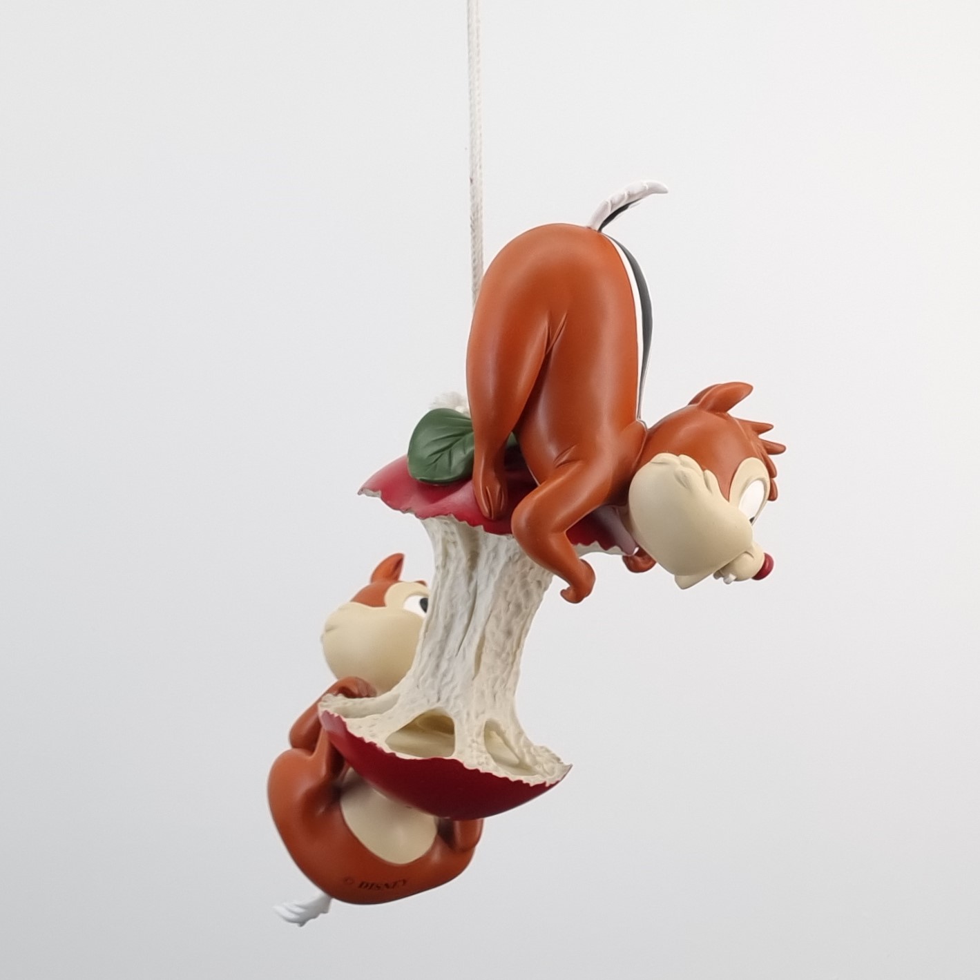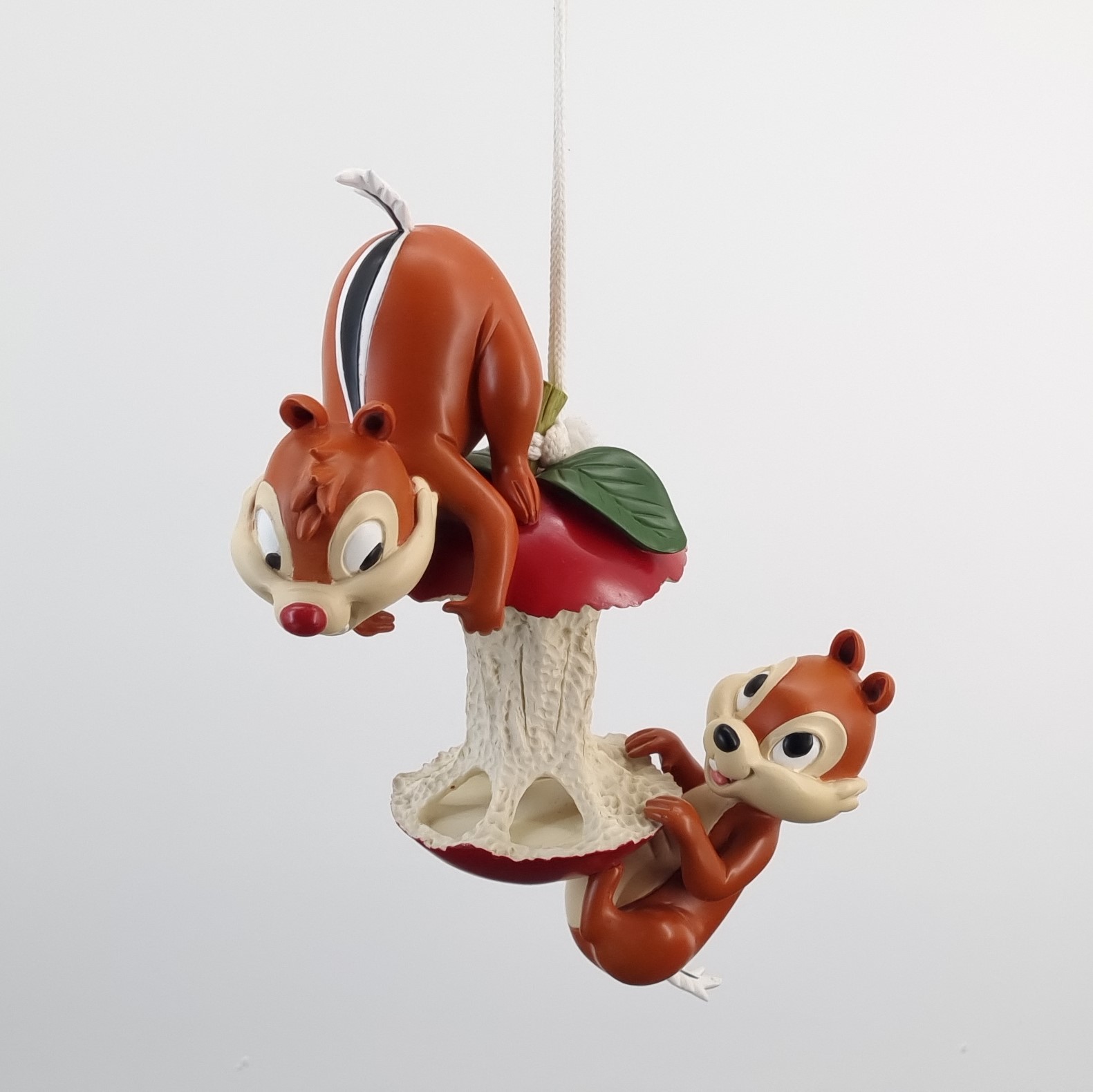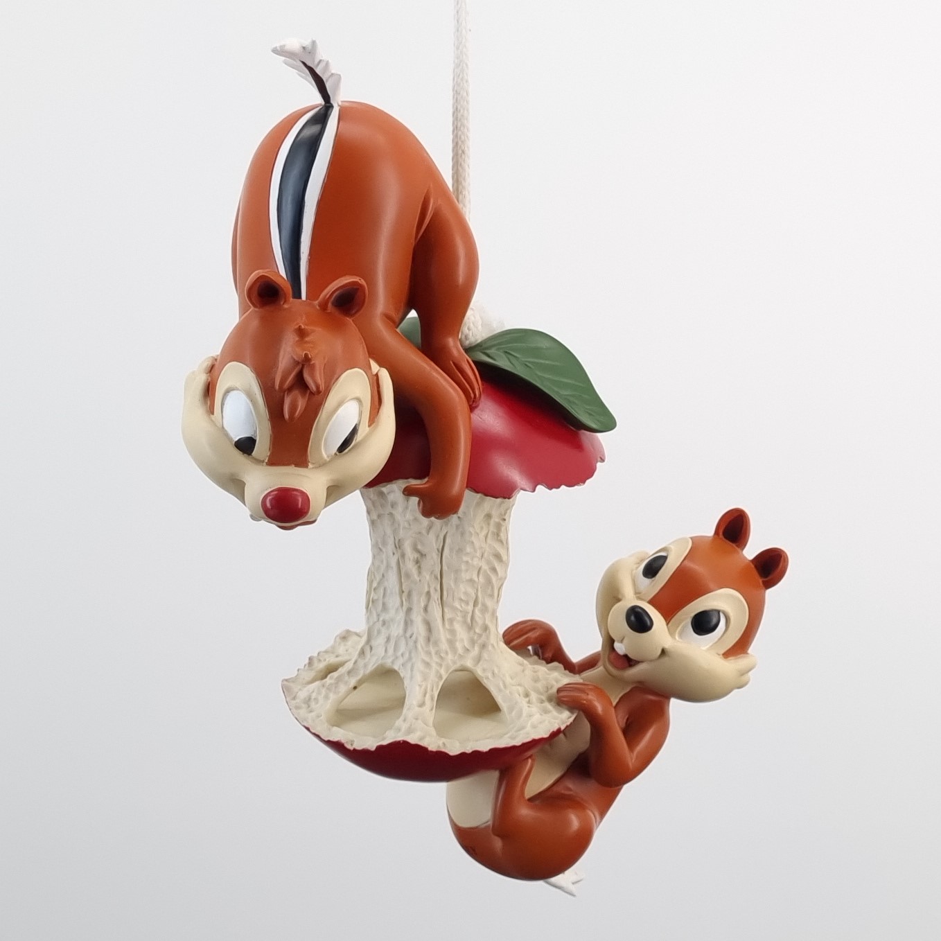 This statue from Chip and Dale was sculpted by Peter Mook under Walt Disney’s license. It was taken in production by Rutten. Dates back to the 1990s. Crafted from durable resin, it remains in excellent condition. Add a touch of Disney magic to your garden with this charming bird feeder, shaped like a nibbled apple and featuring Chip and Dale playfully perched. Perfect for any fan, this whimsical piece brings the playful antics of the beloved duo to your outdoor space. Invite nature and nostalgia into your garden with this delightful and functional addition!