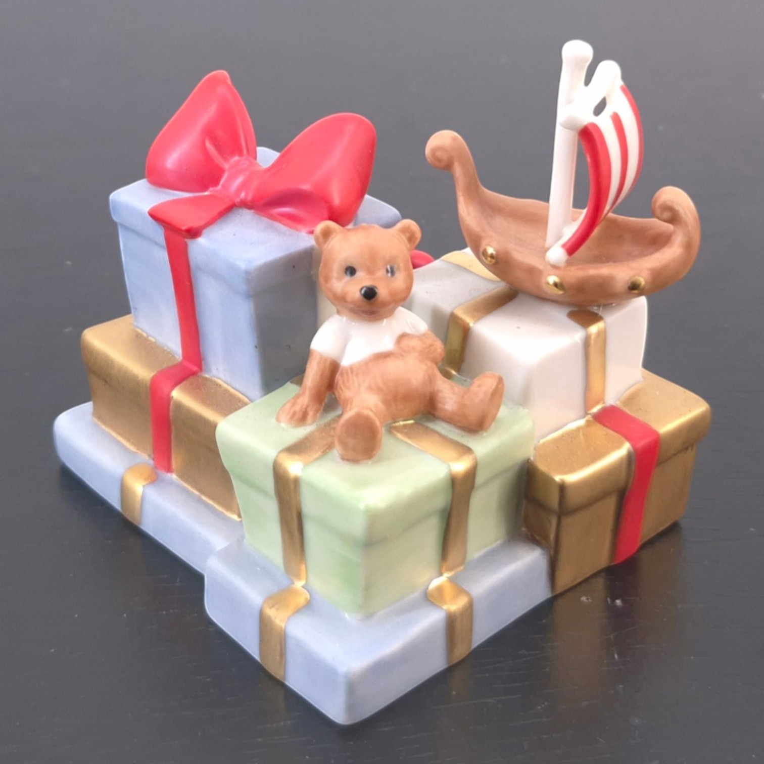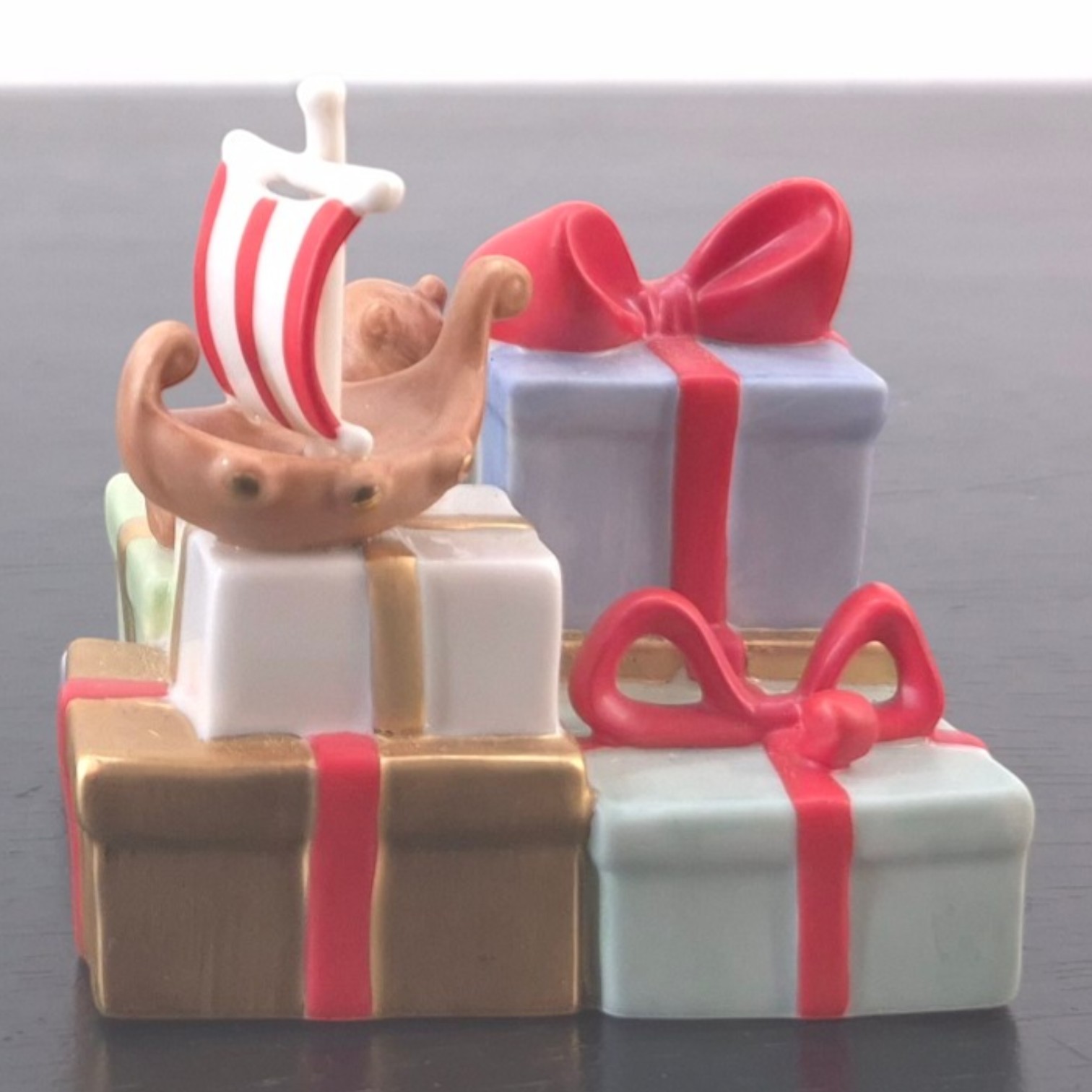 Vintage sculpture featuring Christmas presents, produced by Fyrklövern.