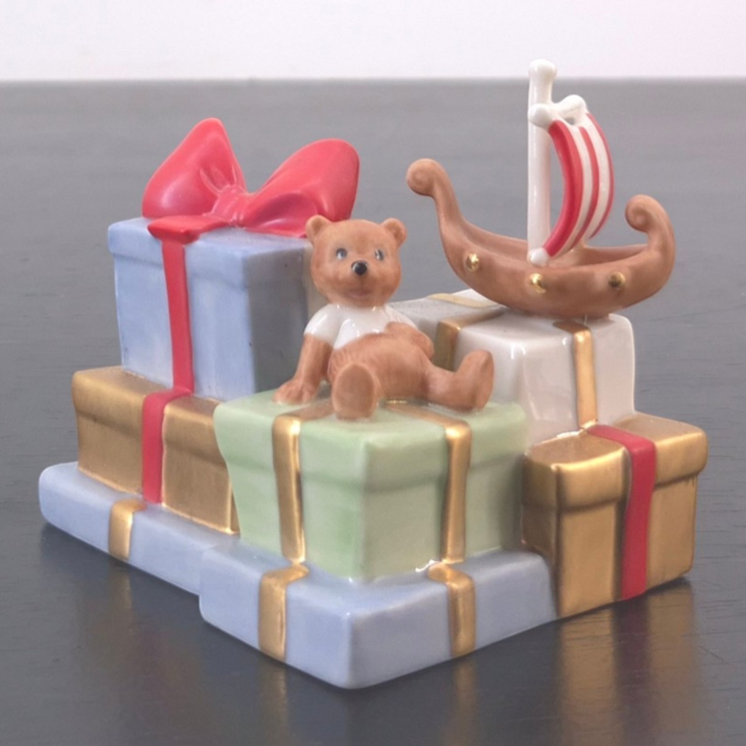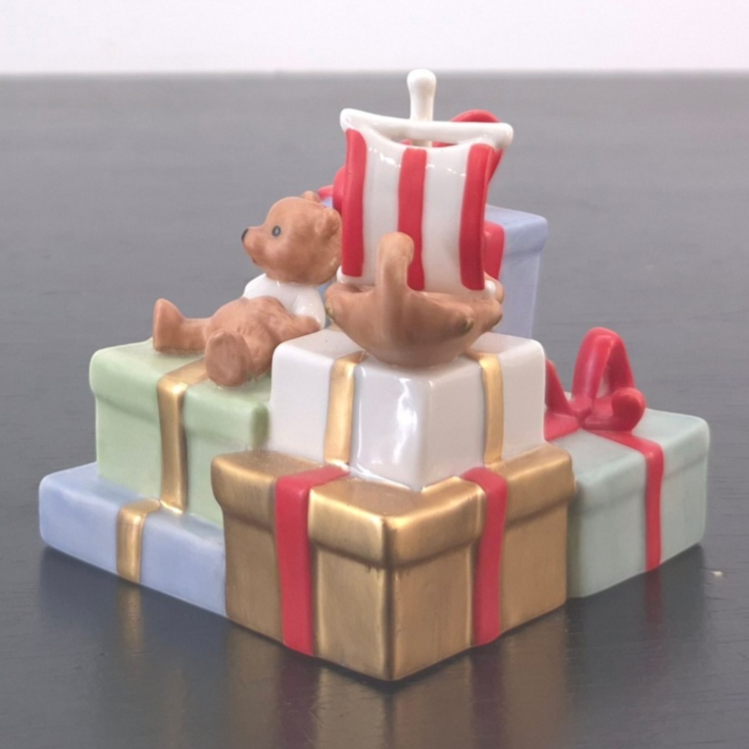 These Christmas presents are part of Mickey’s Christmas Eve (Musses Julafton), a festive display set from Stefan Lindahl’s Disney Collection created under Disney’s license and issued by Fyrklövern. Dates back to the 2000s. Crafted from durable porcelain, it remains in excellent condition. Although modest in size, this element plays an important role within the full display. It brings warmth, balance and storytelling to the scene, complementing the surrounding character figures and larger decorative components. On its own, it works as an attractive miniature holiday collectible; as part of the complete set, it strengthens the festive atmosphere that defines Mickey’s Christmas Eve.