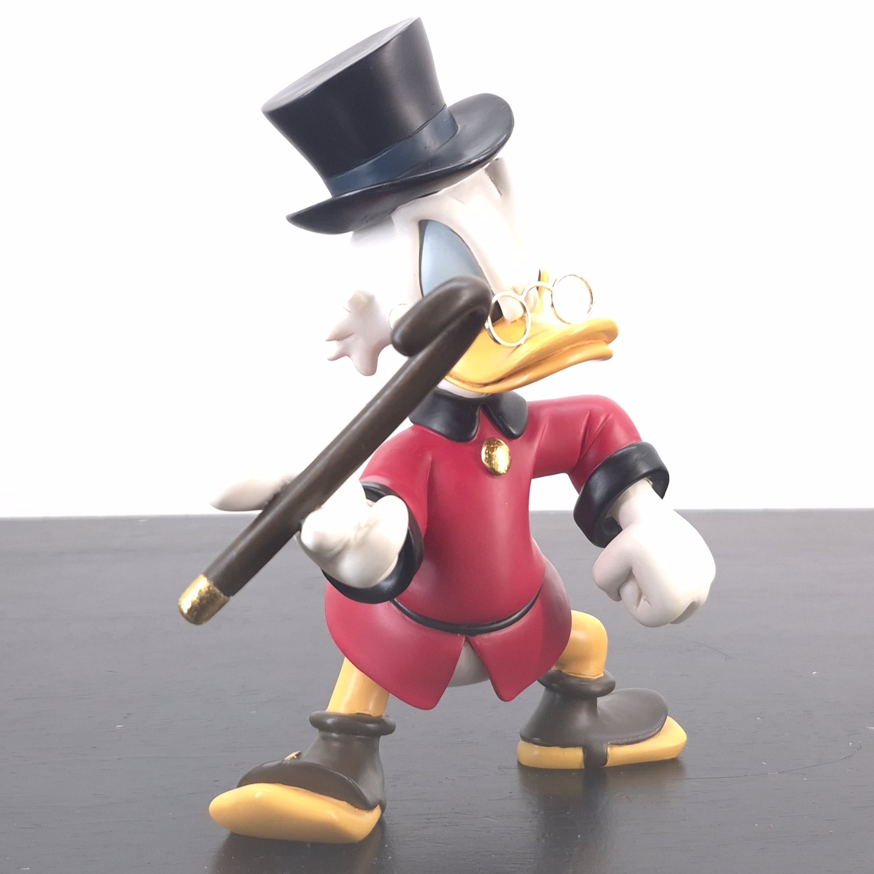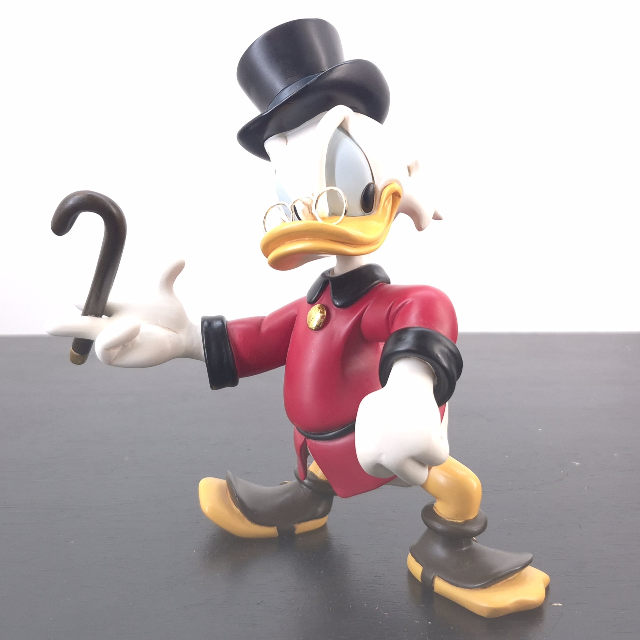 Vintage statue featuring Scrooge McDuck waving with his cane, produced by Rutten.
