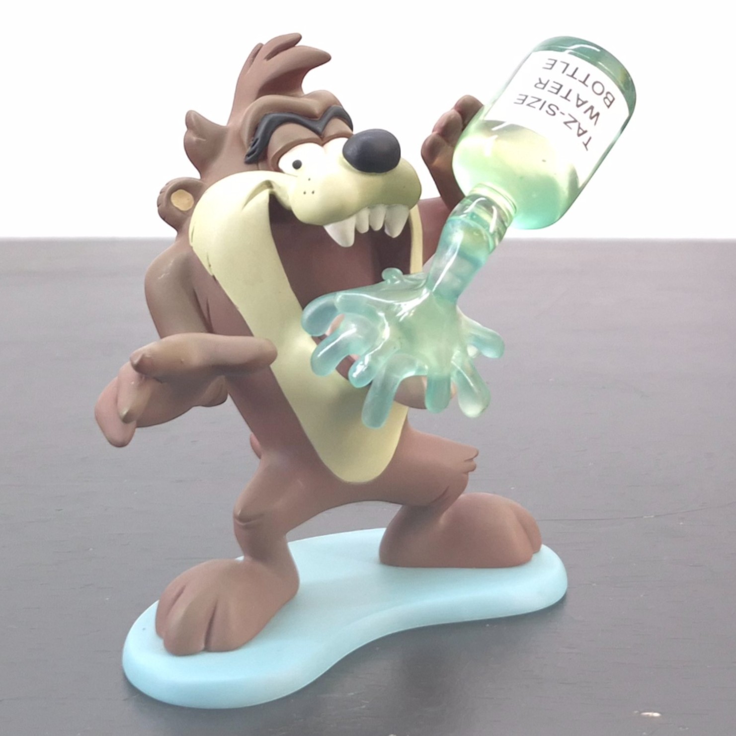 Vintage statue featuring Tasmanian Devil drinking a Taz-Size water bottle, produced by The David Kracov Gallery.