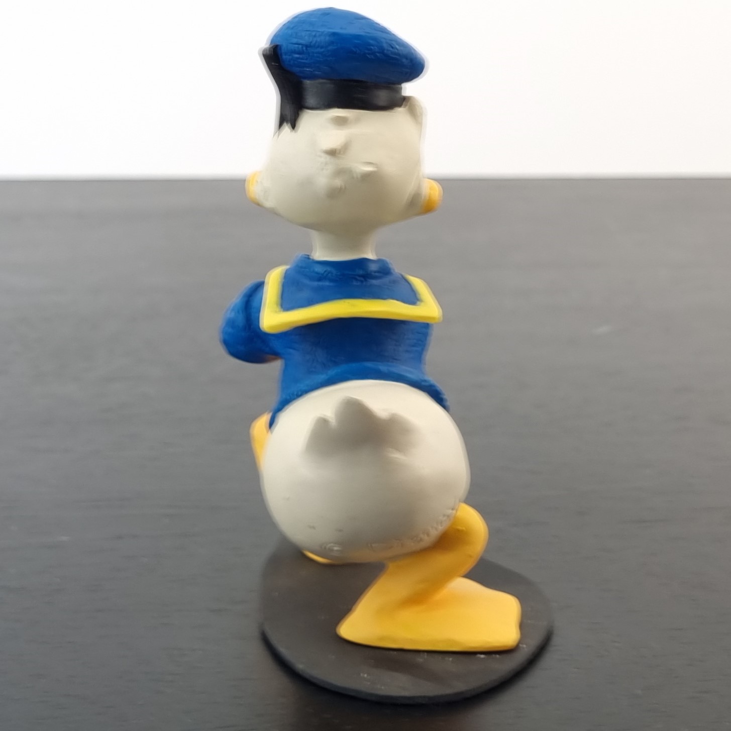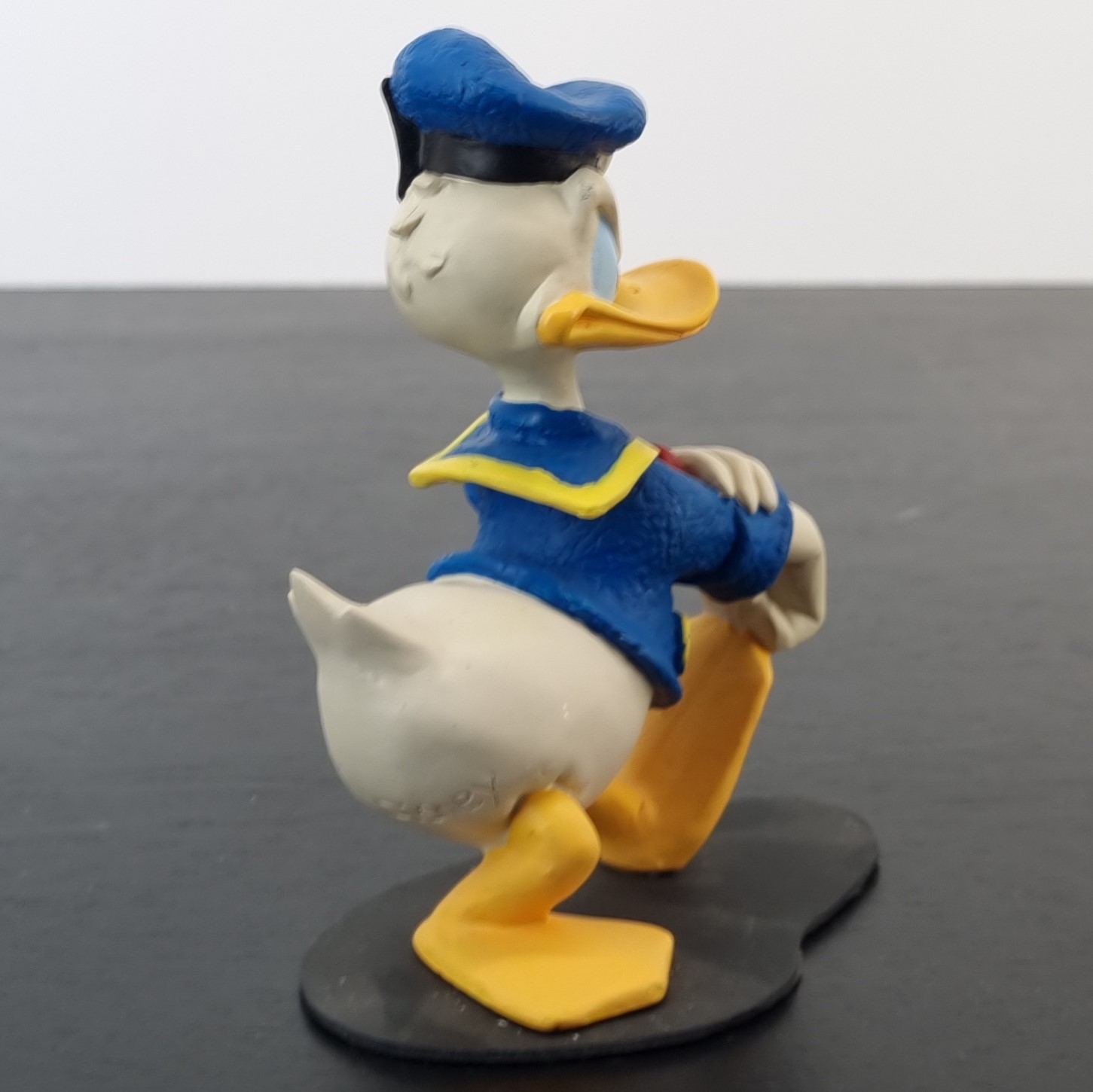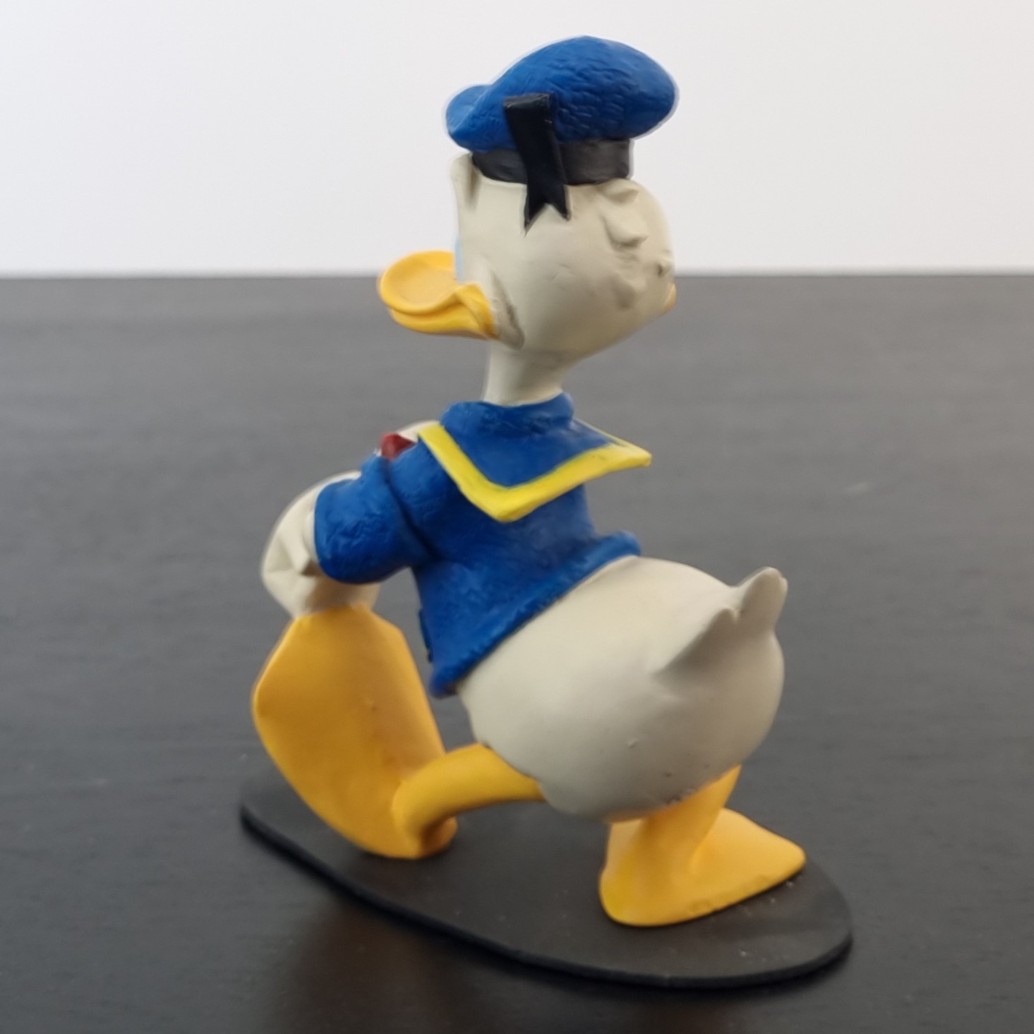 This vintage Donald Duck collectible is approximately 12 cm tall, crafted from durable resin.