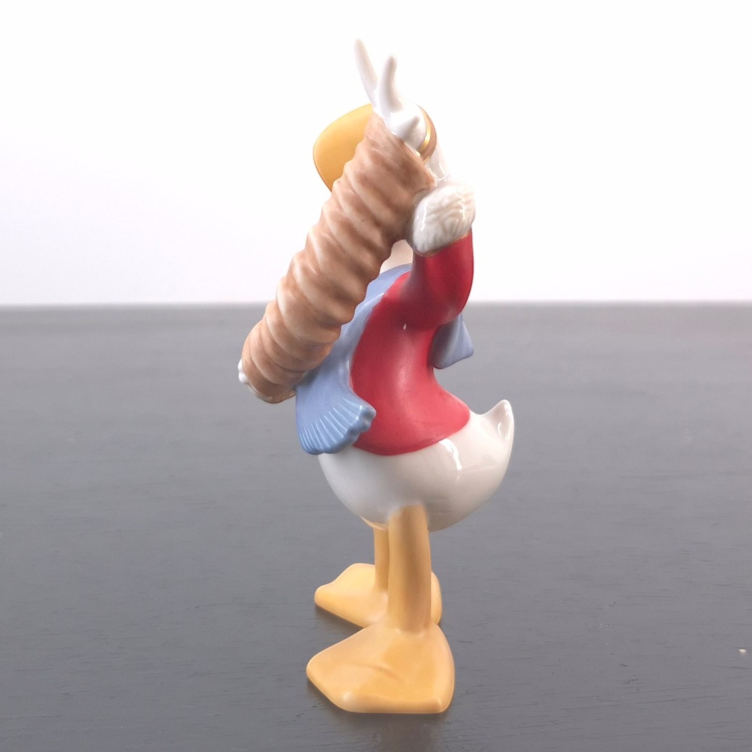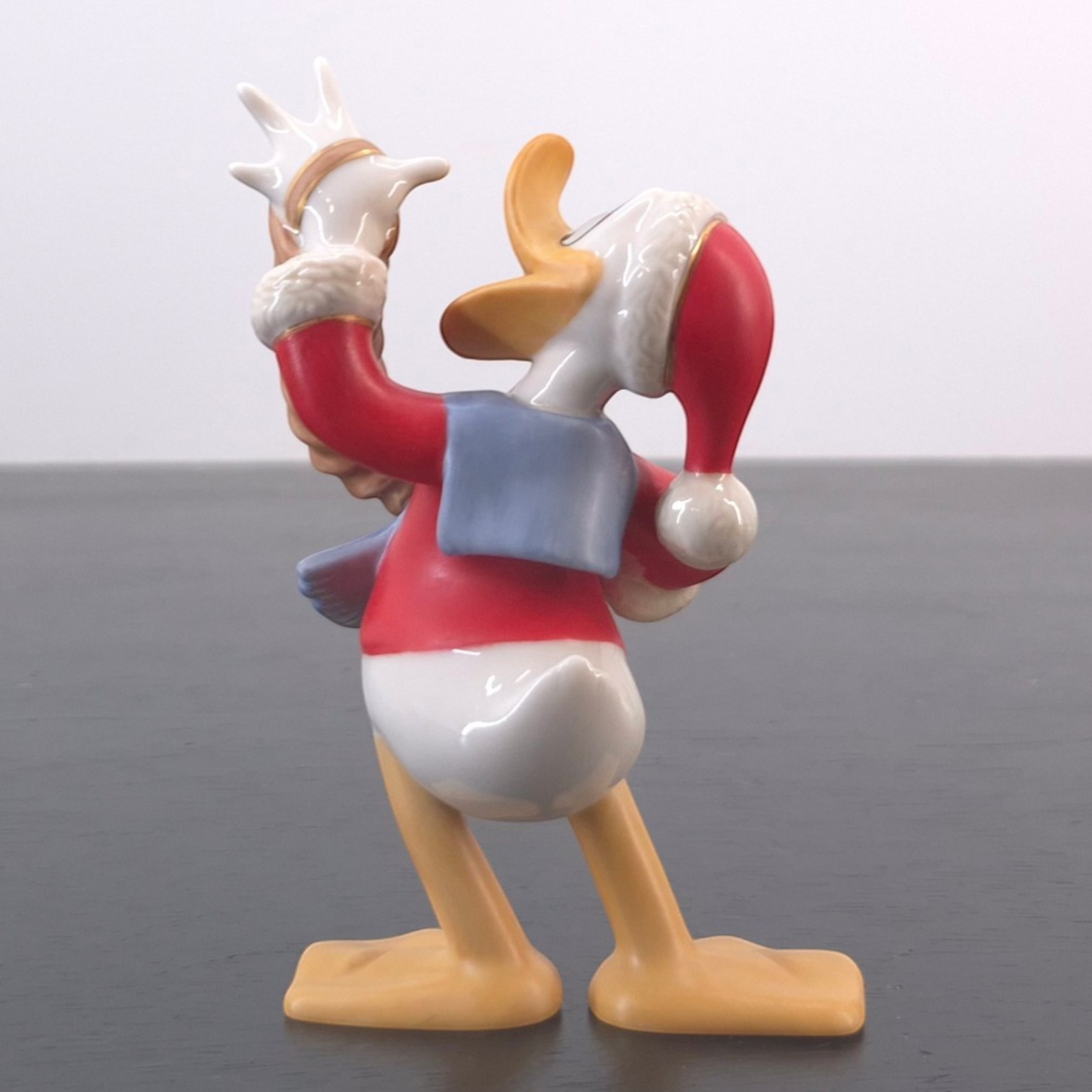 This vintage Donald Duck sculpture is part of Mickey’s Christmas Eve (Musses Julafton), a festive display set from Stefan Lindahl’s Disney Collection created under Disney’s license and issued by Fyrklövern. Dates back to the 2000s. Crafted from durable porcelain, it remains in excellent condition. As an individual piece, this figure already stands well on its own thanks to its strong silhouette and classic Donald Duck presence. Within the full display, however, it plays an important visual role by helping bring movement and humor to the Christmas scene around Mickey and his friends. The porcelain construction, hand-painted finish and warm holiday palette make it especially appealing for collectors of Disney seasonal displays.