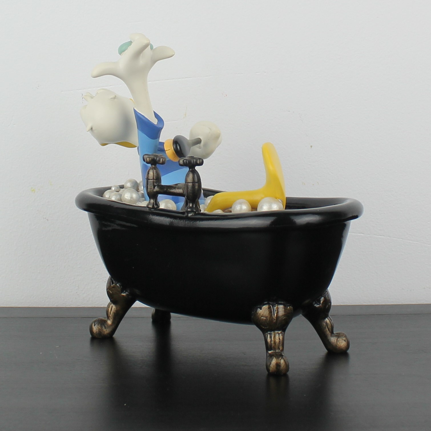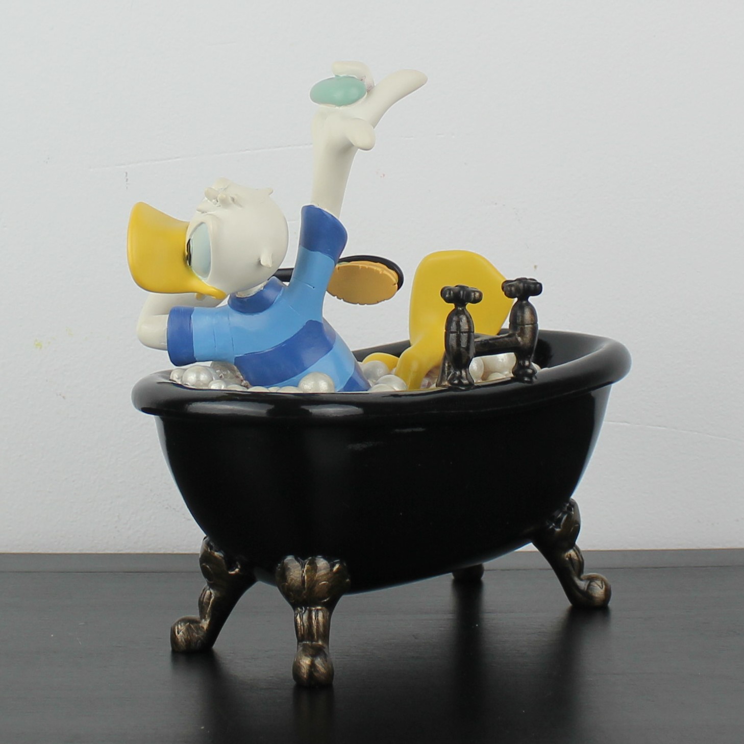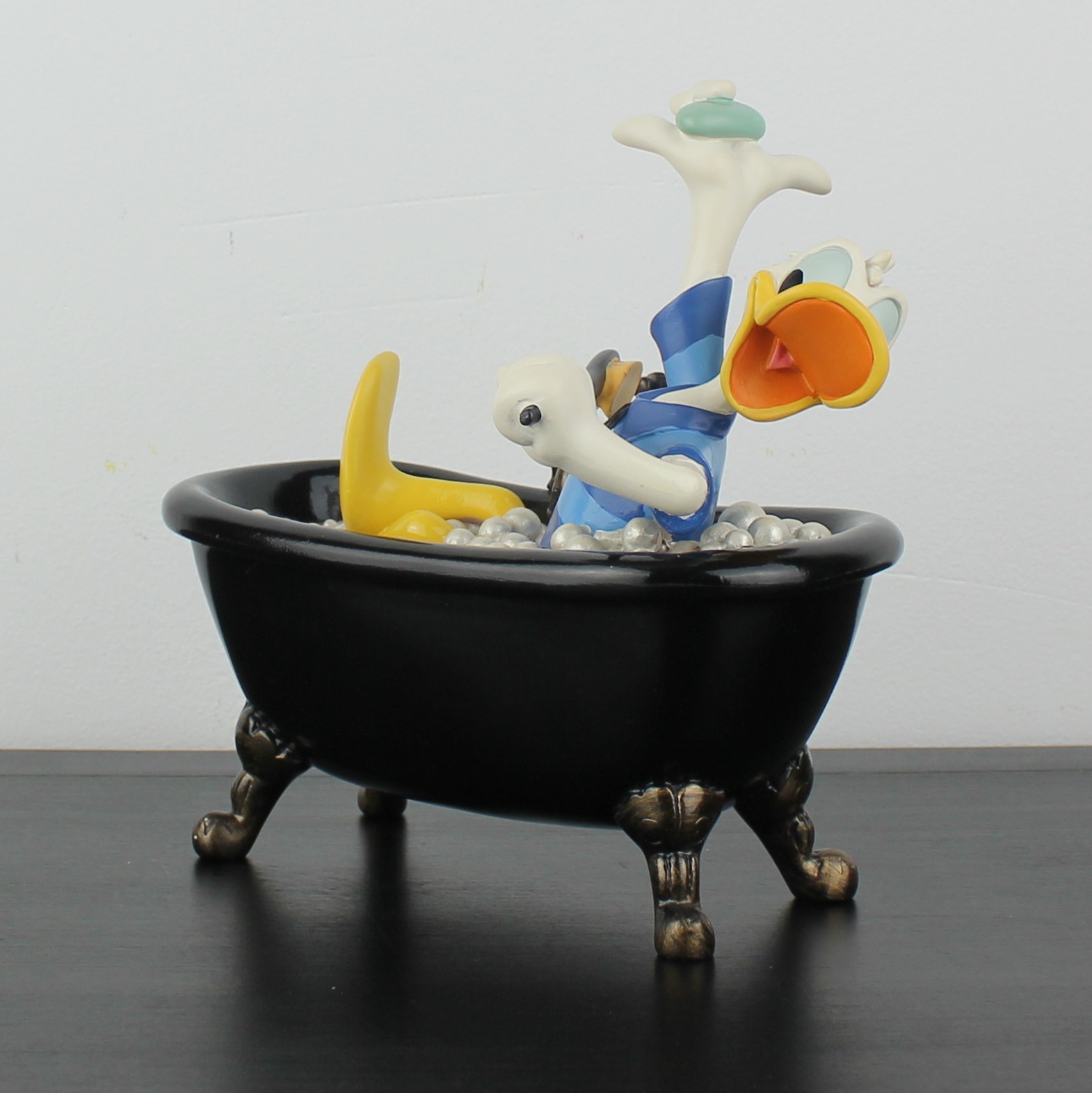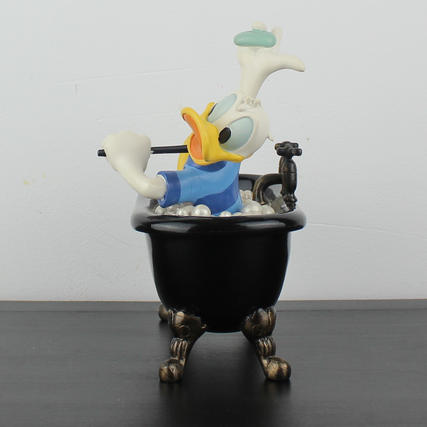 This statue from Donald Duck taking a bath was sculpted by Peter Mook under Walt Disney’s license. It was taken in production by Rutten. Dates back to the 1990s. Crafted from durable resin, it remains in excellent condition. Dive into fun with this adorable statue of Donald Duck taking a bath! Perfect for any Disney fan, this piece captures Donald’s playful and relaxed side as he enjoys a bubbly soak. Add a touch of whimsy and classic Disney charm to your collection with this delightful statue!