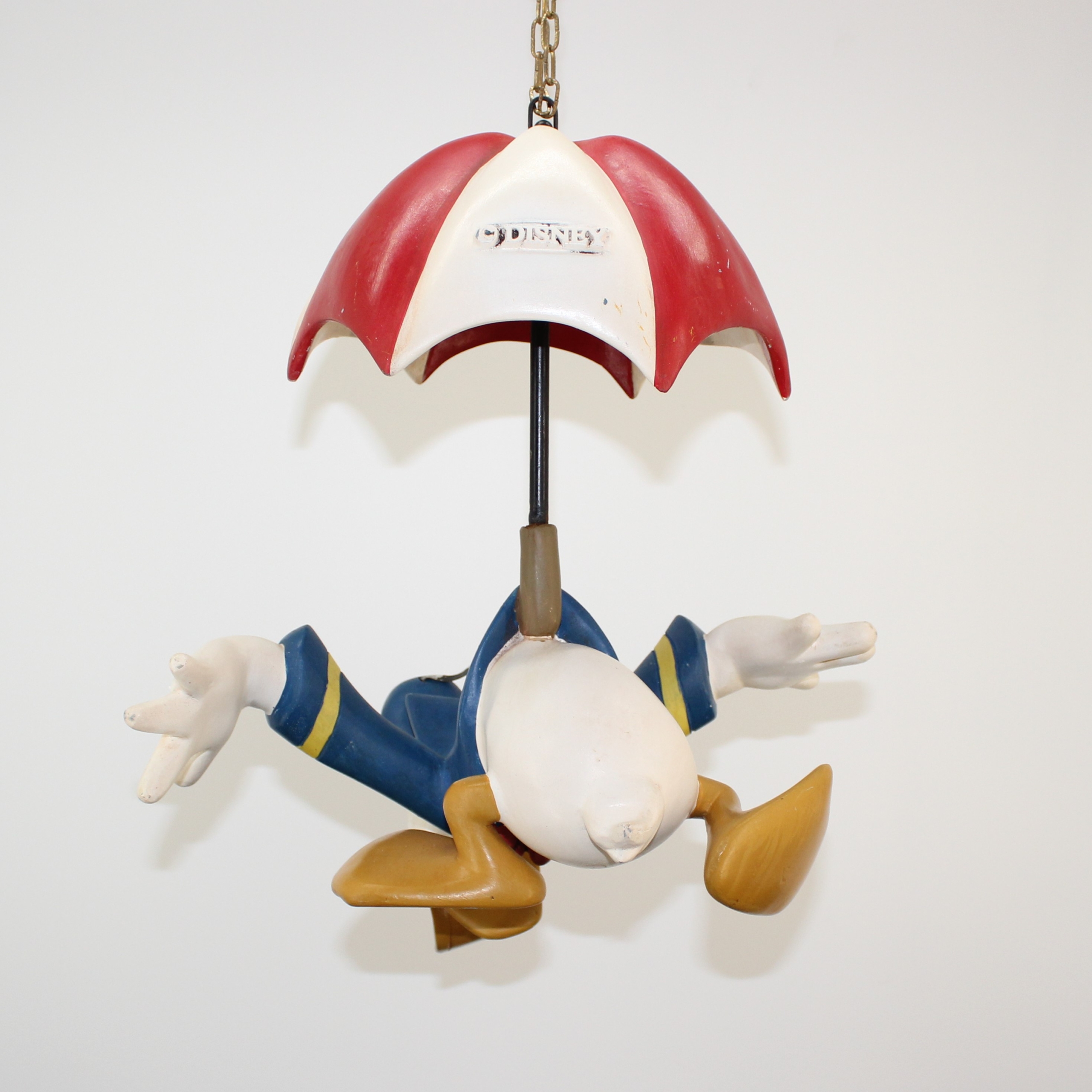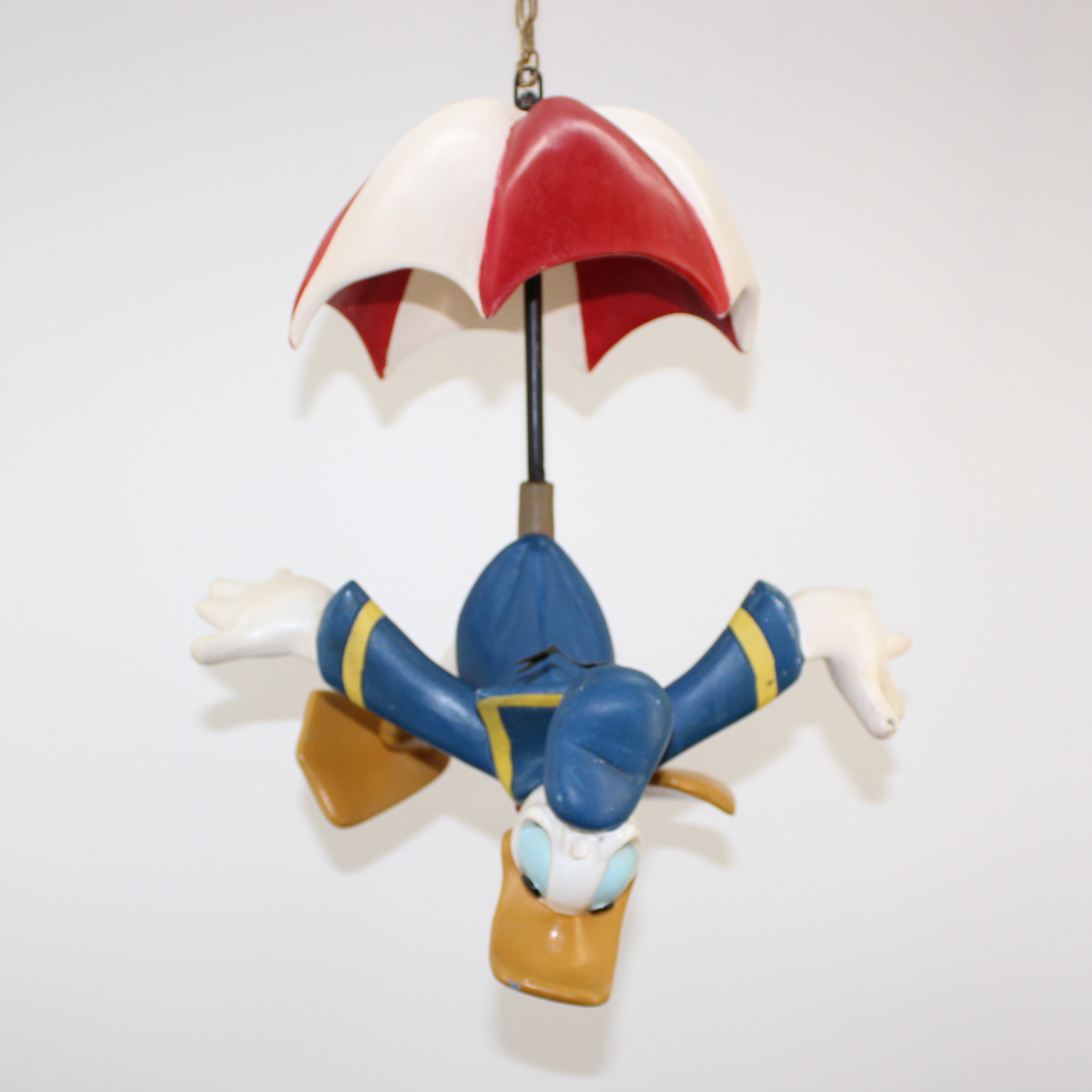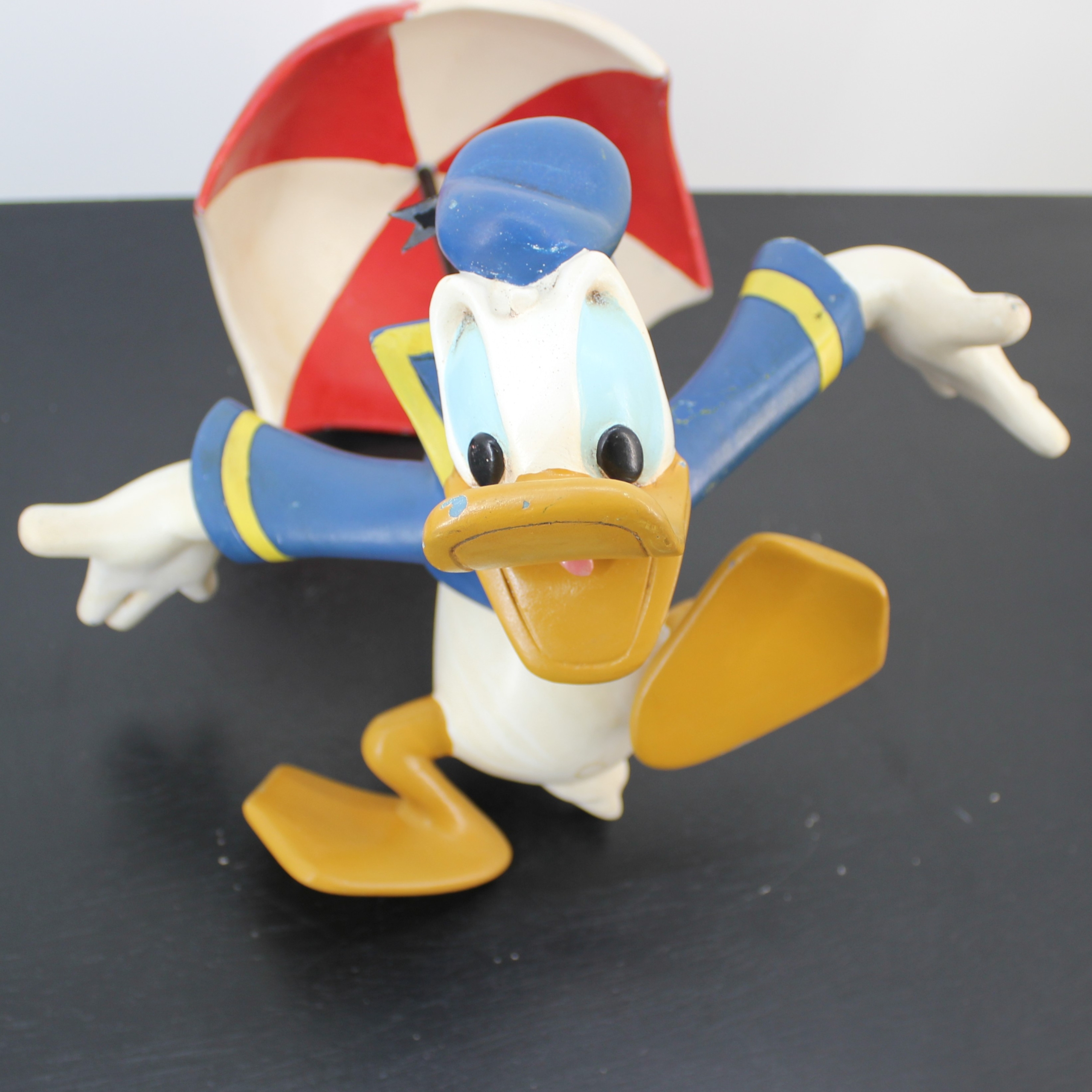 Vintage statue featuring Donald Duck as skydiver, produced by Walt Disney.