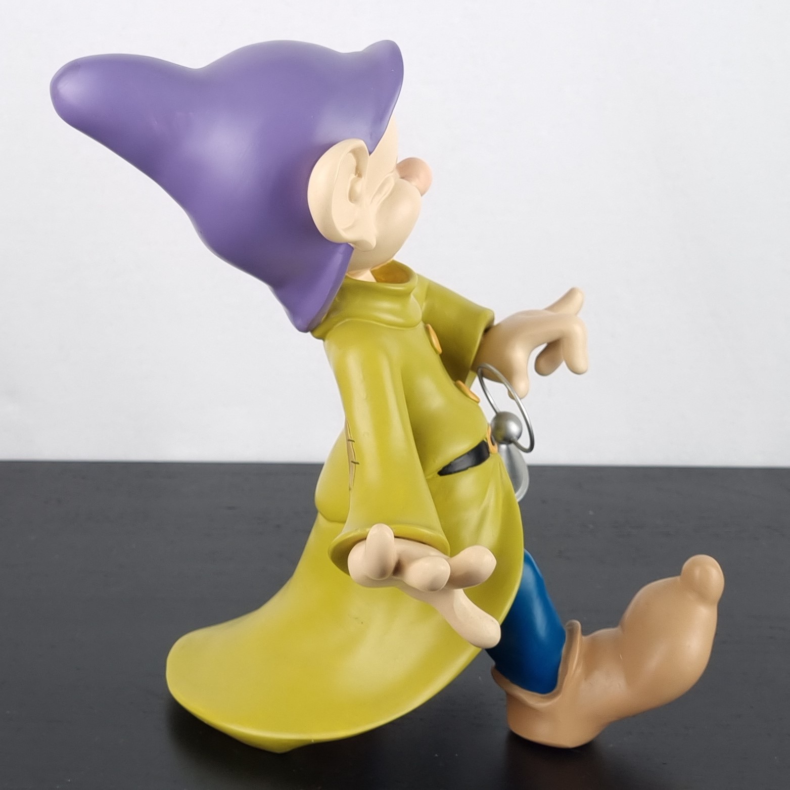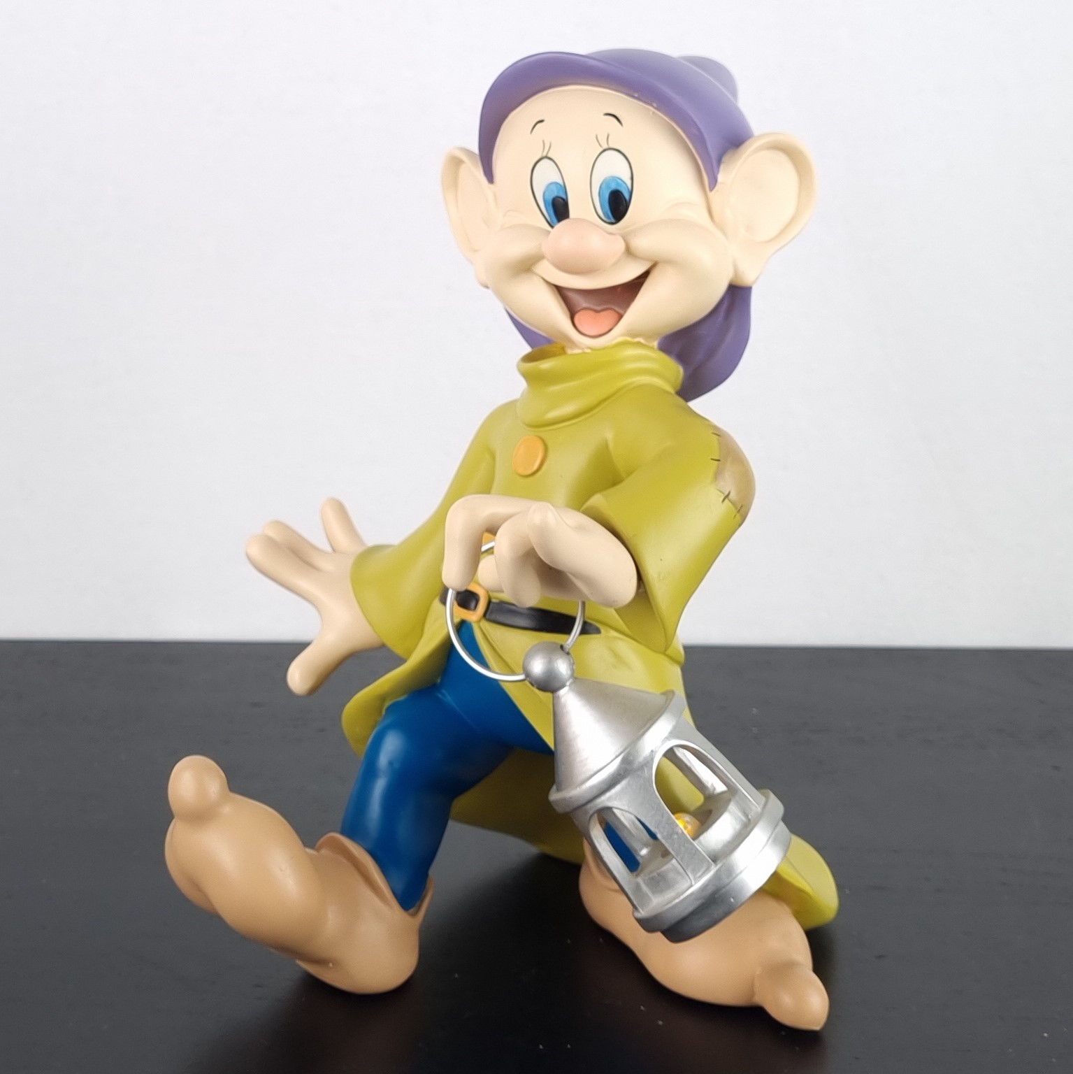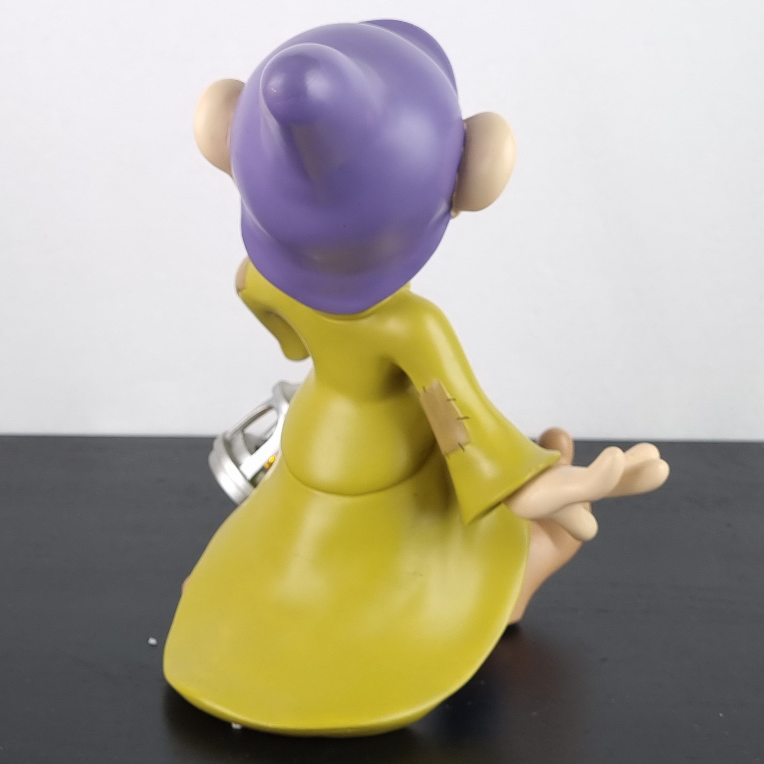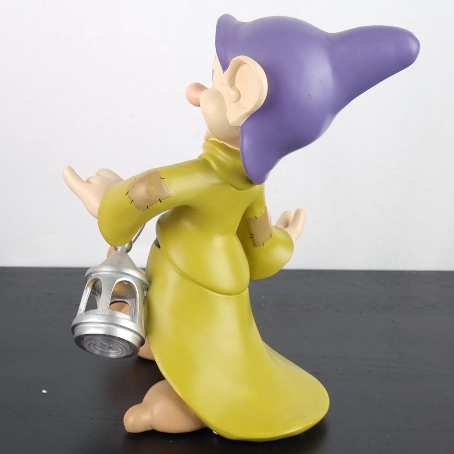 Big Dopey figurine, crafted by Enesco under Walt Disney’s license. Part of the Walt Disney Enchanting Collection. Crafted from durable resin, it remains in excellent condition. Dates back to 2015. Light up your collection with the playful Dopey figurine from Snow White! This delightful piece captures Dopey in motion, walking with a working lantern in his hand. With exquisite details and vibrant colors, this figurine perfectly embodies Dopey’s whimsical charm. A must-have for Disney fans, it’s sure to bring a touch of magic and light to any display.