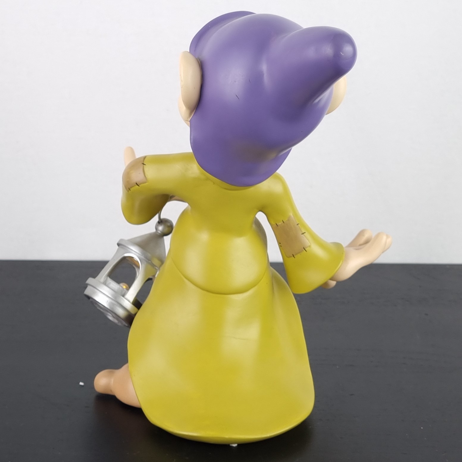 Vintage figurine featuring Dopey holding a working lantern, produced by Enesco.
