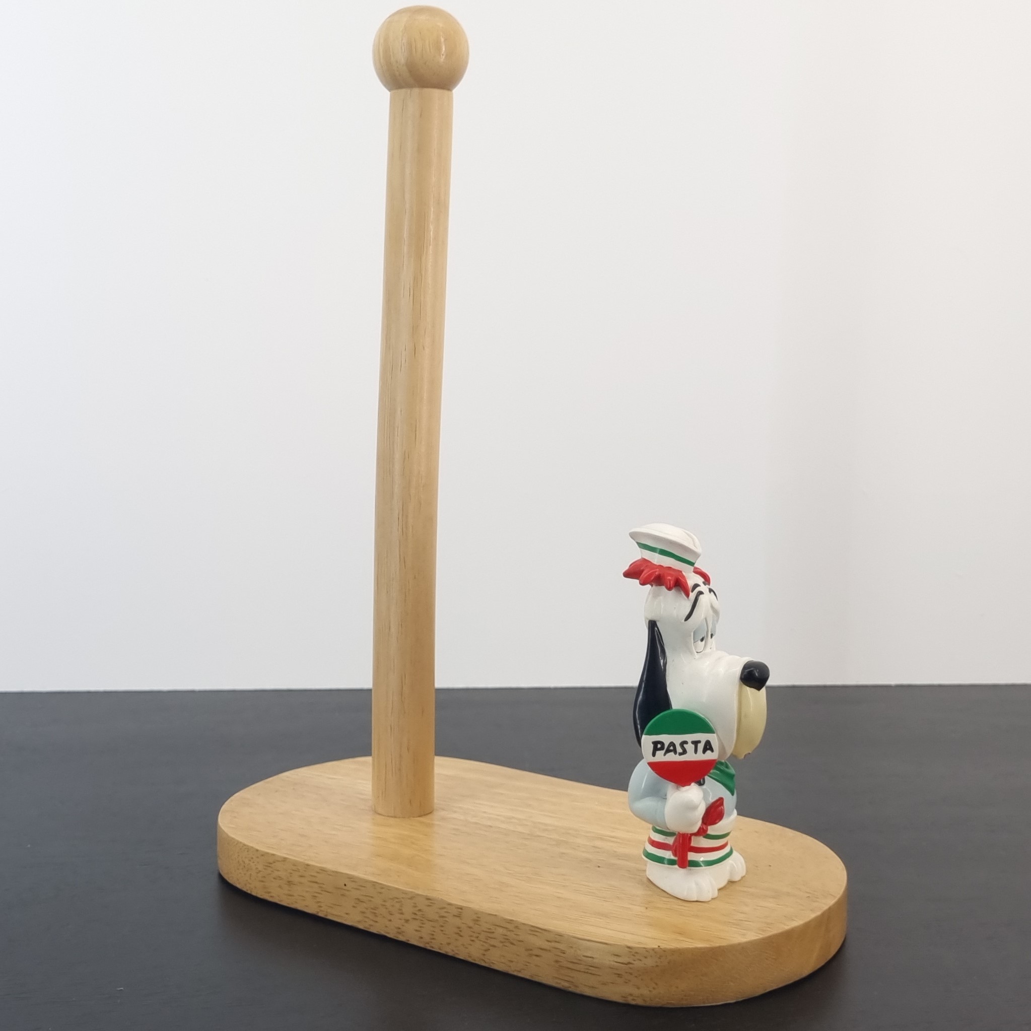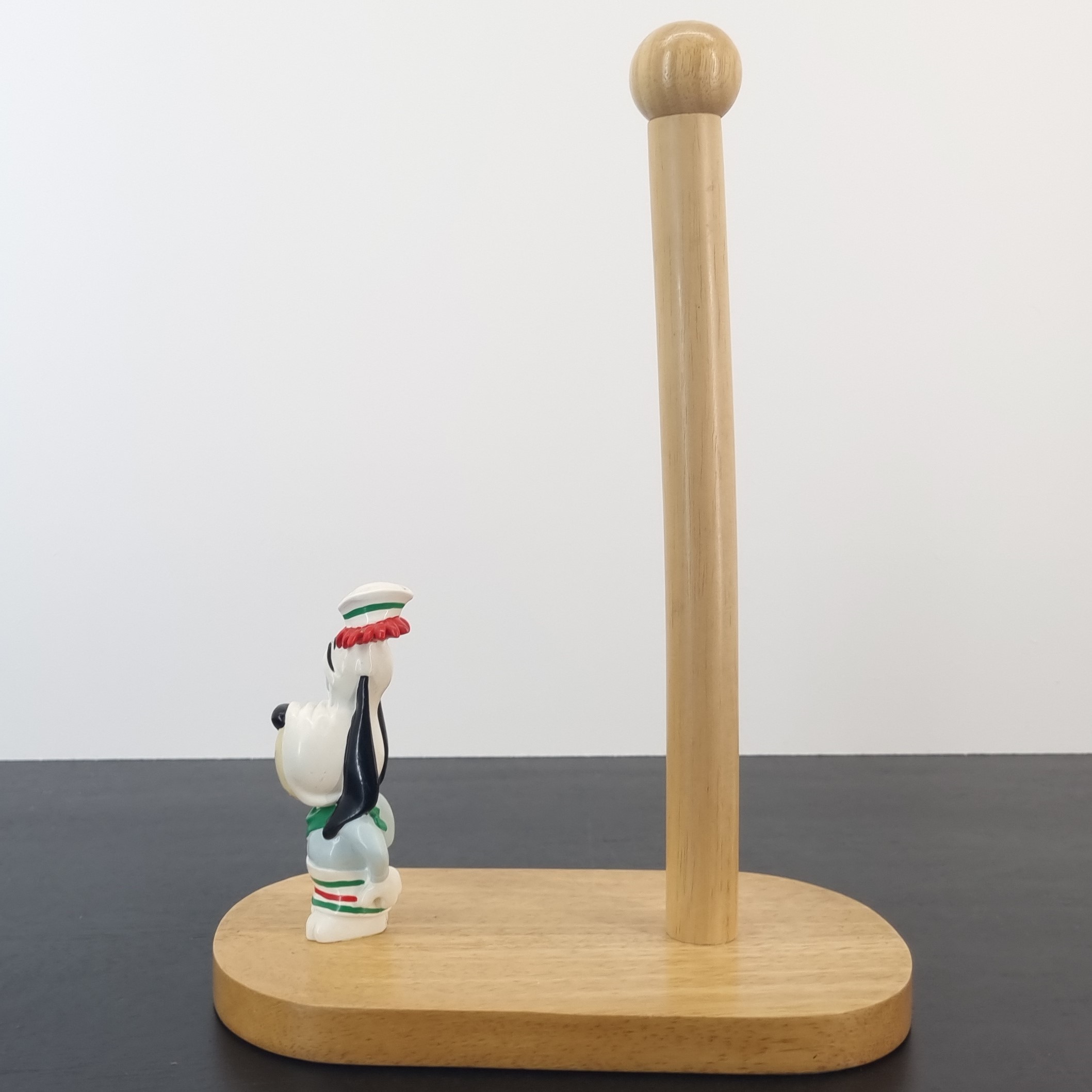Magnificent, wooden kitchen roll holder with Droopy.