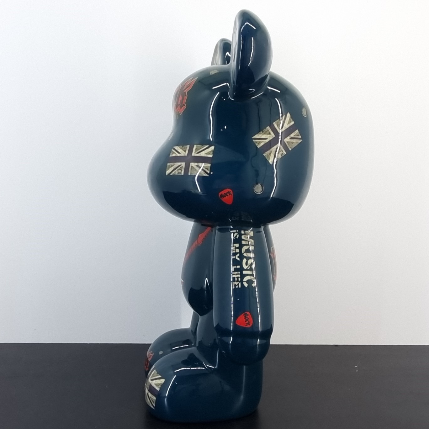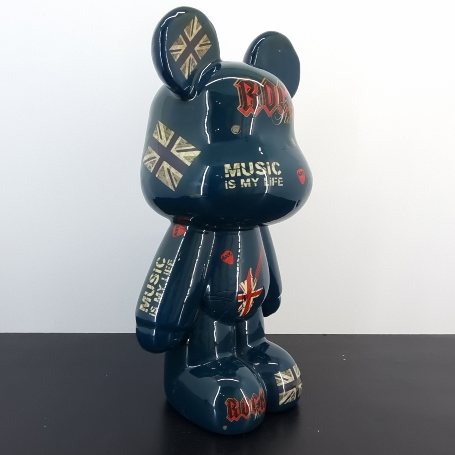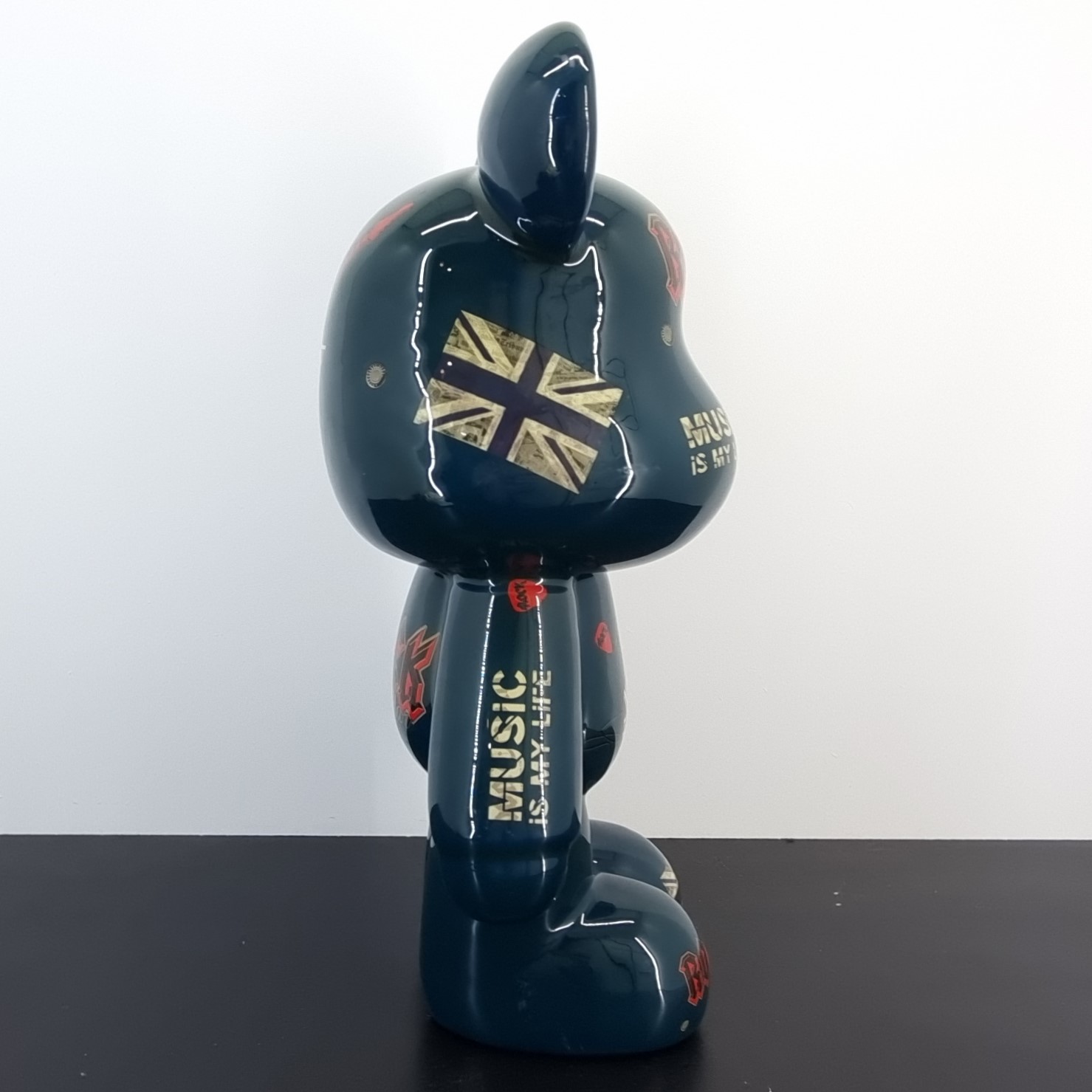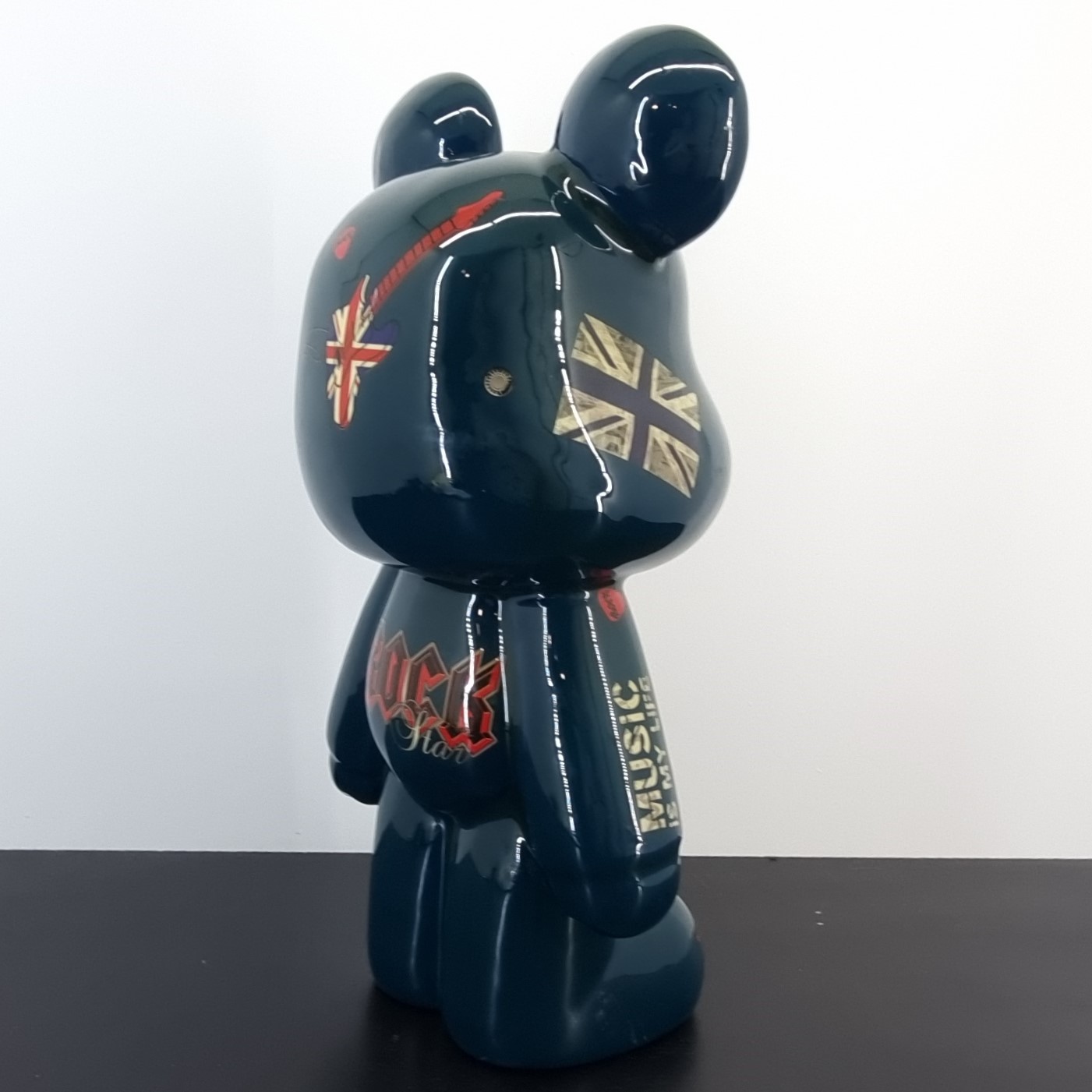 This unique statue from the Funky Bears® collection was crafted by Tropico Diffusion and is part of their Avenue of the Stars product line. Produced between 2014 and 2016. Crafted from durable polyfoam, this vintage art toy remains in good condition. Shows signs of wear. This is a limited edition statue. This vibrant green bear embodies a love for rock and roll, featuring a big guitar prominently displayed on its belly. Perfect for music enthusiasts and those who appreciate bold designs, this Funky Bear adds a dynamic and energetic vibe to any collection. Let the music play and bring a touch of rock ‘n’ roll spirit to your space with this lively piece!