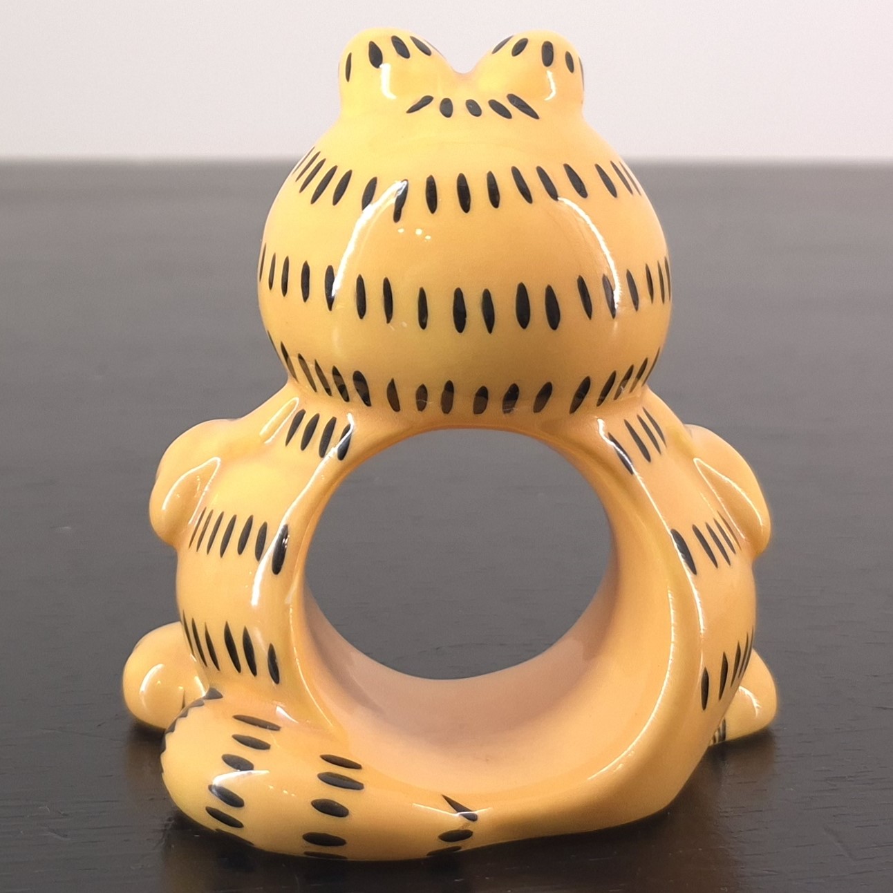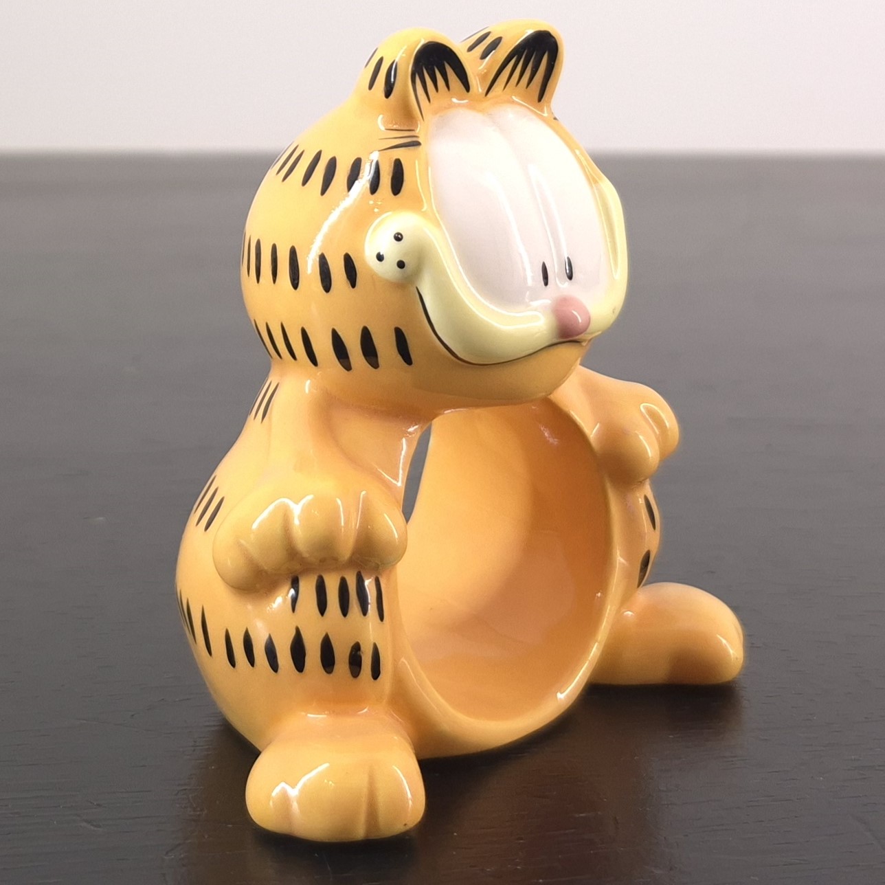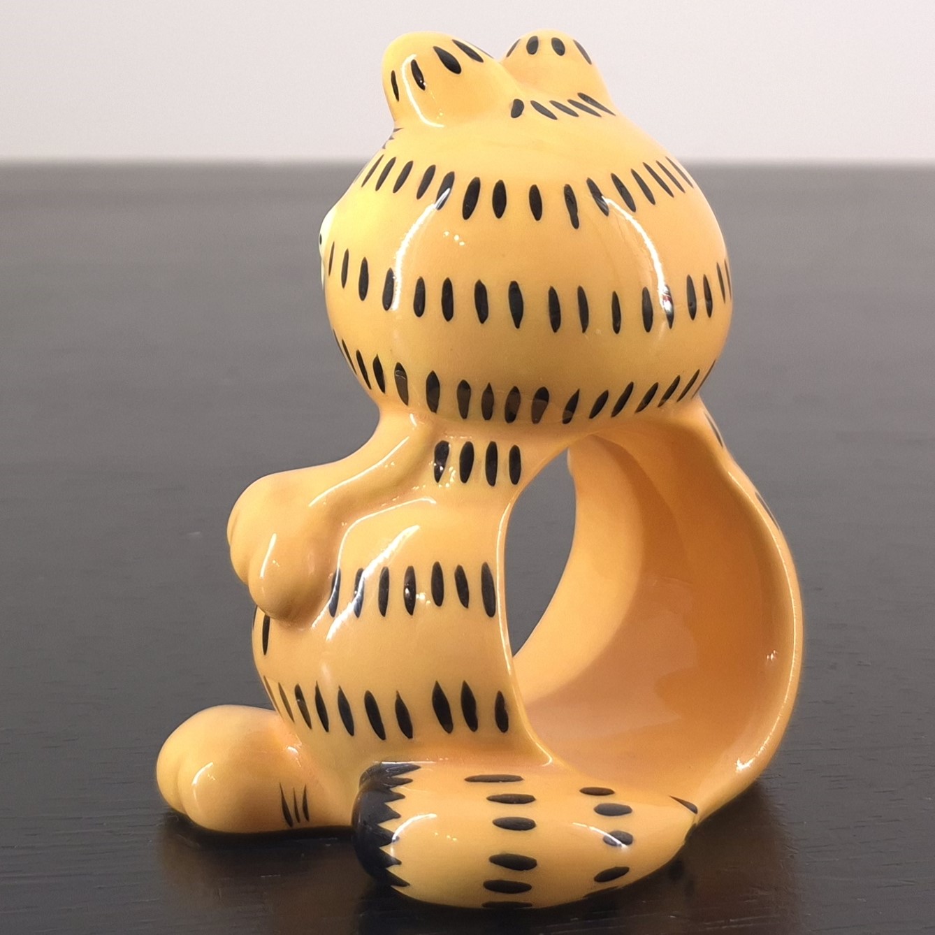 Vintage napkin holder of Garfield, crafted by Tropico Diffusion under Walt Disney’s license. Part of Tropico Diffusion’s Avenue of the Stars collection. Dates back to the 1990s. Crafted from durable ceramic, it remains in excellent condition. Add some classic attitude to your table with this vintage Garfield napkin holder! Featuring the lazy orange cat in a seated pose, his belly cleverly holds your napkins with a smirk. It’s the perfect mix of function and fun, bringing a touch of 80s nostalgia to any kitchen or dining area. A must-have for Garfield fans and retro collectors alike. Who knew holding napkins could look this cool?