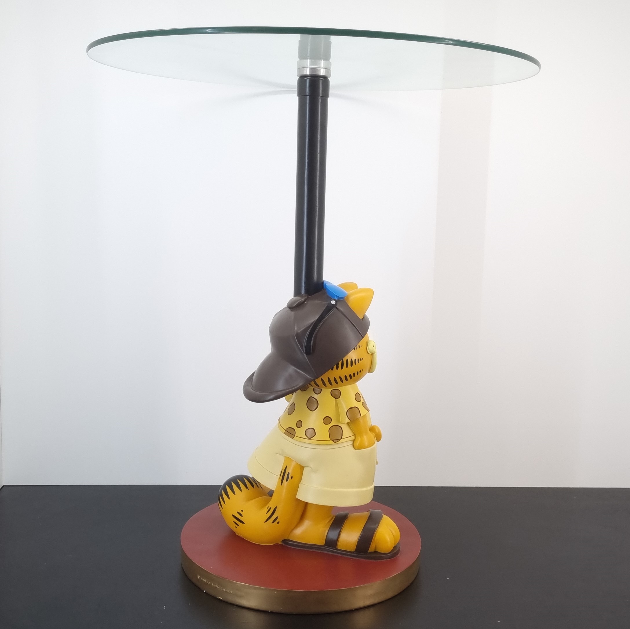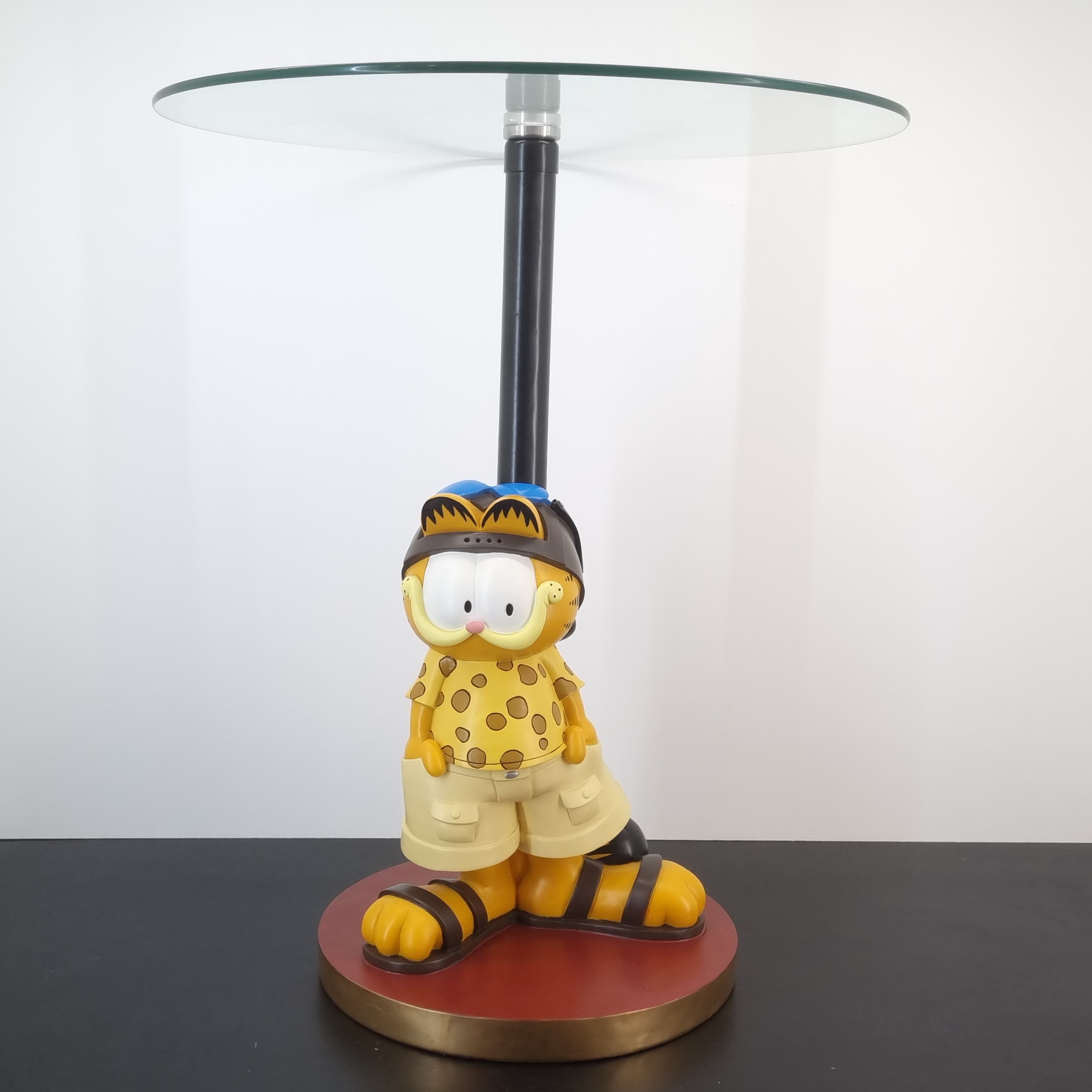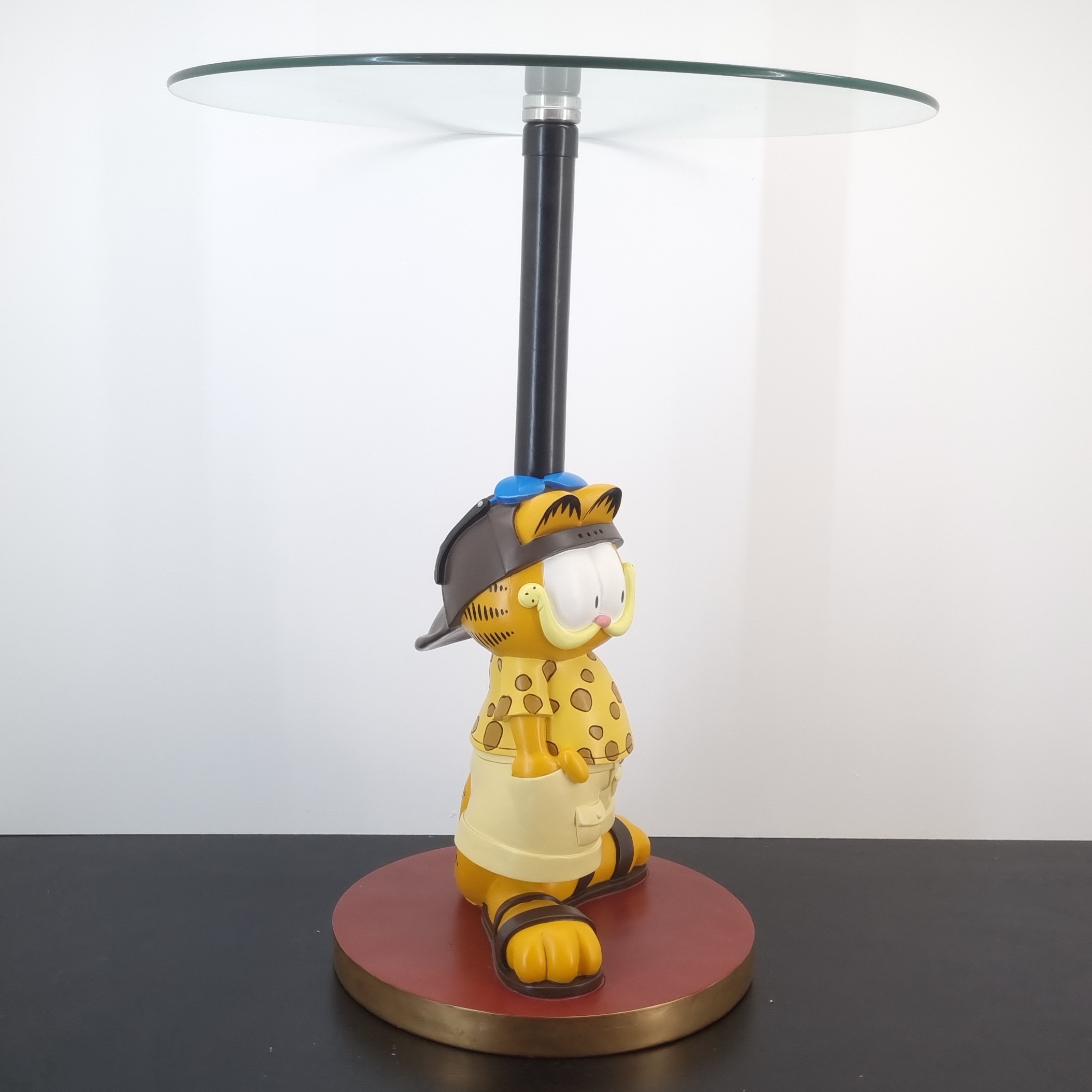 This vintage table from Garfield was sculpted under Paws’ license. Dates back to the 1990s. Crafted from durable resin, it remains in excellent condition. Kick back with the ultimate chill zone centerpiece: the Relaxed Garfield table. Garfield’s rocking cargo shorts, panther-print tee, and a backwards cap like he’s mastered the art of doing absolutely nothing—with style. Slippers on, hands in pockets, he’s the embodiment of laid-back luxury. This table doesn’t just hold your stuff—it holds the vibe. Perfect for anyone who believes comfort is a lifestyle, not a compromise.
