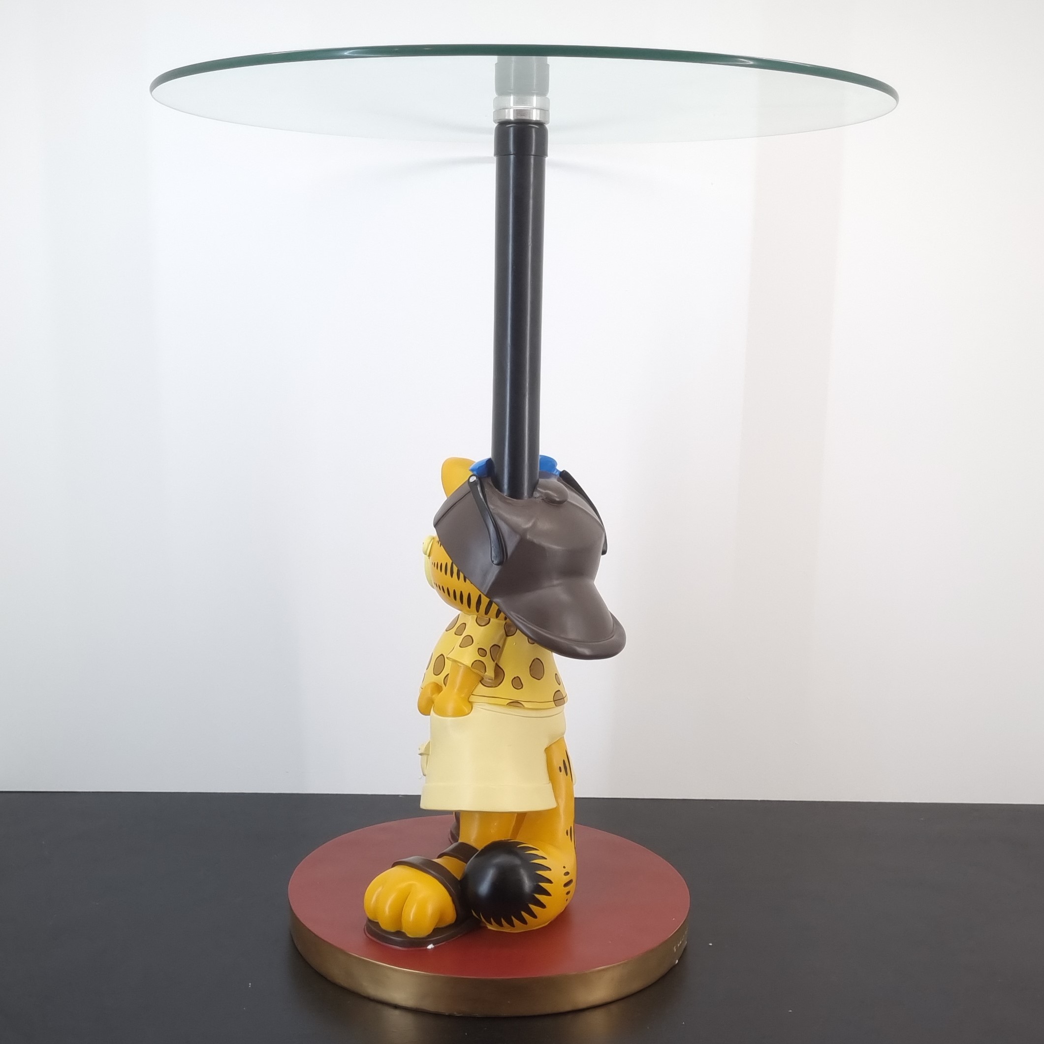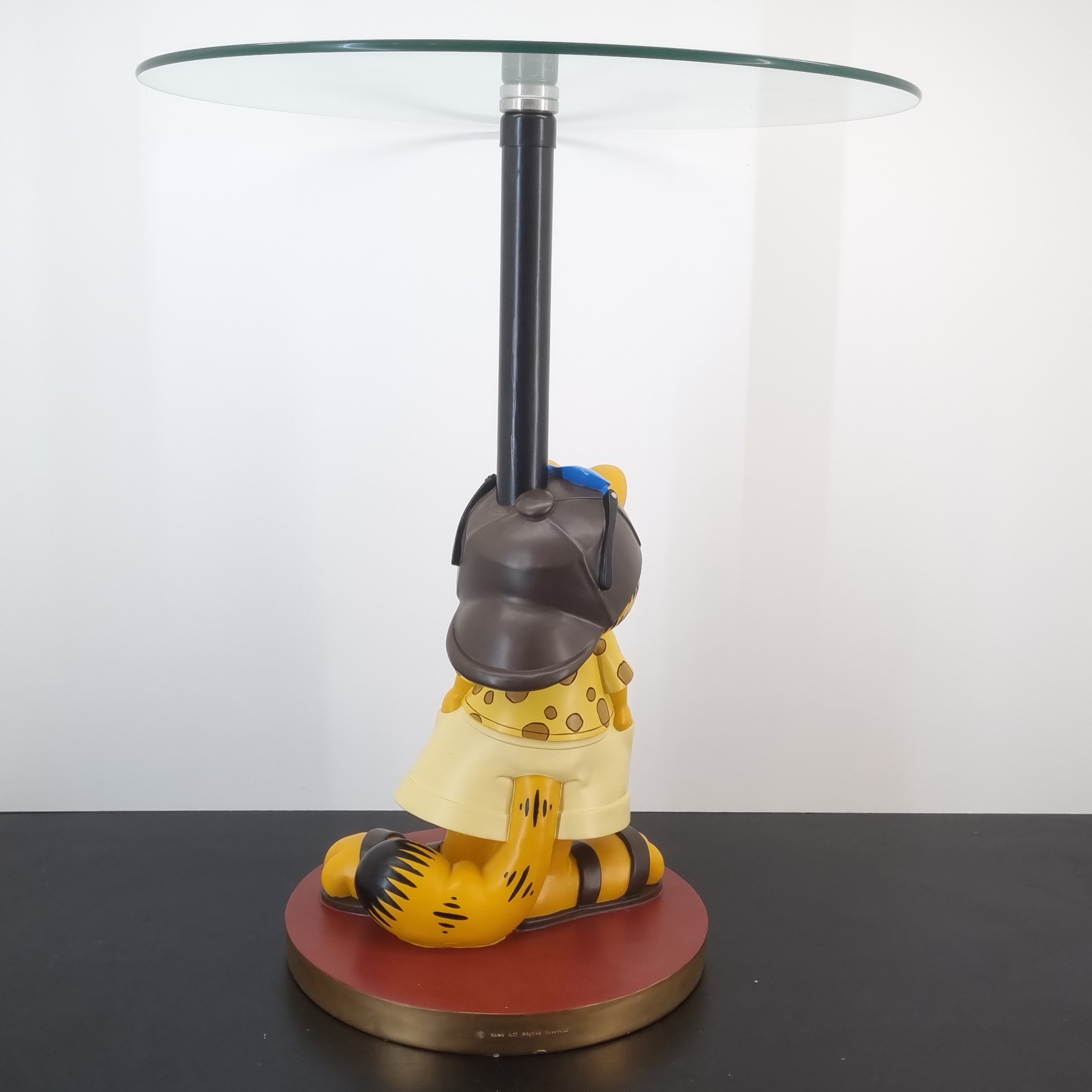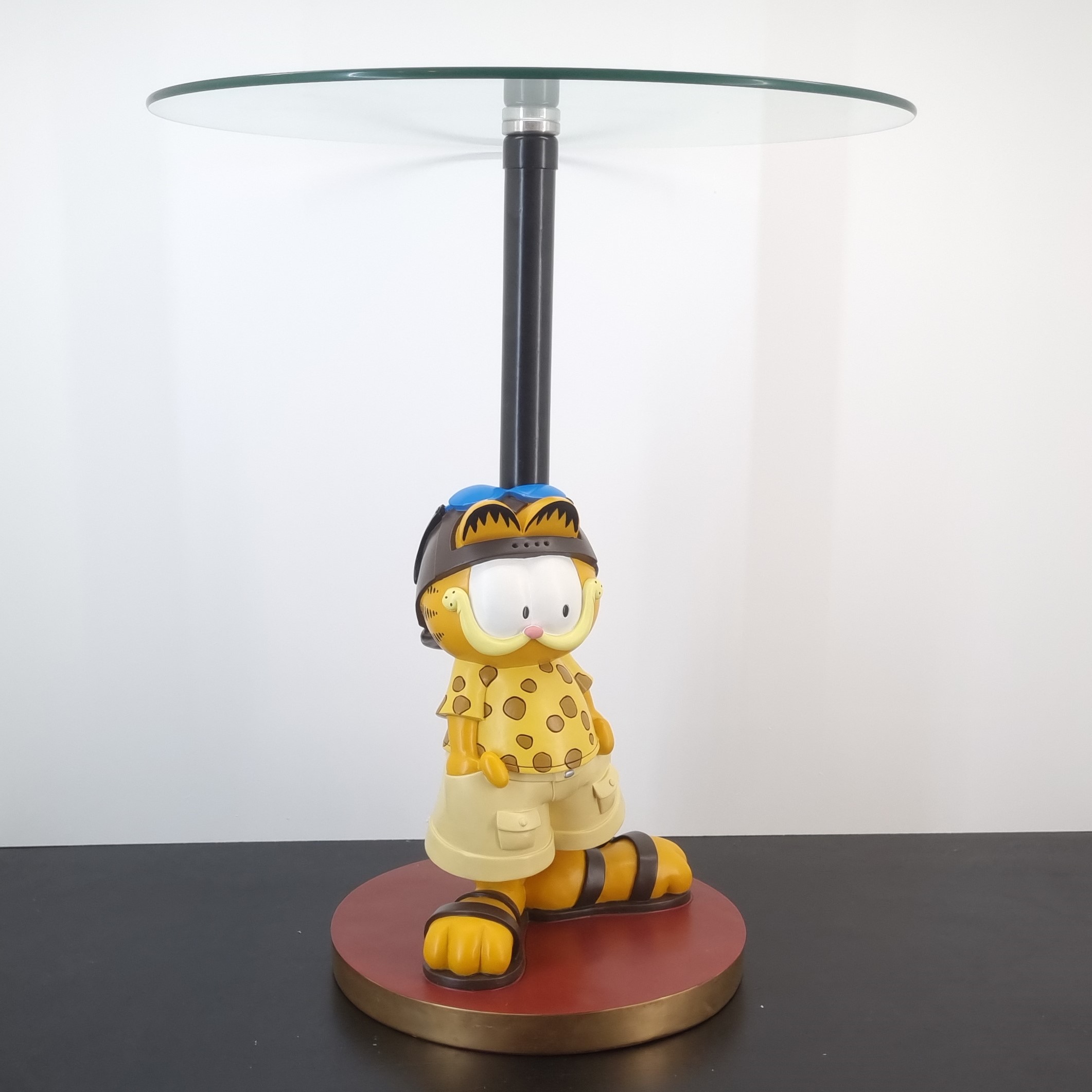 This vintage table from Garfield was sculpted under Paws’ license. Dates back to the 1990s. Crafted from durable resin, it remains in excellent condition. Kick back with the ultimate chill zone centerpiece: the Relaxed Garfield table. Garfield’s rocking cargo shorts, panther-print tee, and a backwards cap like he’s mastered the art of doing absolutely nothing—with style. Slippers on, hands in pockets, he’s the embodiment of laid-back luxury. This table doesn’t just hold your stuff—it holds the vibe. Perfect for anyone who believes comfort is a lifestyle, not a compromise.