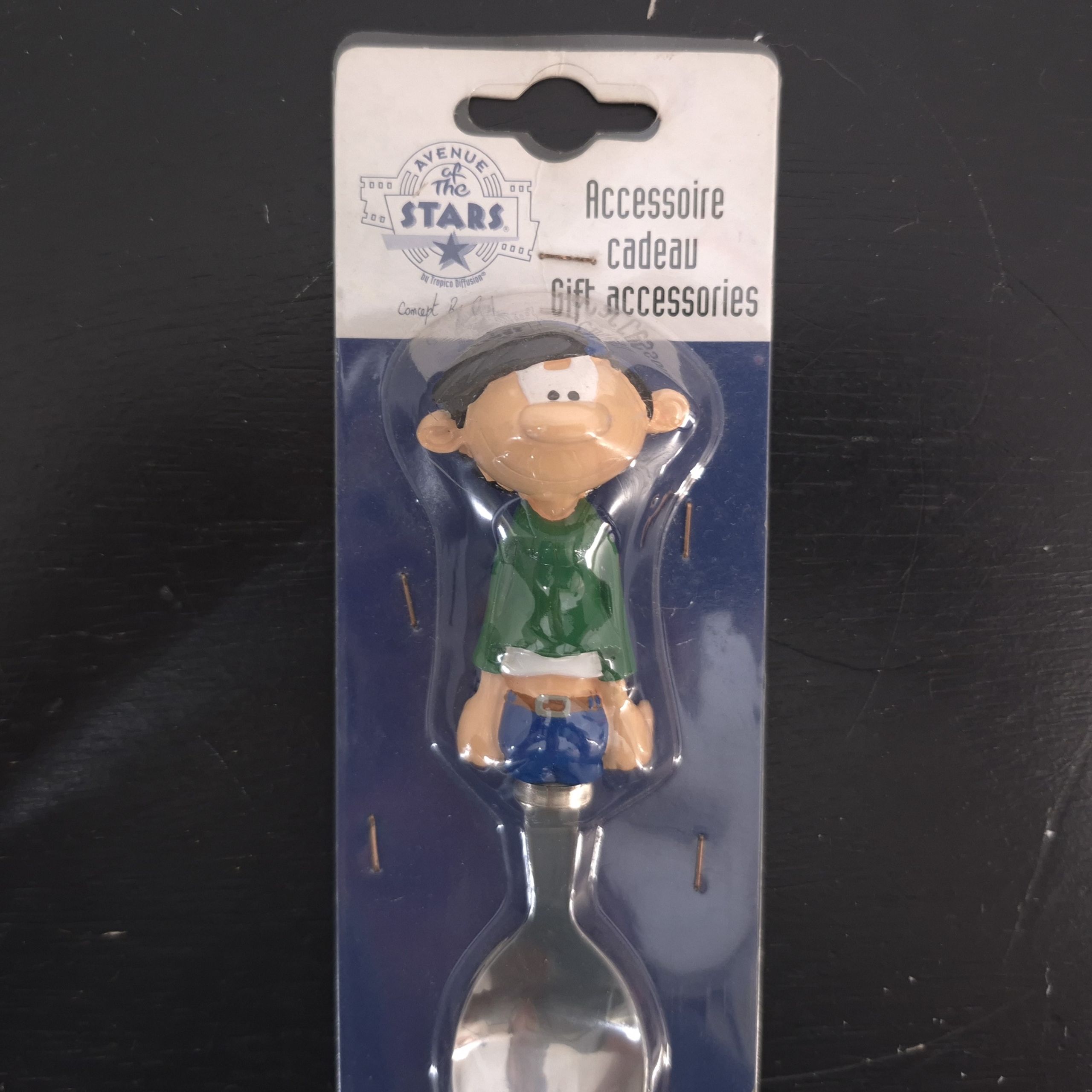 Vintage spoon of Gaston, crafted by Tropico Diffusion under Mediatoon Licensing’s license. Part of Tropico Diffusion’s Avenue of the Stars collection. Dates back to the 1990s. Crafted from durable metal and resin, it remains in excellent condition. Add a dash of comic genius to your kitchen with the Gastoon Lagaffe spoon — where culinary chaos meets cartoon charm! Inspired by the legendary misadventures of Gaston Lagaffe, this spoon turns every meal into a playful moment. Crafted with durable materials and a whimsical design, it’s perfect for fans who love a side of humor with their soup. Whether you’re stirring, serving, or simply showing off, it’s guaranteed to spark conversation. Make your cutlery drawer a little less ordinary — and a lot more Gastoon!