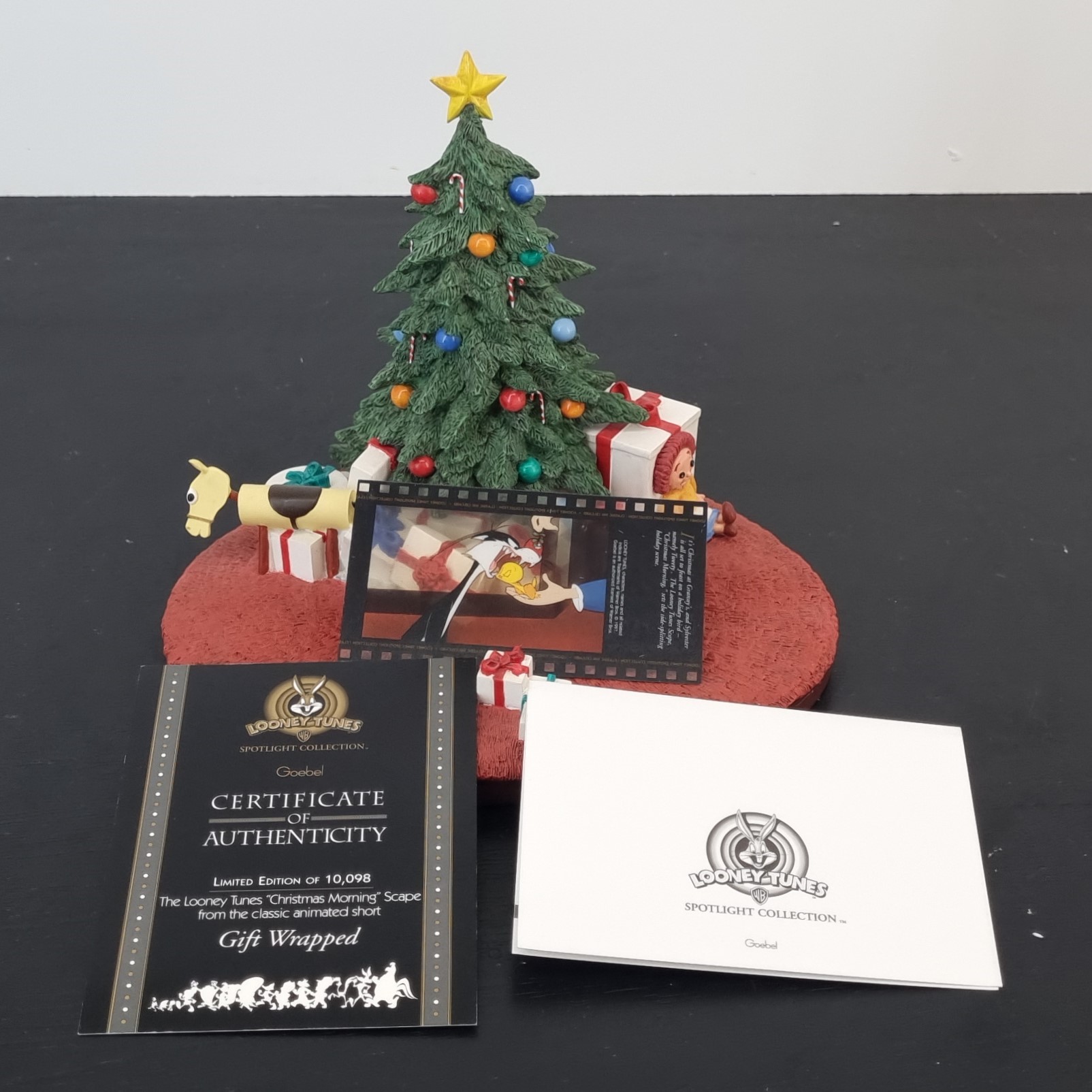 Scape of Gift Wrapped ”Christmas Morning” set of Tweety Bird, Sylvester the Cat and Granny. Make your set complete with;