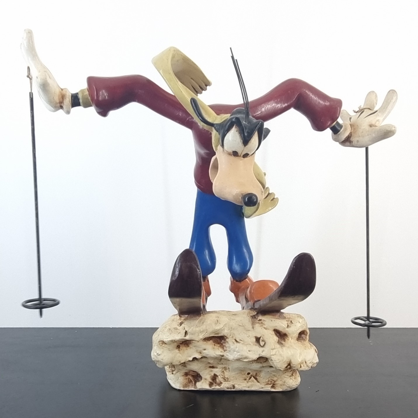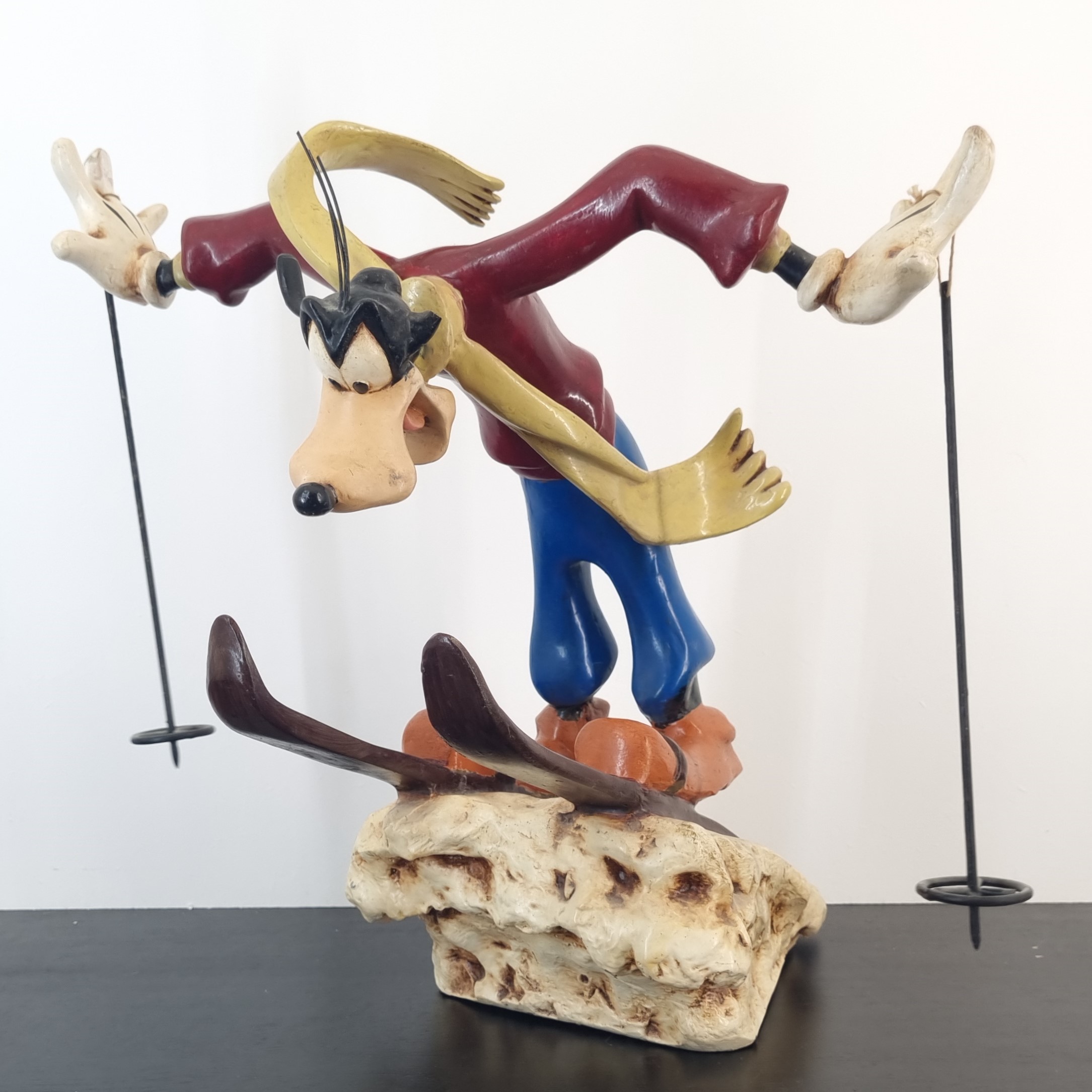 Vintage statue featuring Goofy Ski Jumper statue, produced by Walt Disney.