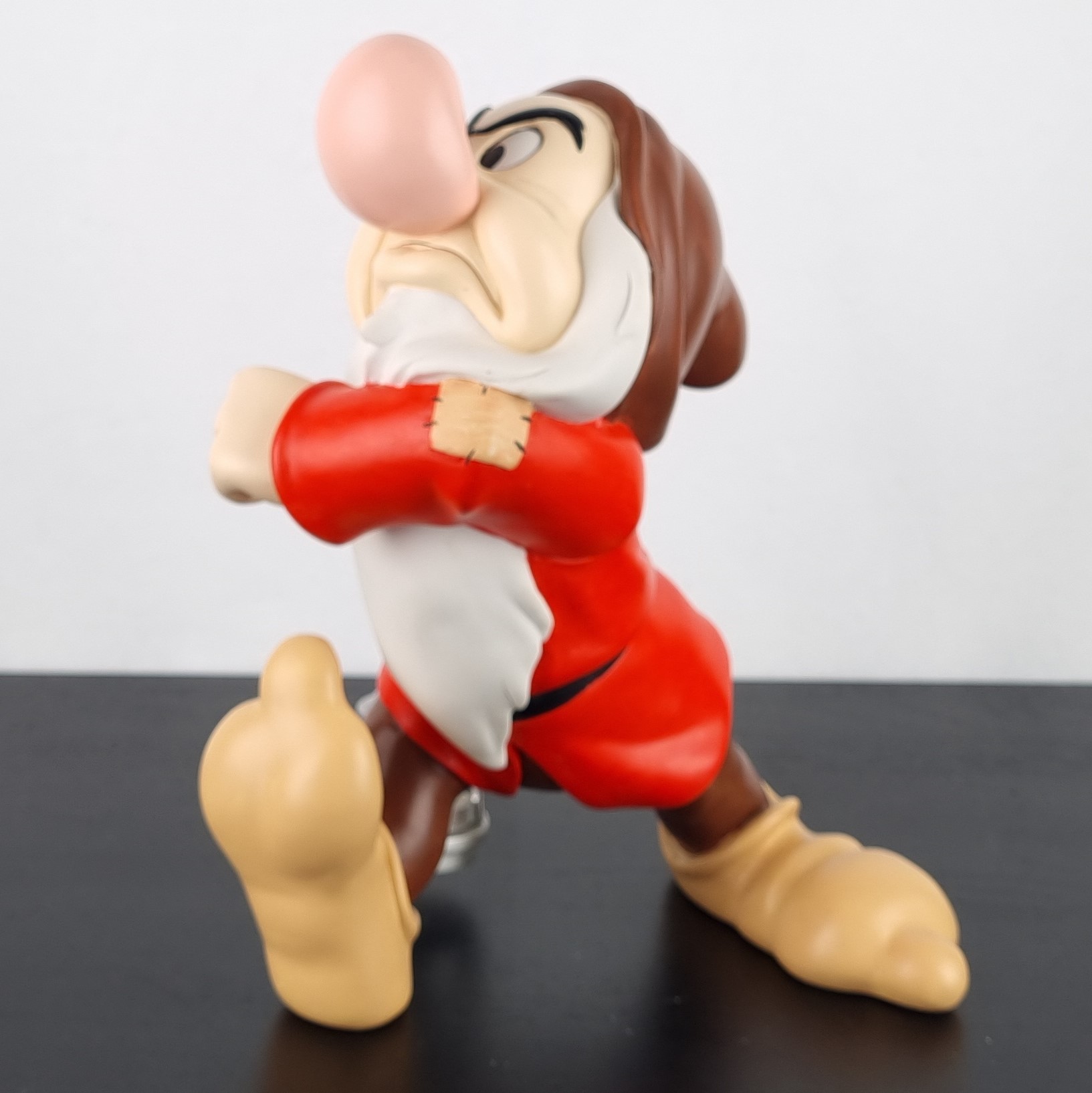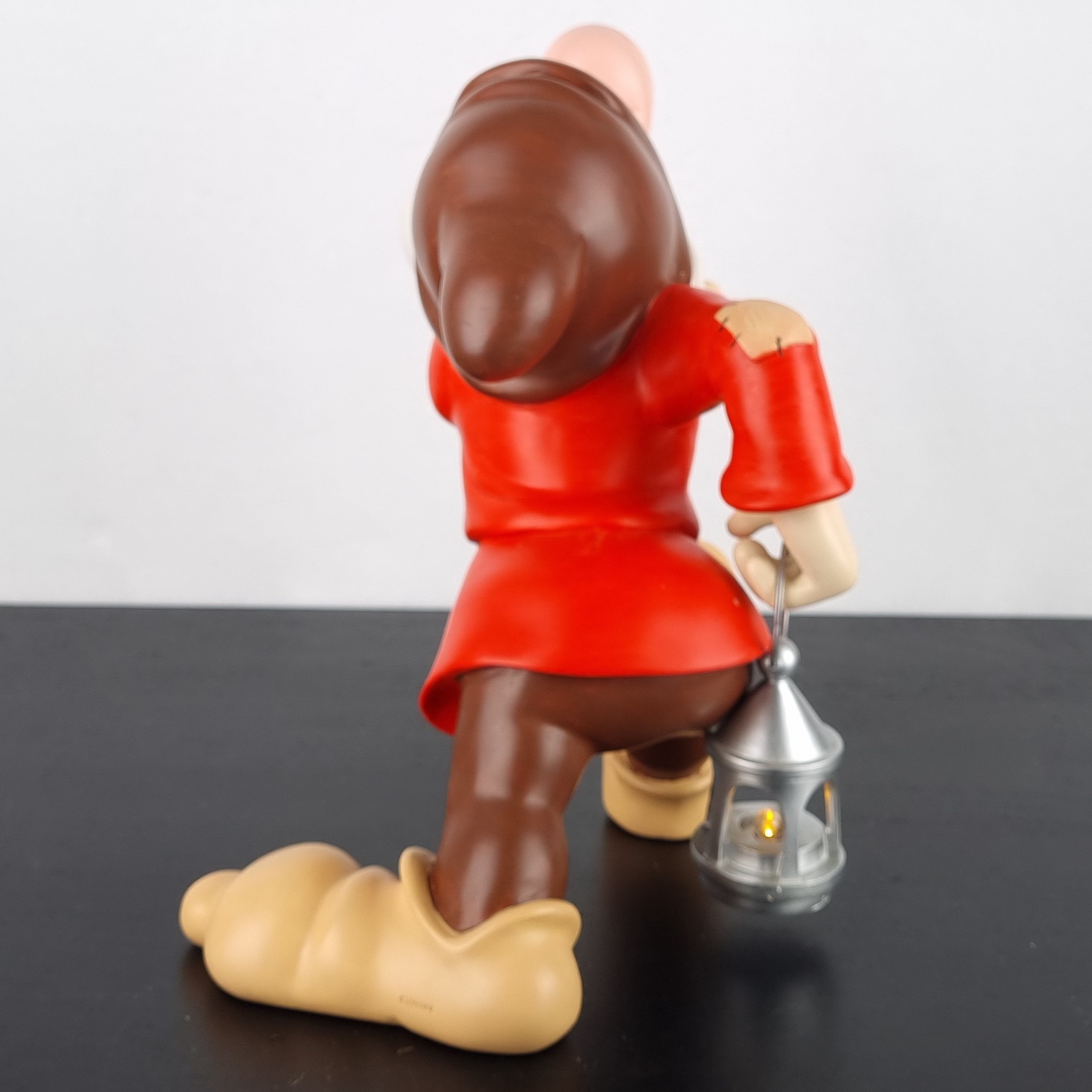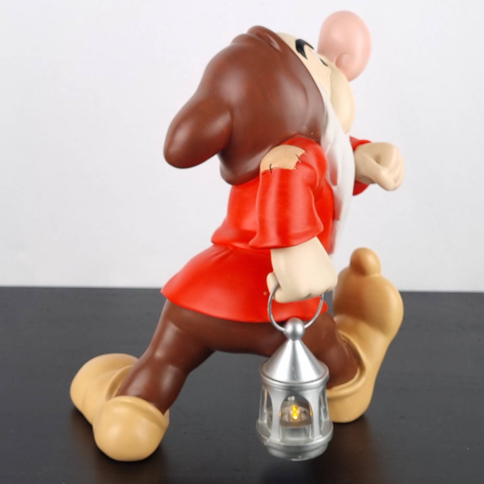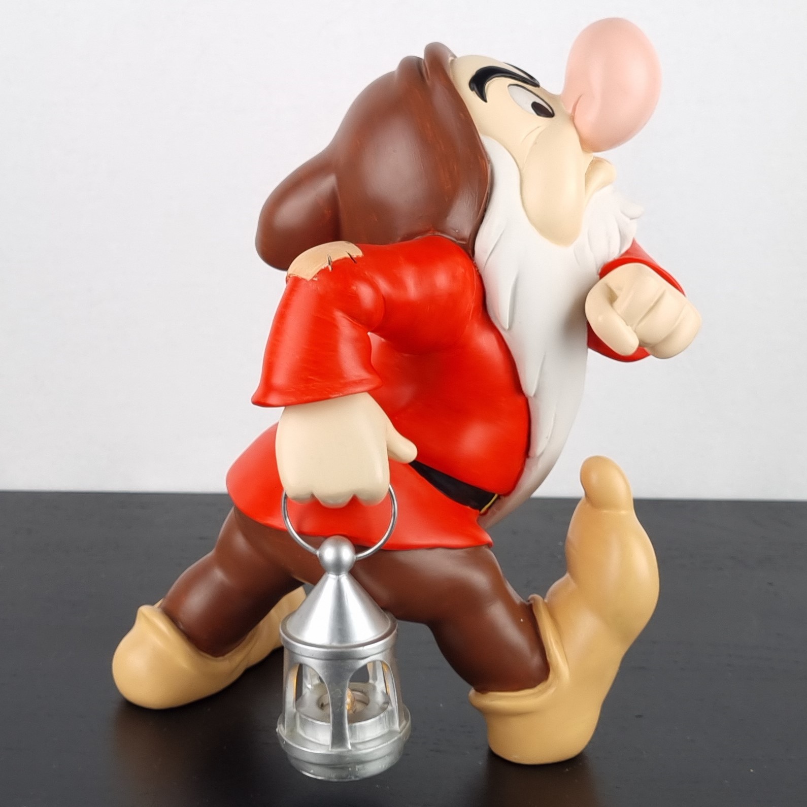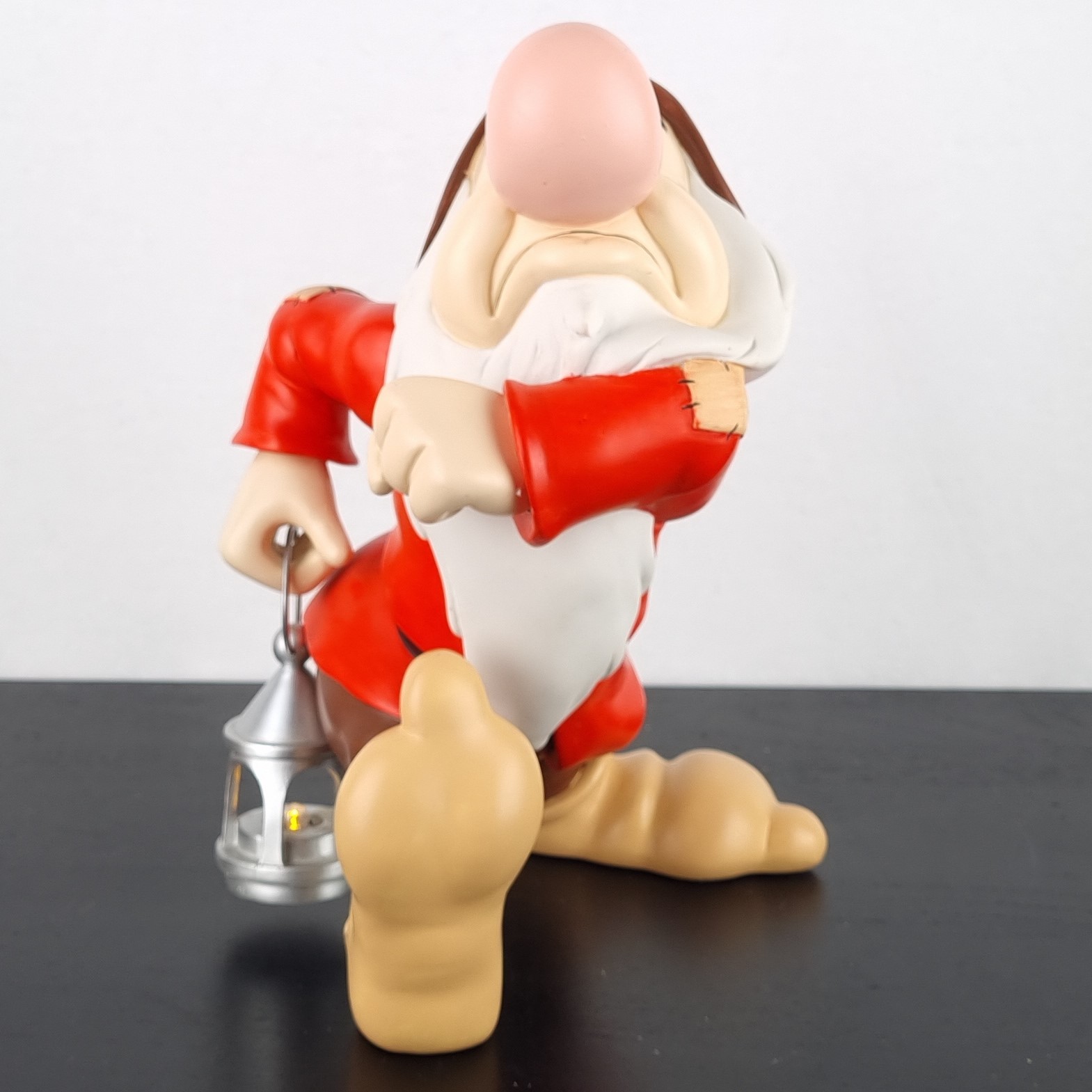 Big Grumpy figurine, crafted by Enesco under Walt Disney’s license. Part of the Walt Disney Enchanting Collection. Crafted from durable resin, it remains in excellent condition. Dates back to 2015. Brighten your collection with the ever-irresistible Grumpy figurine from Snow White! This captivating piece captures Grumpy in his signature mood, walking with a working lantern in his hand. Featuring meticulous details and rich colors, this figurine brings Grumpy’s grumpy charm to life. A perfect addition for Disney fans, it adds both a touch of light and character to any display.