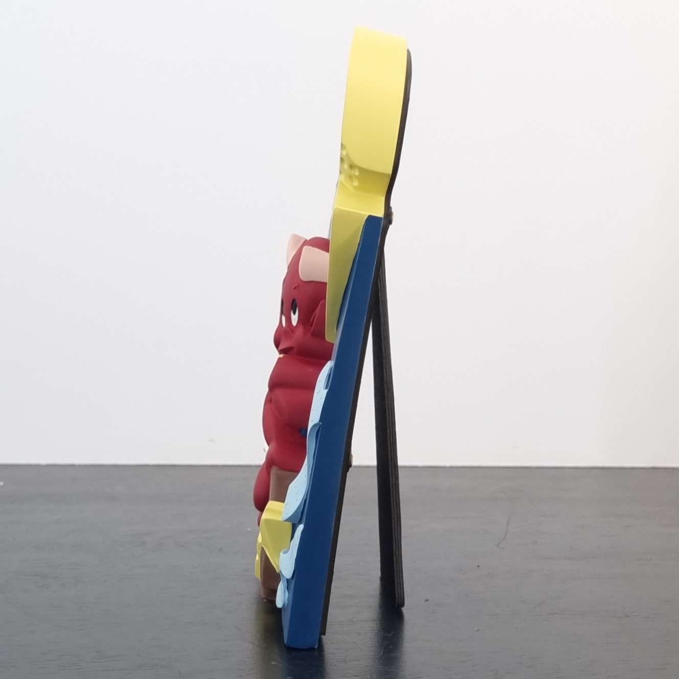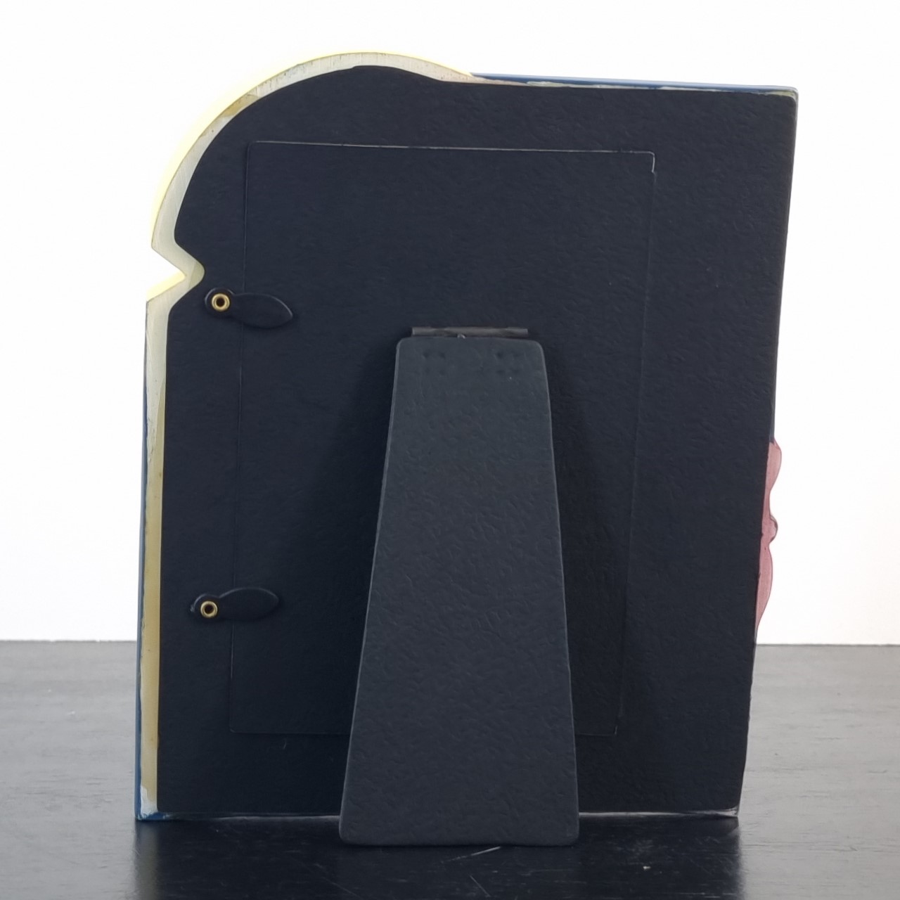 A vintage picture frame of Hot Stuff, crafted by Demons and Merveilles under Harvey Entertainment’s license. Dates back to the 1990s. Made from durable resin, it remains in excellent condition. Hot Stuff’s flaunting a chunk of the moon on his trident like it’s yesterday’s leftover pizza, taking a big chomp with a mischievous grin. But oh snap, the moon’s not having it—its face is a hilarious mix of disbelief and rage! It’s a lunar lunchtime showdown starring Hot Stuff, the moon, and a cosmic case of mistaken snacks!