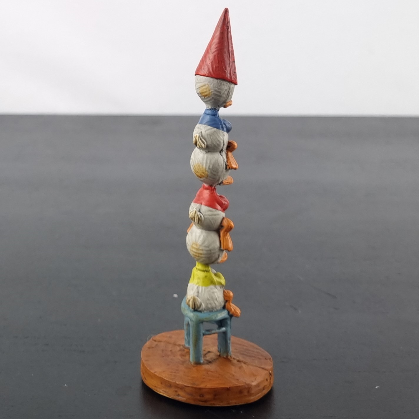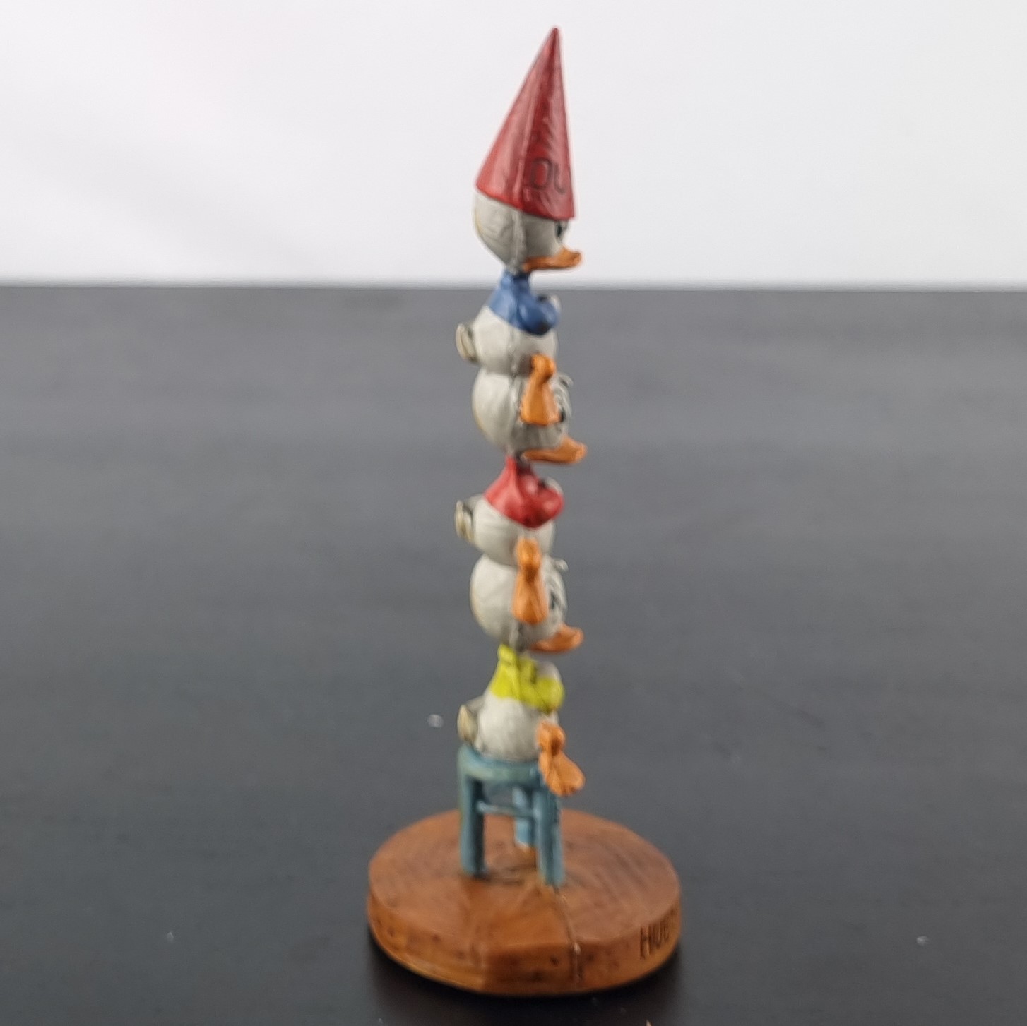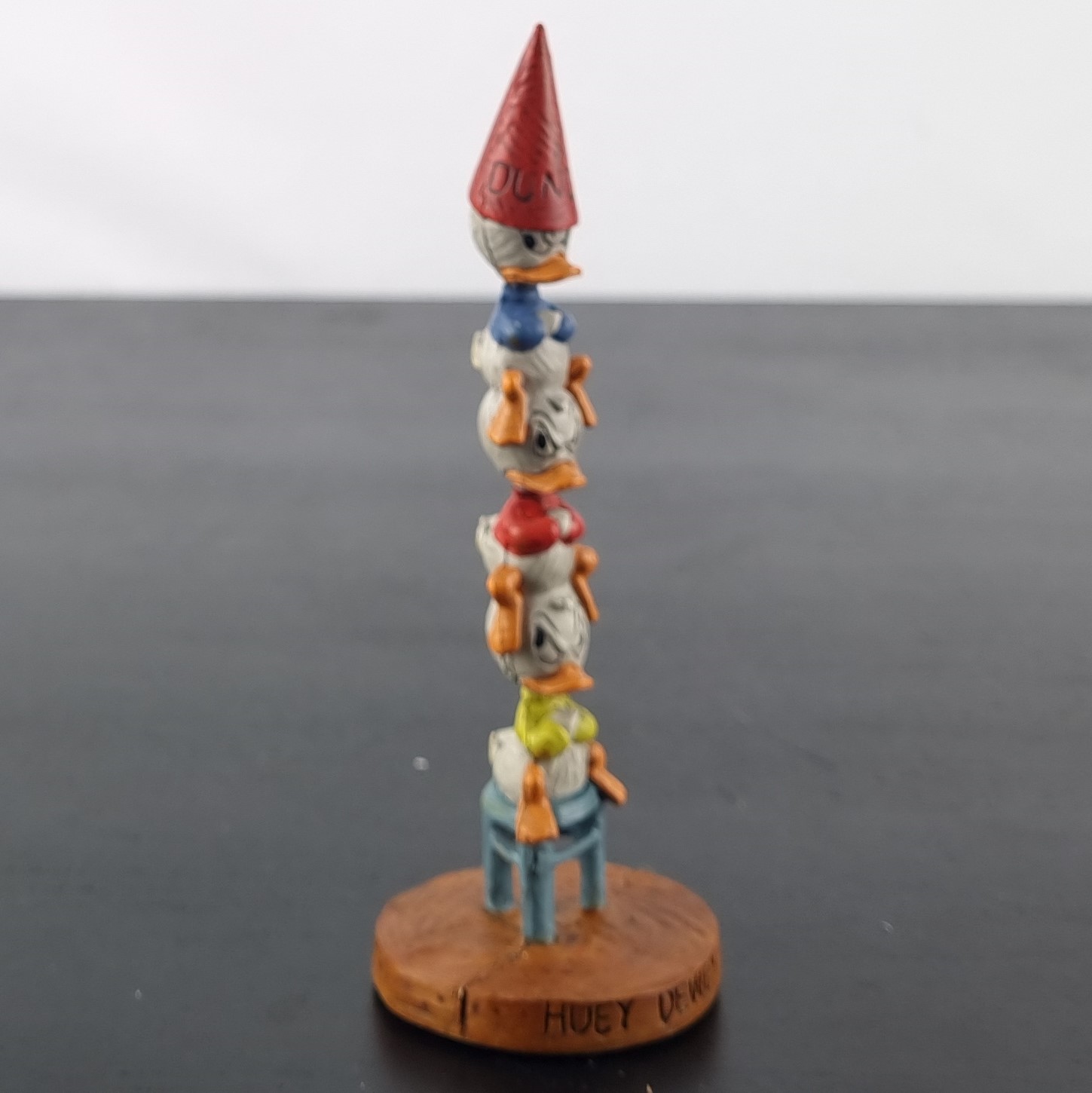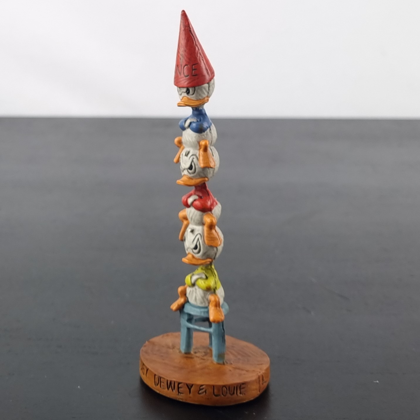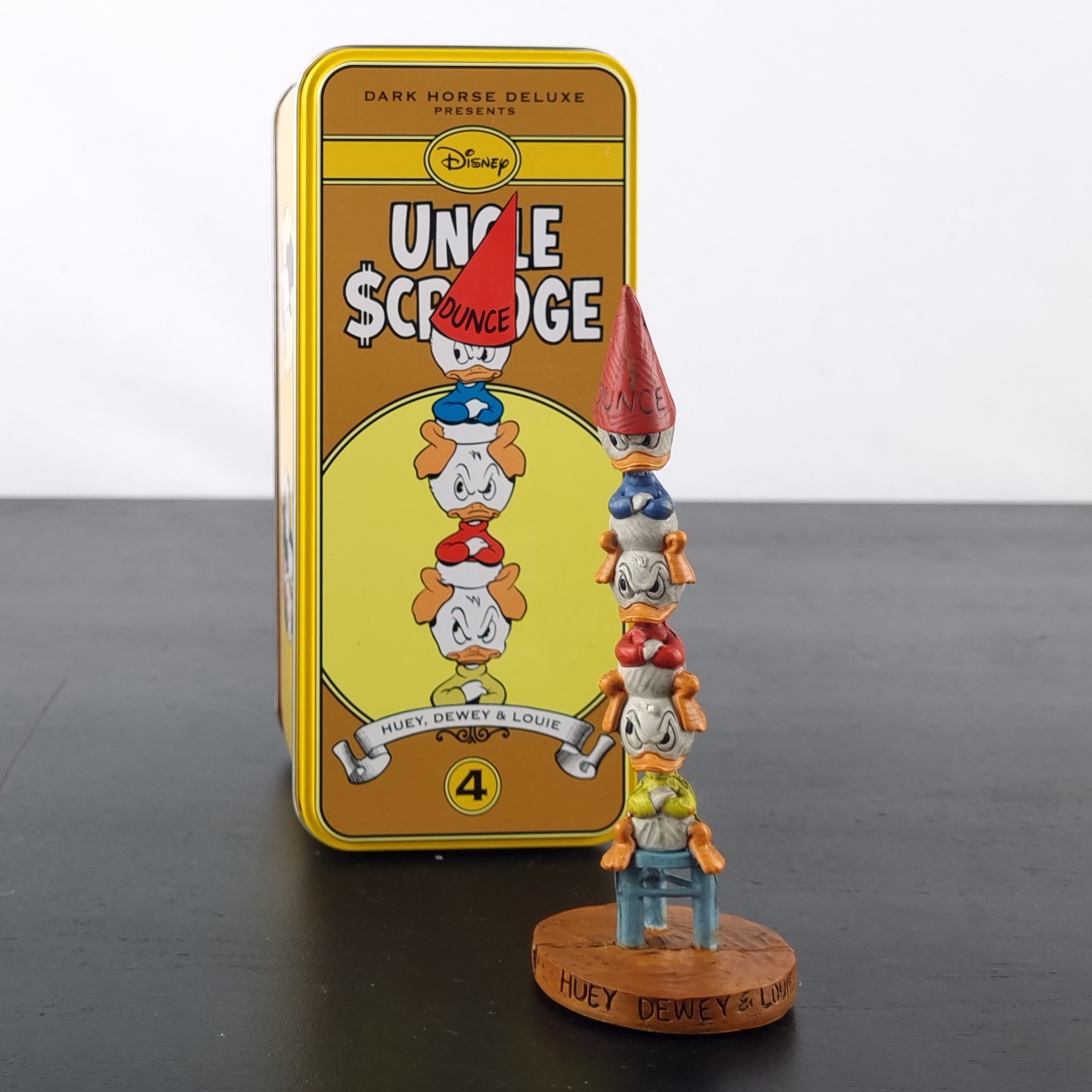 In 2009 Dark Horse Deluxe released a serie of numbered limited edition figurines from Walt Disney characters. These collectibles where packed in a magnificet litho-printed full-color tin box. The box contained not only a Walt Disney collectible statue, but also a vintage style pin-back button and booklet. This magnificent statue is from Huey, Dewey and Louie . Numbered limited edition of 950 pieces worldwide.
