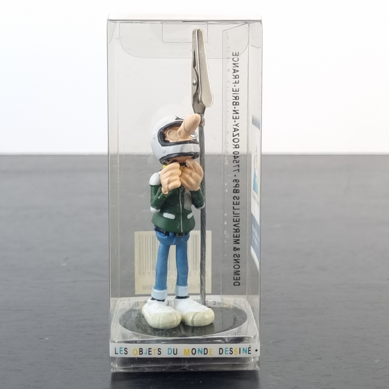 Vintage memo holder of Jean Raoul Ducable, crafted by Demons and Merveilles under Glénat’s license. Dates back to the 1990s. Crafted from durable resin, it remains in excellent condition. Capturing Jean Raoul Ducable putting on his helmet.