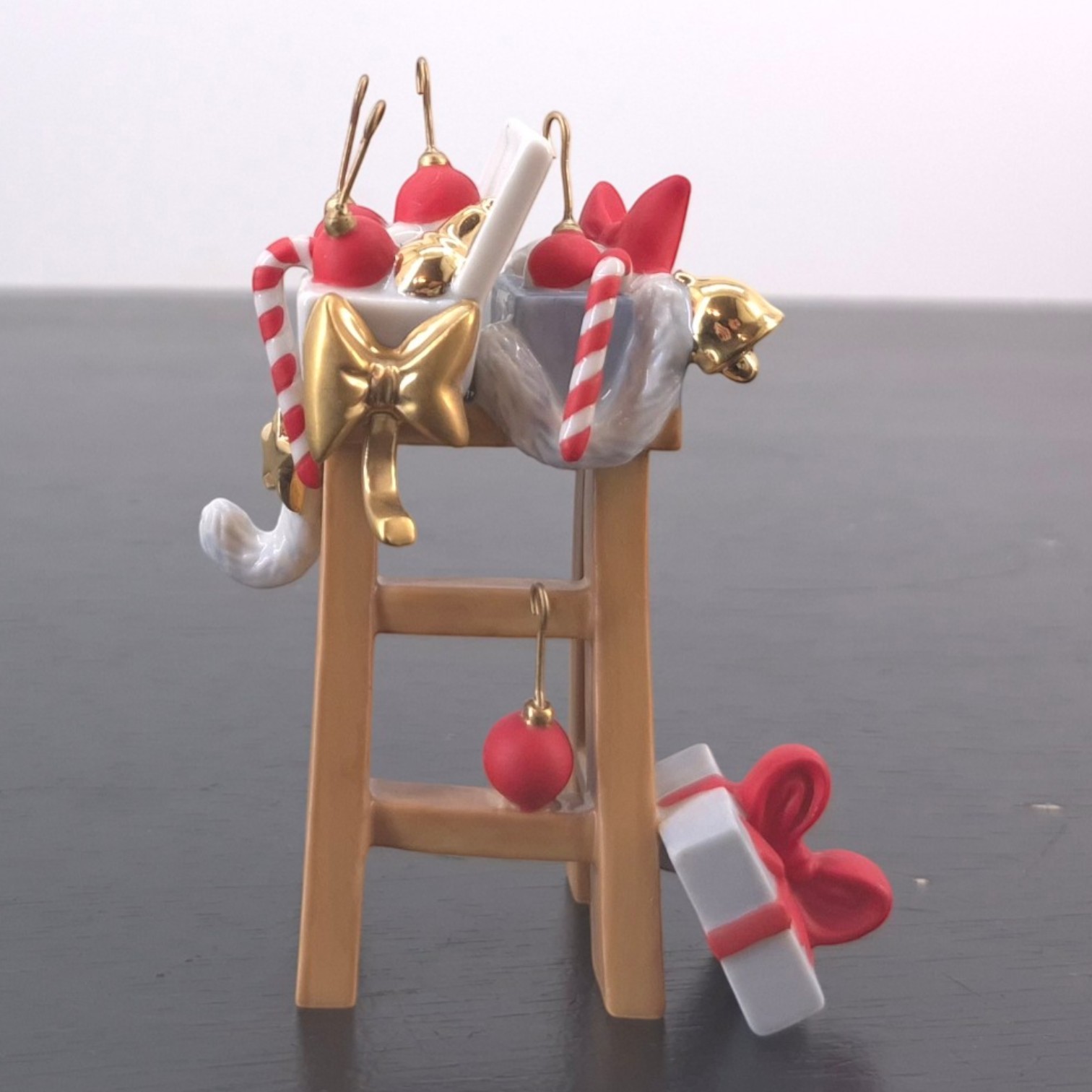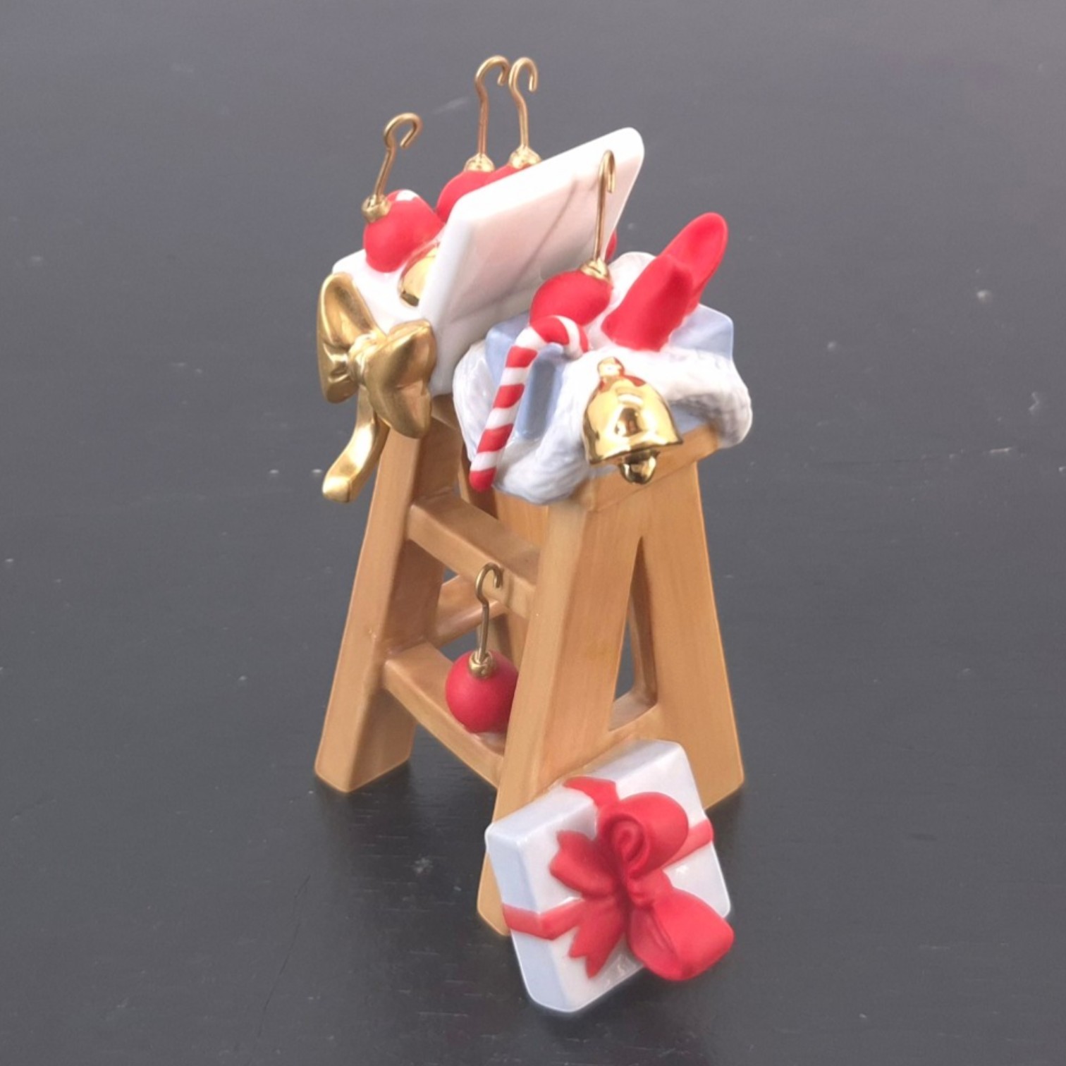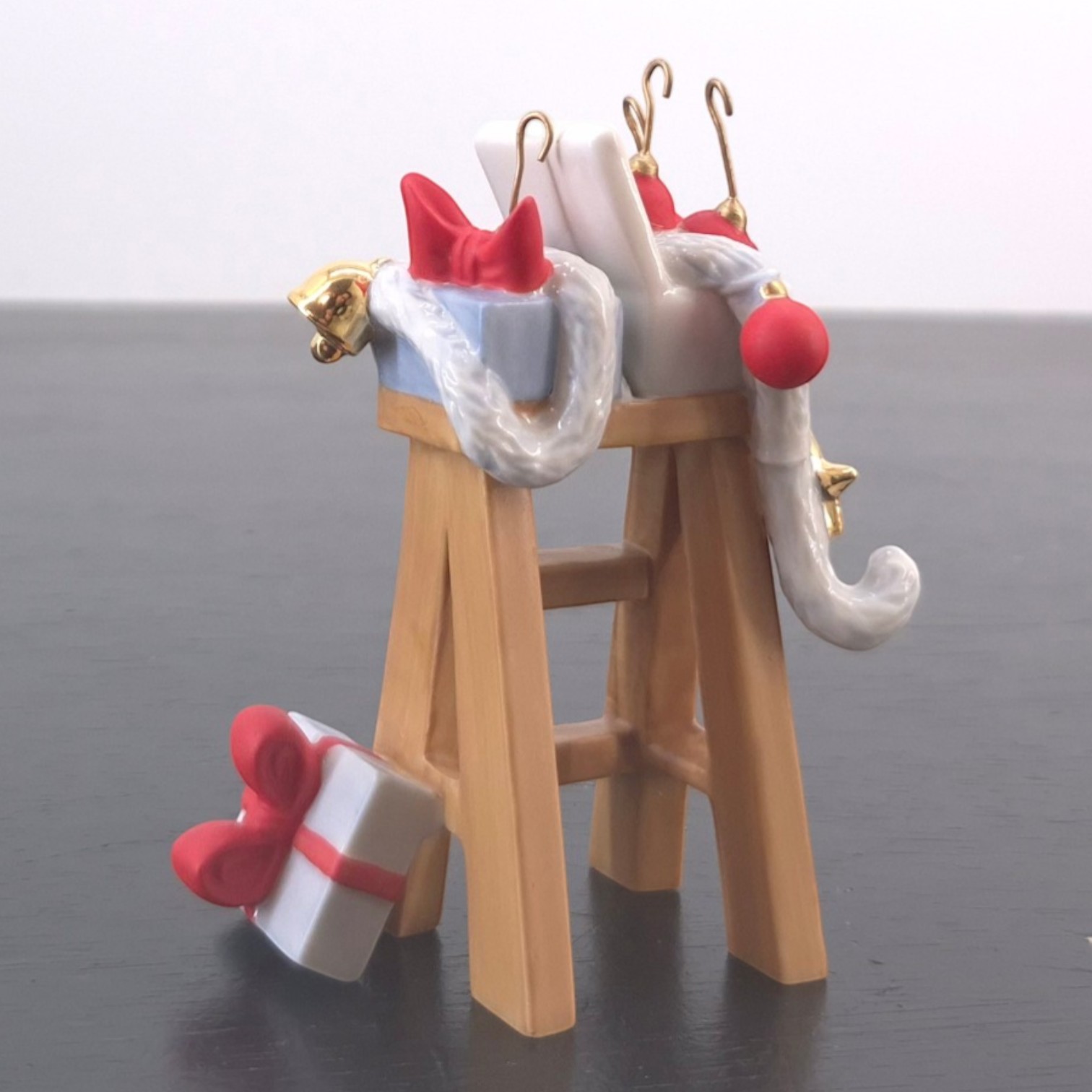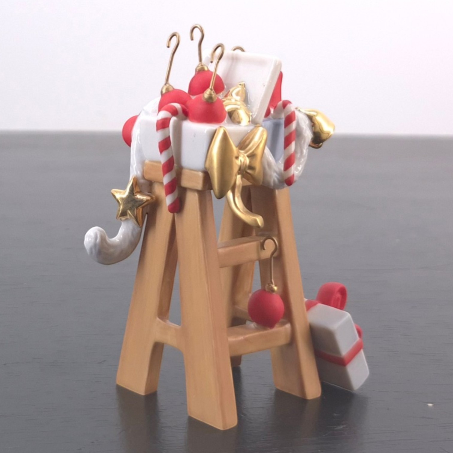 Vintage sculpture featuring a ladder with Christmas decorations, produced by Fyrklövern.