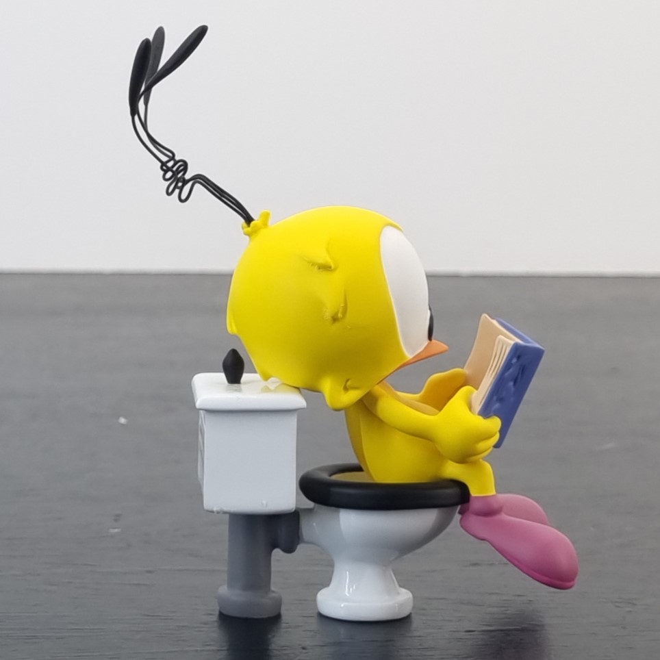 Vintage figurine featuring Le Piaf reading on the toilet, produced by Demons and Merveilles.