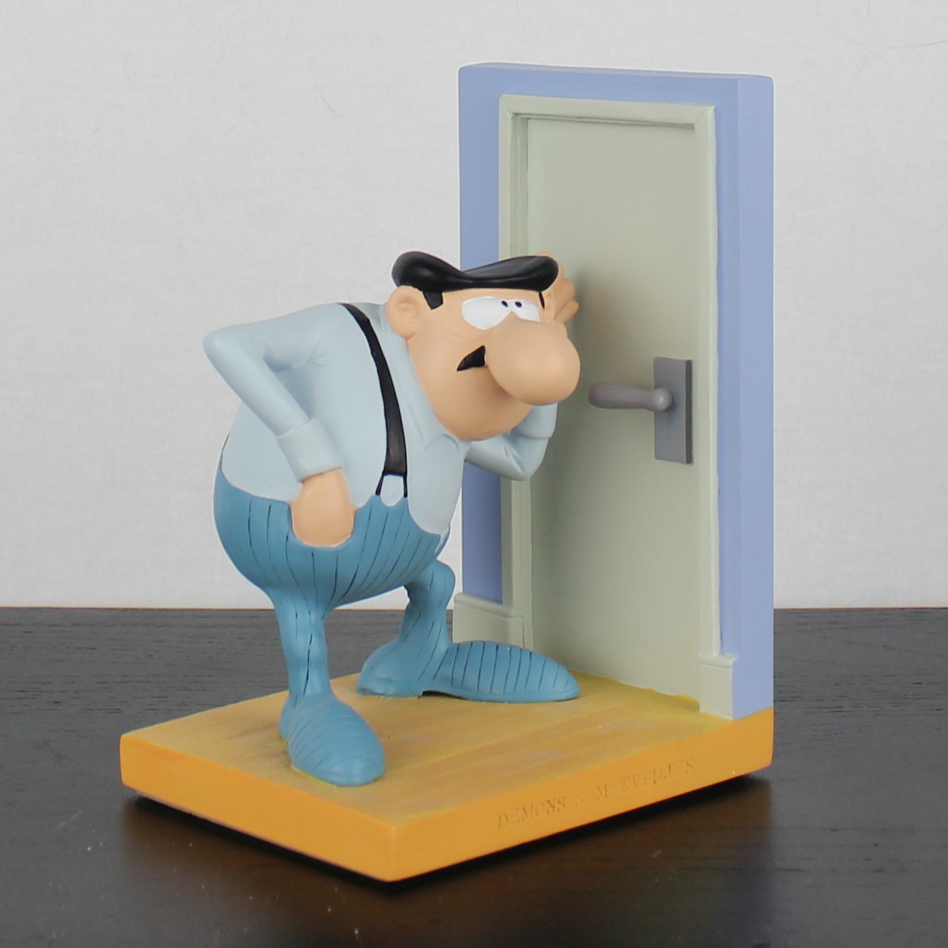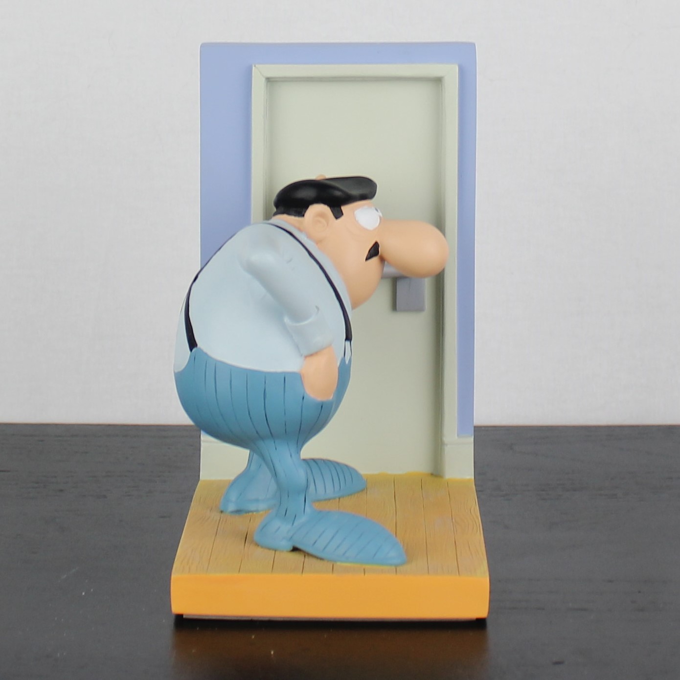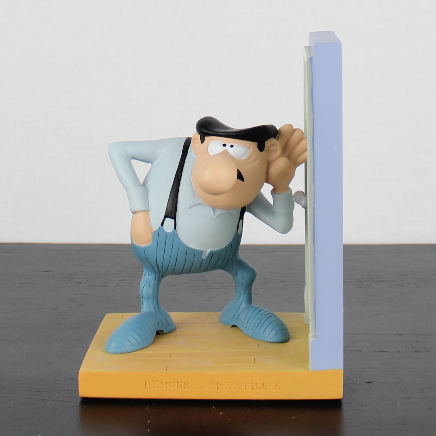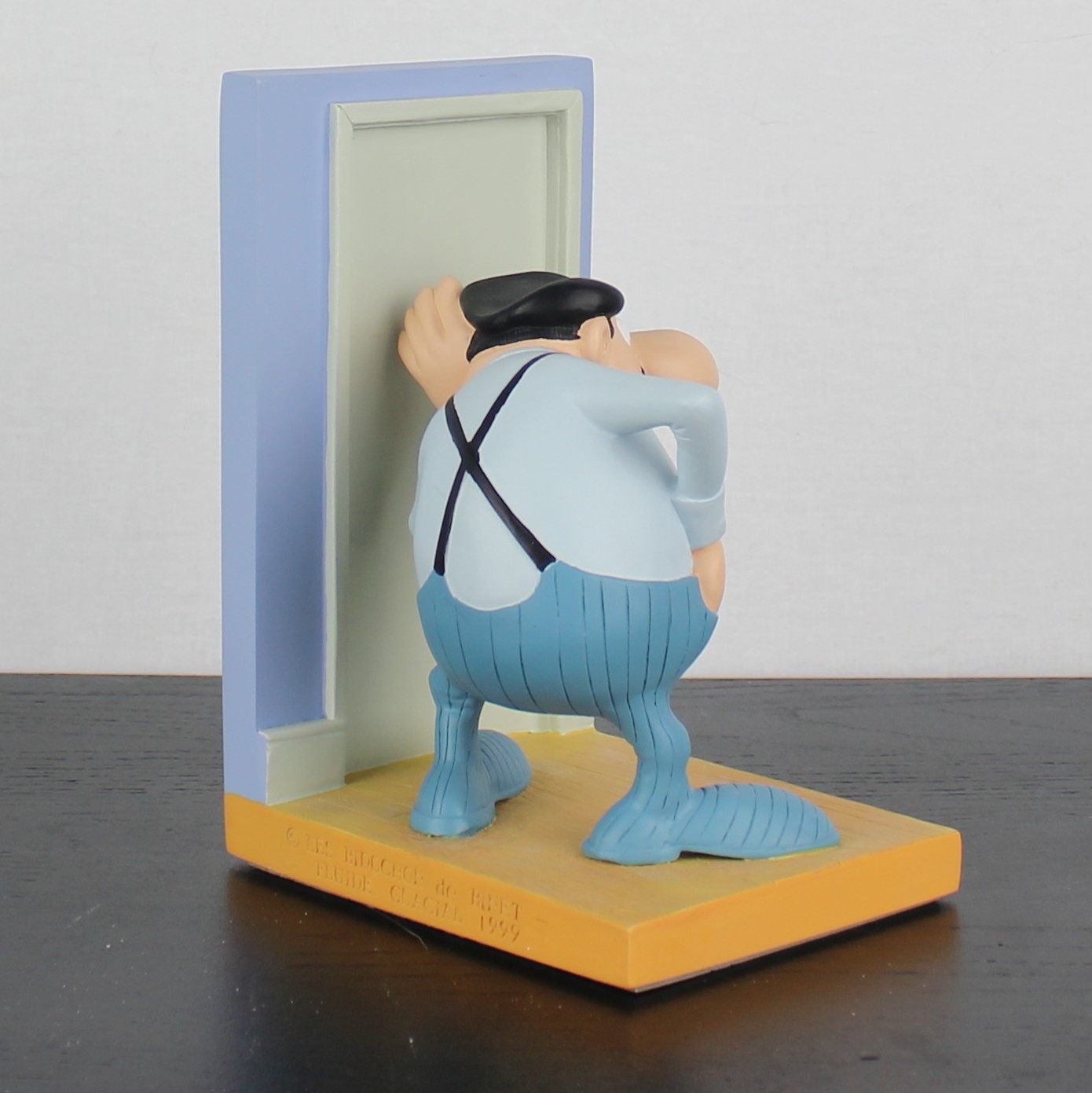 Vintage Mr. Les Bidochons bookend. This collectible bookend of Mr. Les Bidochons listening at the door was made in license of Glad IJs. Demons and Merveilles produced this collectible Bidochons bookend from high quality Resin. This vintage collectible was produced in the year 1999. The bookend is in excellent condition.