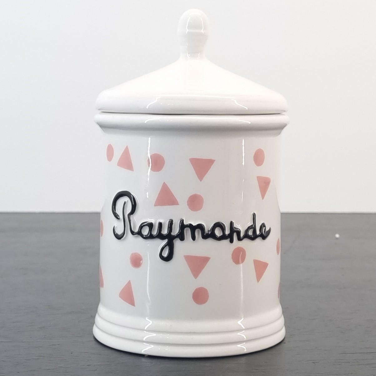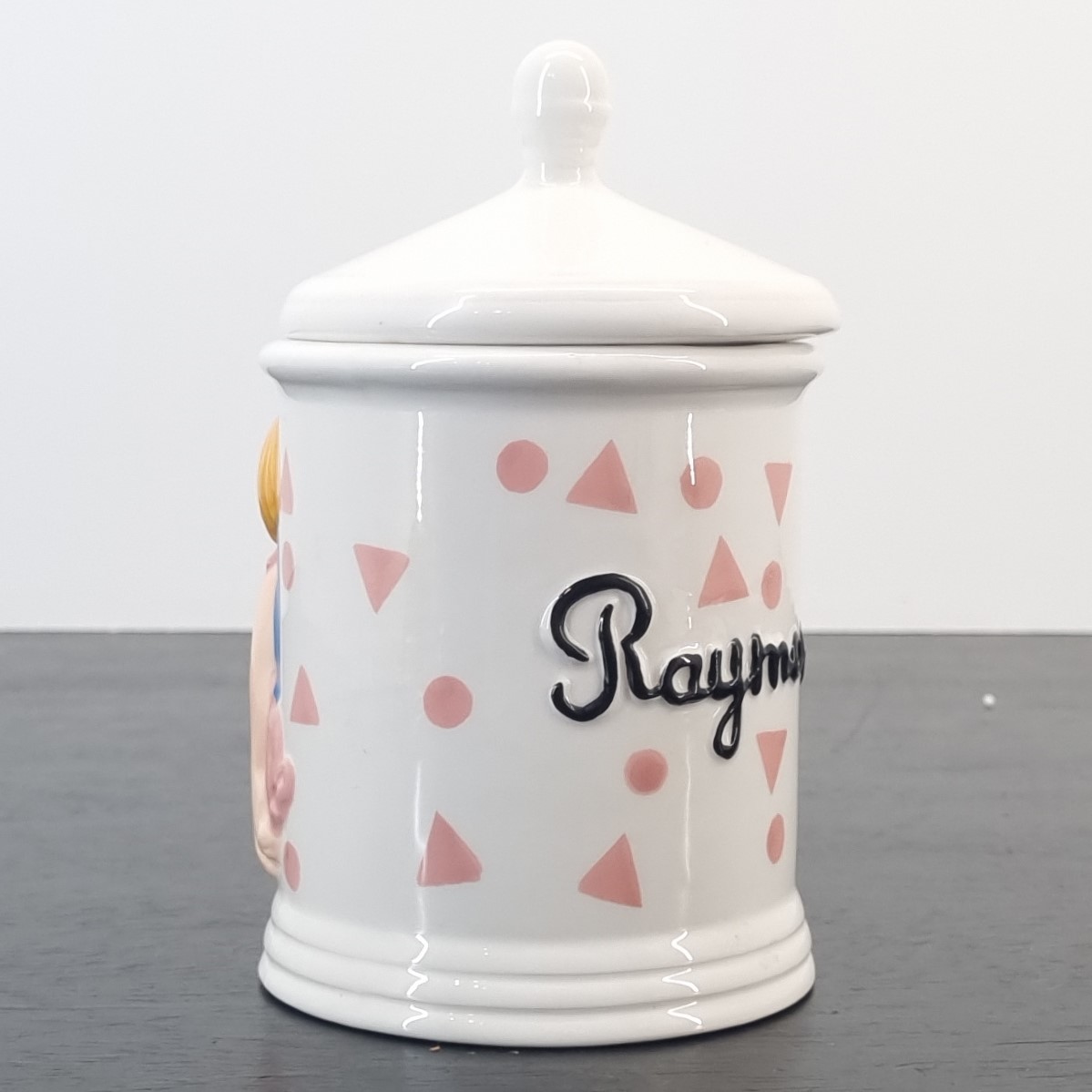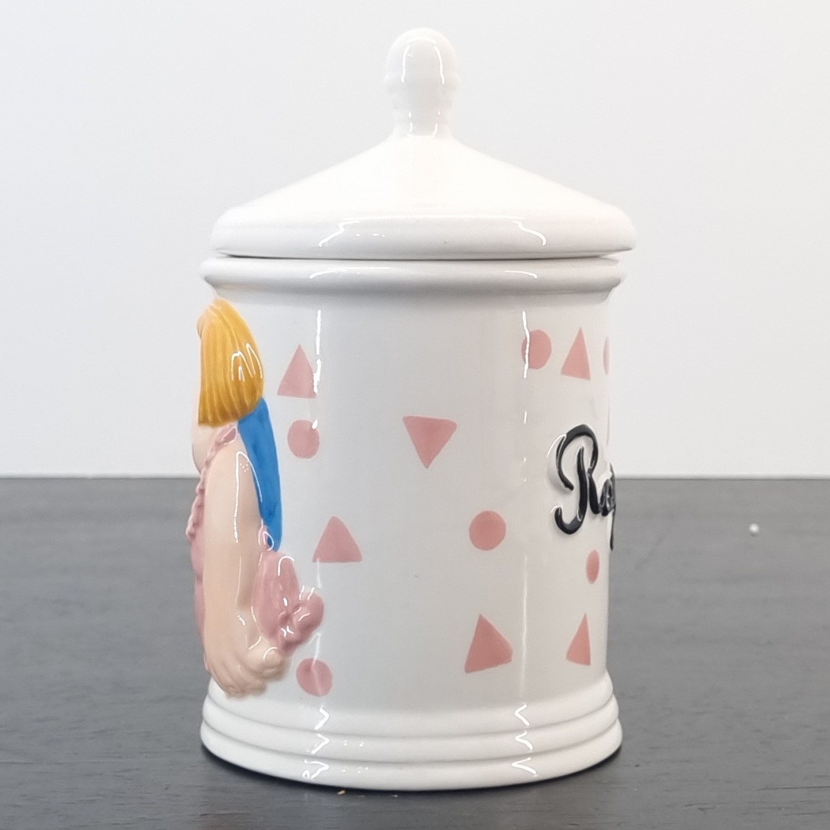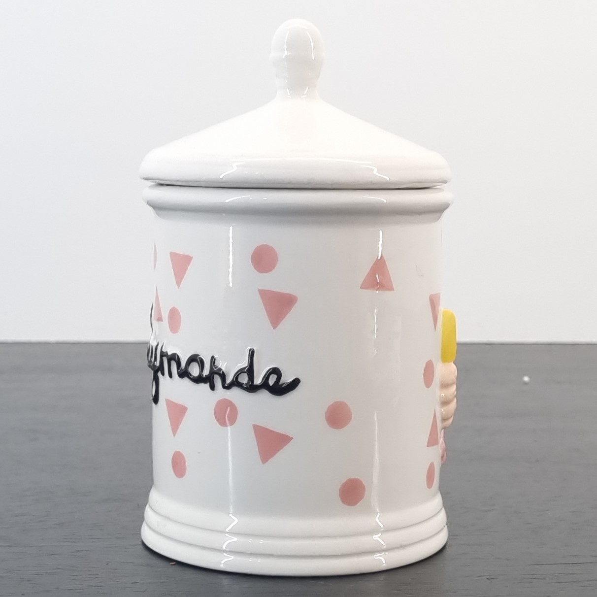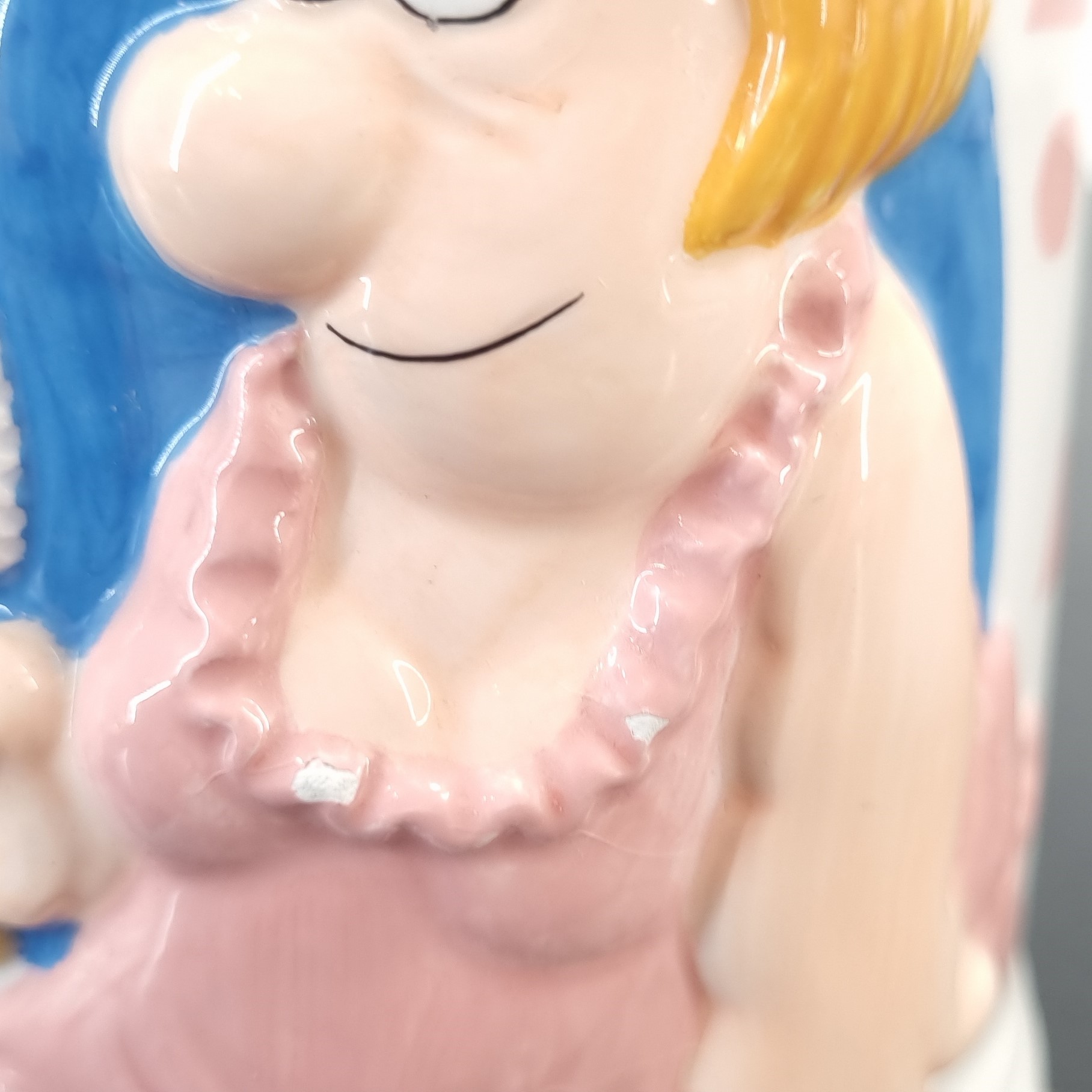 Vintage storage jar featuring Mrs. Les Bidochons, produced by Tropico Diffusion.