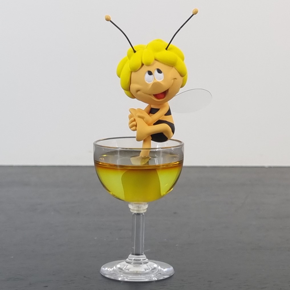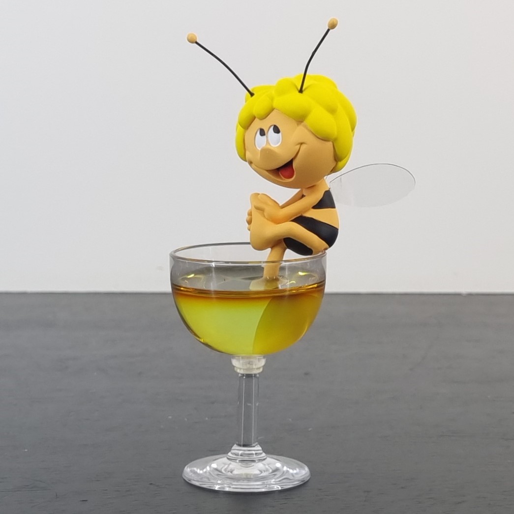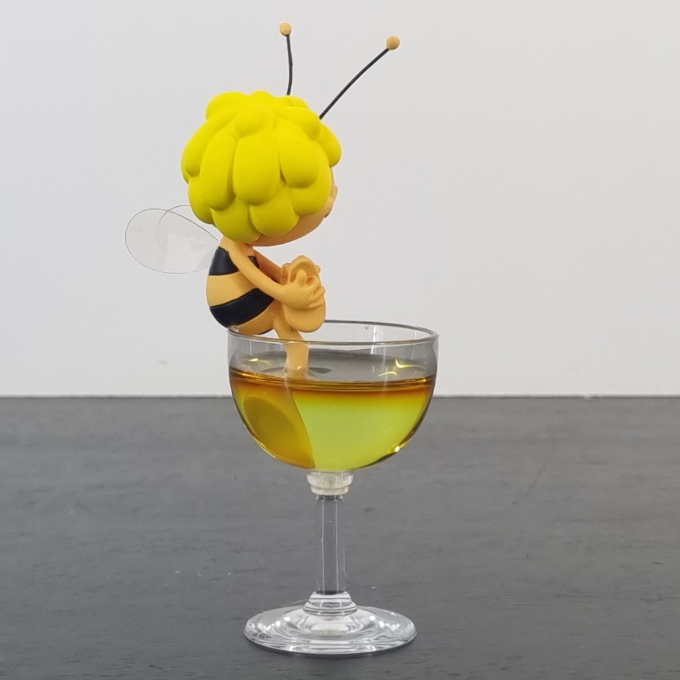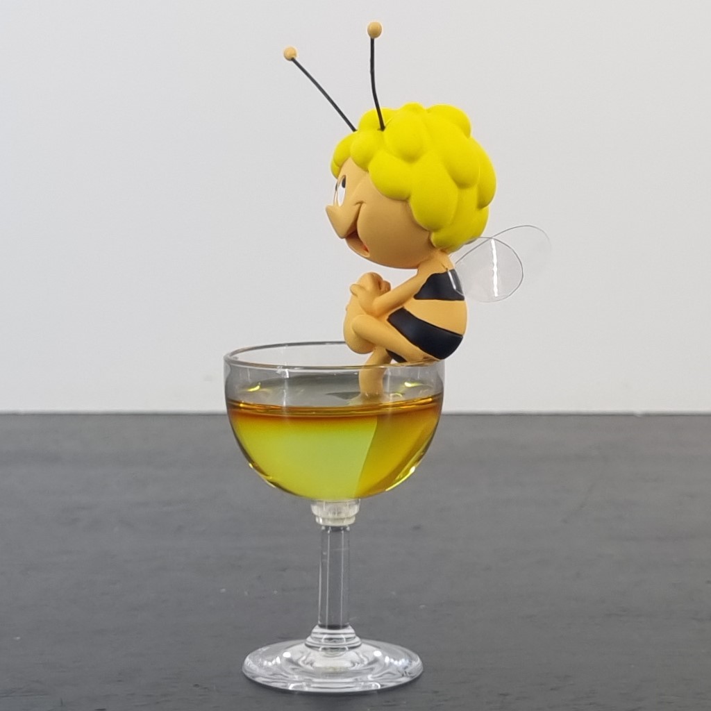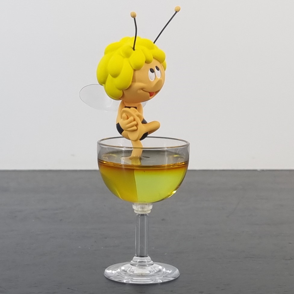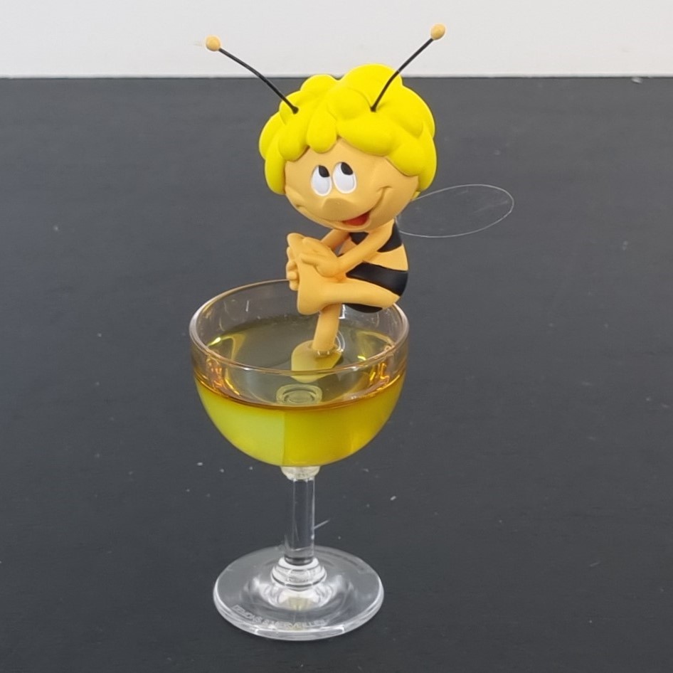Vintage figurine of Maya the Bee, crafted by Demons and Merveilles under Studio 100’s license. Dates back to 2004. Crafted from durable resin, it remains in excellent condition. Bring a touch of joy to your collection with this delightful figurine of Maya the Bee, happily sitting on the edge of a glass and washing her feet in the drink. Perfect for any fan, this piece captures Maya’s playful and carefree spirit. Add a whimsical charm and a smile to your space with this enchanting figurine!