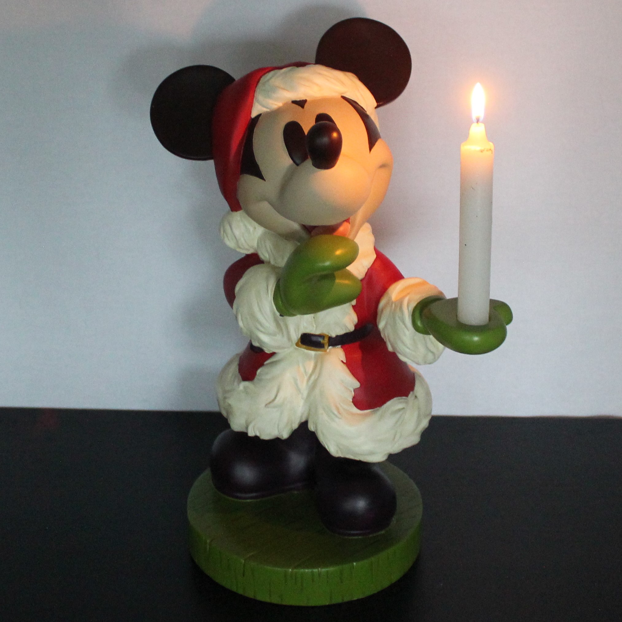 Celebrate the holidays in warmth with Mickey Mouse as Santa, holding a candle.