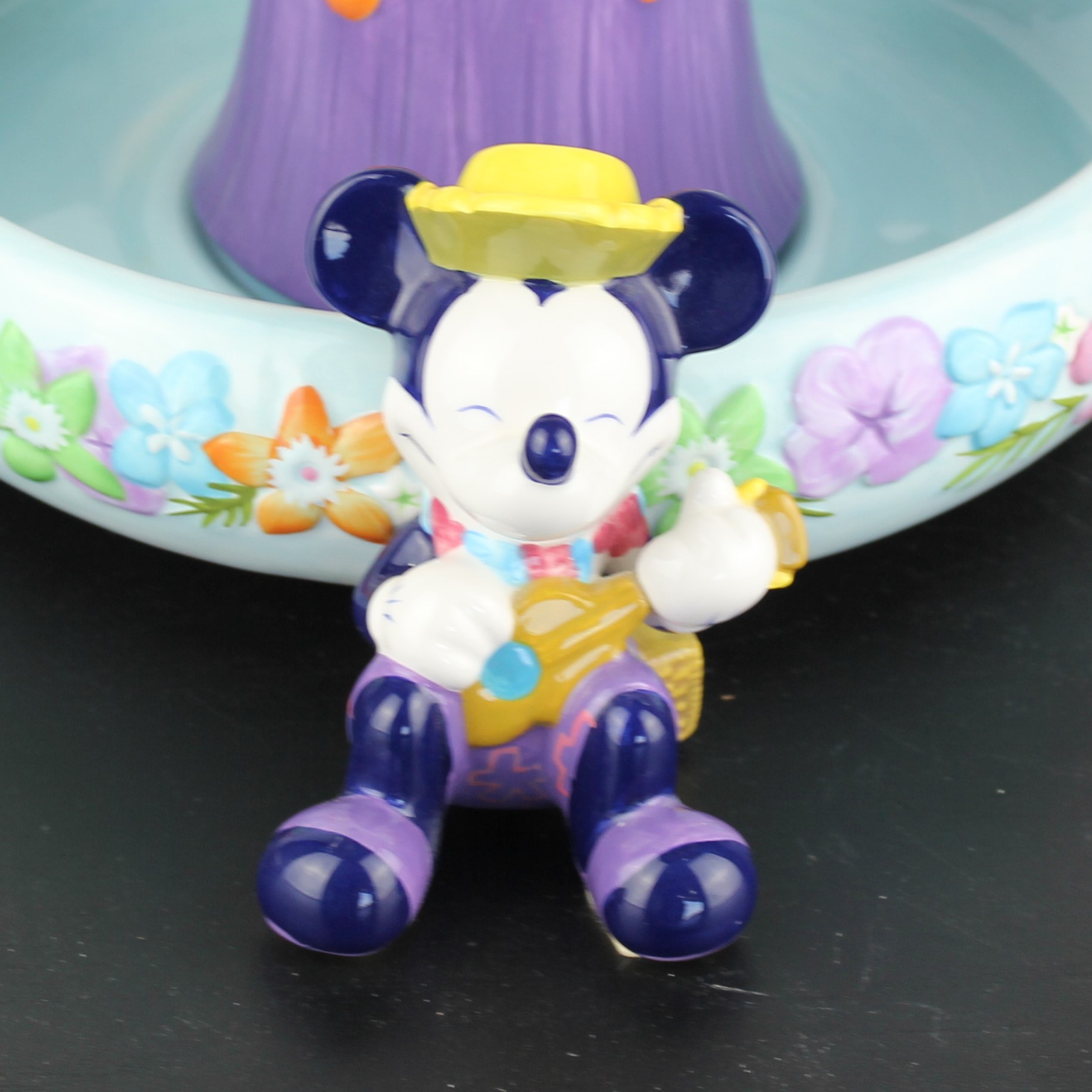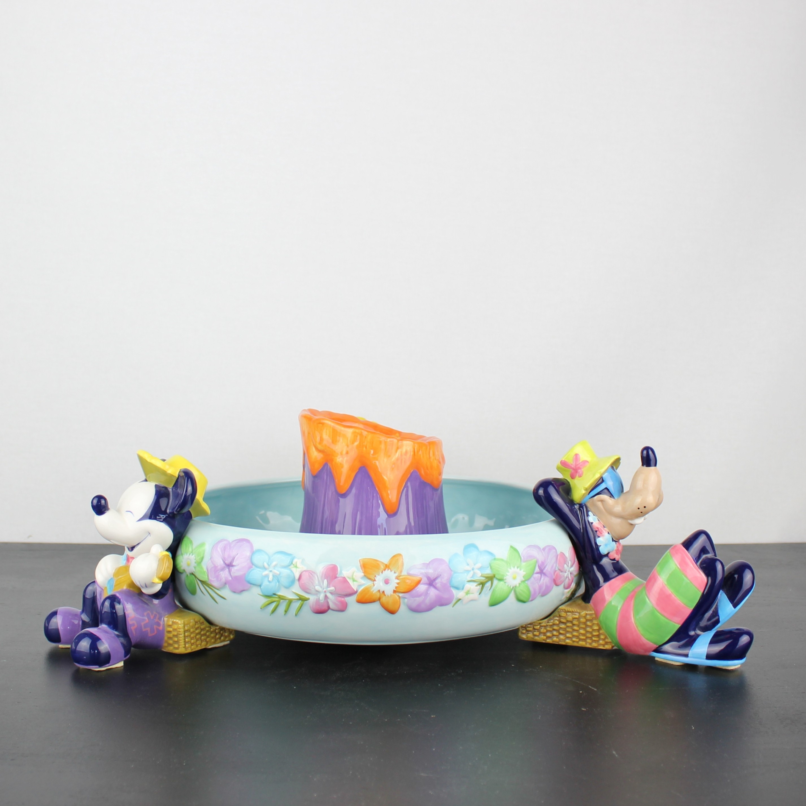 Magnificent rare snack bowl from Walt Disney. Mickey Mouse, Donald Duck and Goofy are relaxing under a vulcano. Excellent to use for your hot chips and hot sauce.