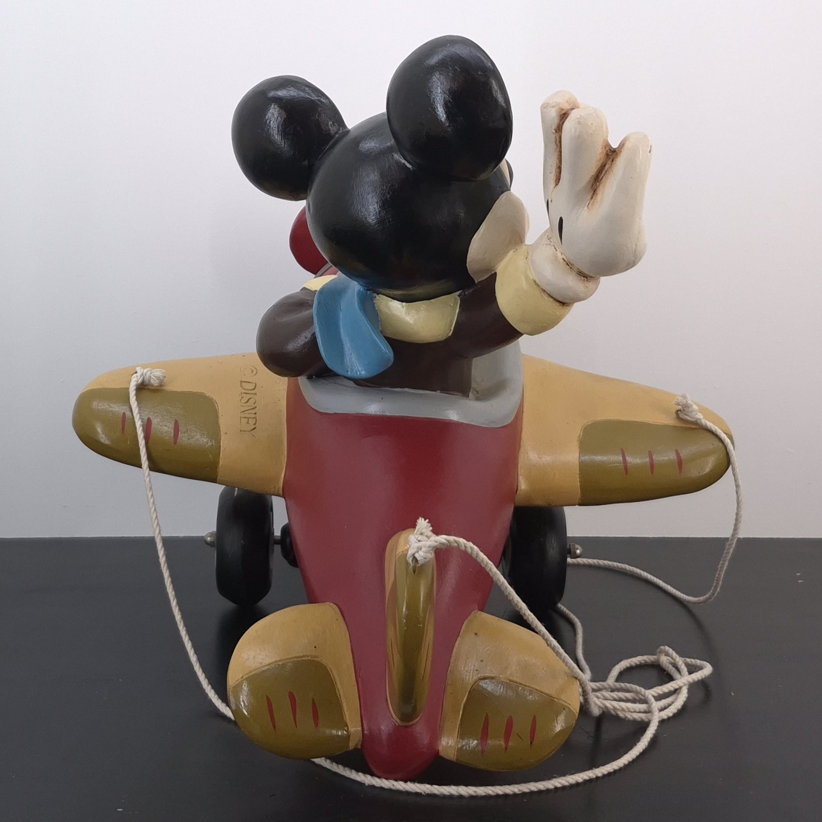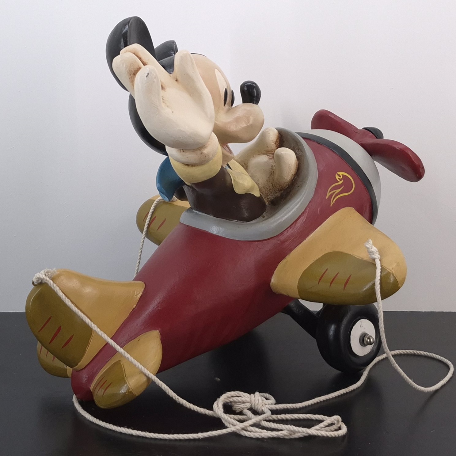 Vintage statue of Mickey Mouse as a pilot in a plane, crafted under Walt Disney’s license. Dates back to 1980s / 1990s. Crafted from durable polyester, it remains in excellent condition. Take to the skies with this delightful hanging statue of Mickey Mouse as a pilot, waving cheerfully from his vintage plane! With intricate details and a playful pose, Mickey brings a sense of nostalgia and adventure to any room. Perfect for Disney enthusiasts and collectors, this charming piece adds personality and whimsy to your decor. Hang it up to let Mickey spread joy and magic while soaring high in your space. Let this timeless icon take flight in your collection today!