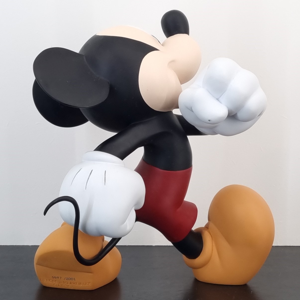 A vintage statue of Mickey Mouse, crafted by Demons and Merveilles under Walt Disney’s license. Dates back to 2001. Made from durable resin, it remains in excellent condition. Capturing Mickey Mouse walking. A numbered limited edition statue.