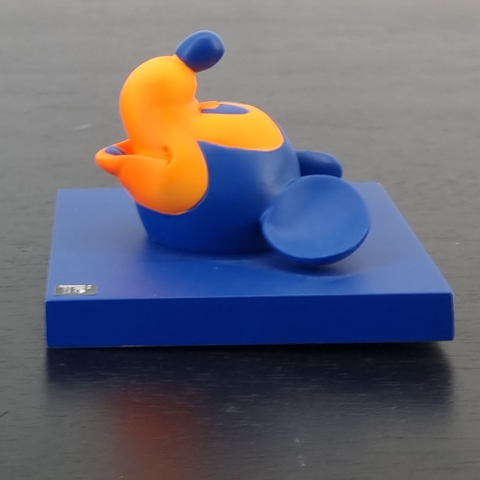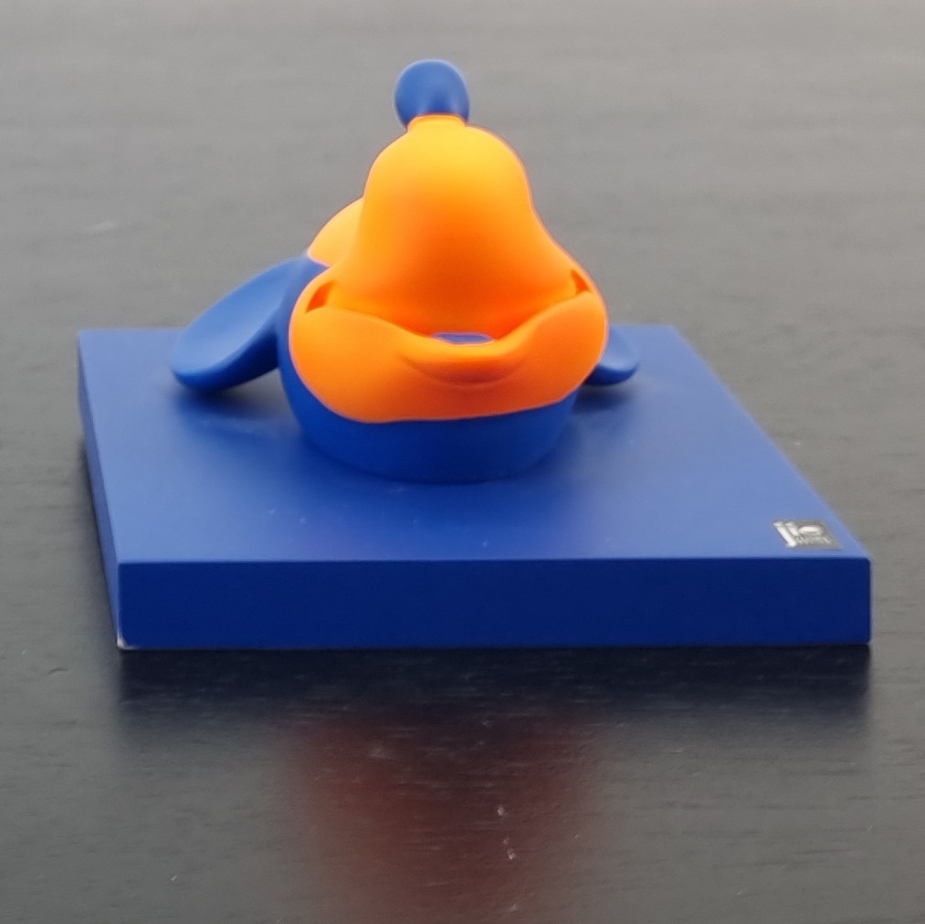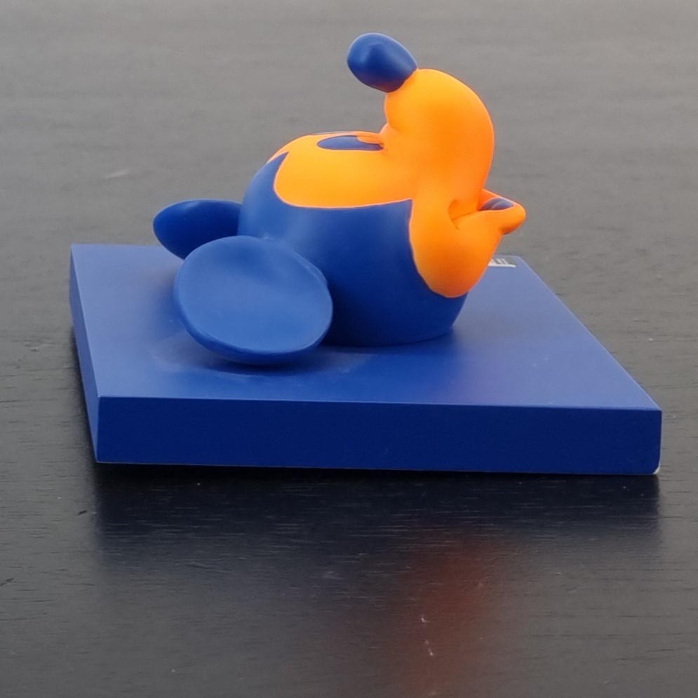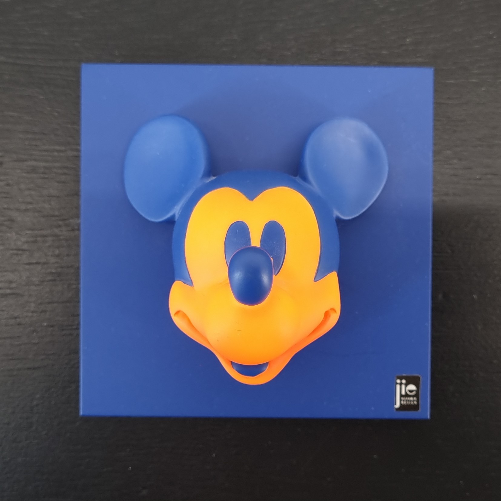 This three-dimensional wall art, featuring the beloved character Mickey Mouse’s face, is a collectible from Jie Art under license from Walt Disney. Crafted from high-quality resin, Joakim Lindstrup designed this piece in the late 1980s to early 1990s. Consequently, this vintage Walt Disney collectible remains in excellent condition. The piece showcases a vibrant 3D depiction of Mickey Mouse, featuring a dynamic blend of orange and blue