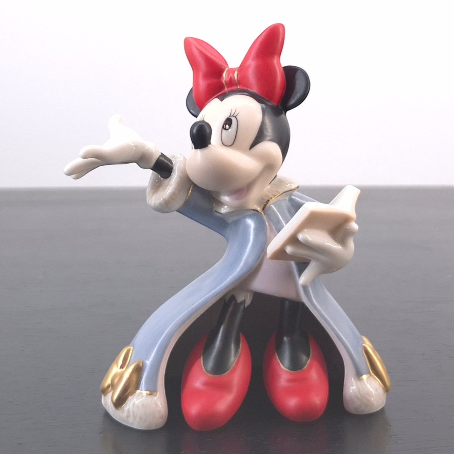 This vintage Minnie Mouse sculpture is part of Mickey’s Christmas Eve (Musses Julafton), a festive display set from Stefan Lindahl’s Disney Collection created under Disney’s license and issued by Fyrklövern. Dates back to the 2000s. Crafted from durable porcelain, it remains in excellent condition. As an individual piece, Minnie stands out through her classic silhouette and expressive styling. Within the full display, she adds balance, charm and recognizable Disney presence to the festive scene around Mickey and his friends. The porcelain construction, coordinated finish and nostalgic holiday design make this figure especially appealing for collectors of Disney seasonal displays.
