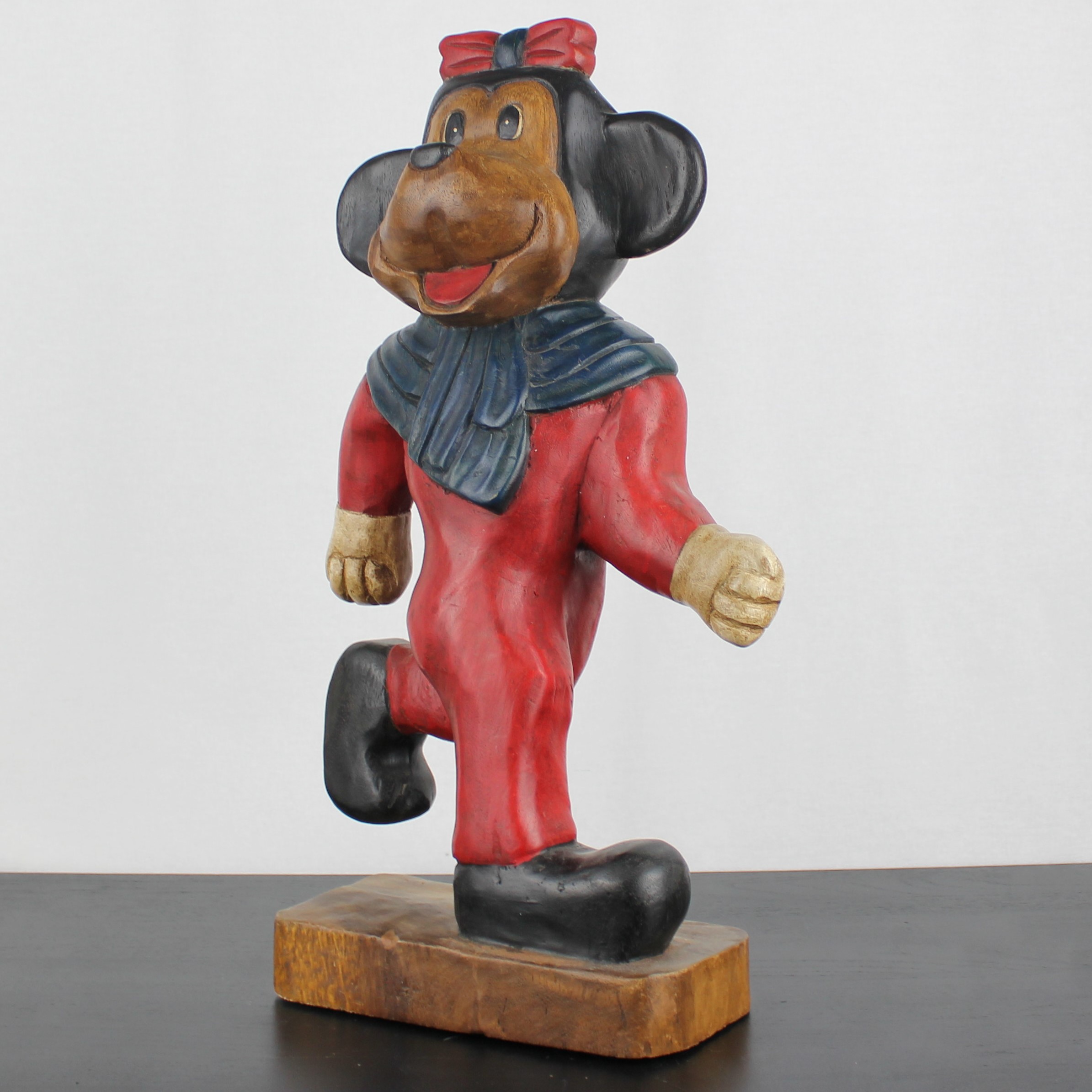 This magnificent statue is a unlicensed statue depicting Minnie Mouse. The statue is made out of solid wood. Because of this the statue is incredible heavy. There is no way of really knowing who, where and when this magnificent item is produced. What we do know is that this item is produced by hand, a great achievement by the artist.