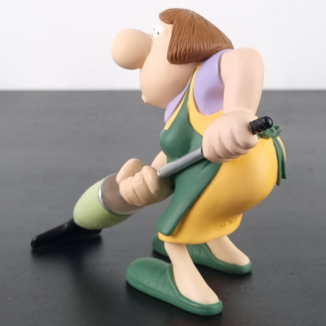 Magnificent, vintage statue of Mrs. Les Bidochons vacuuming.