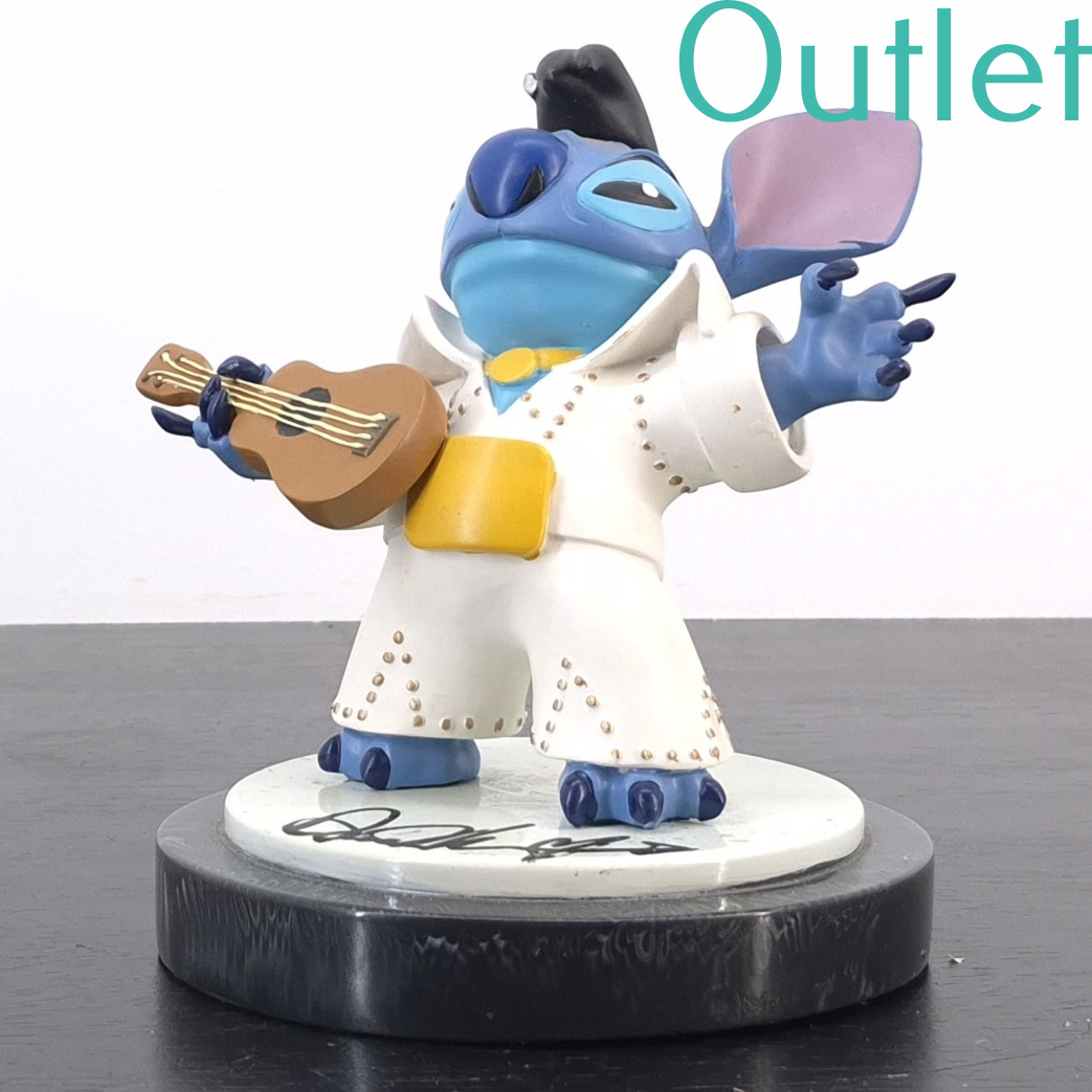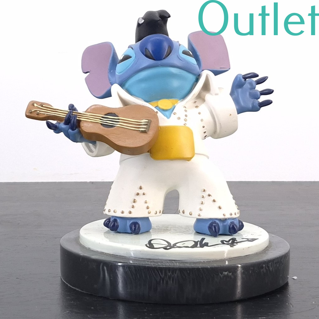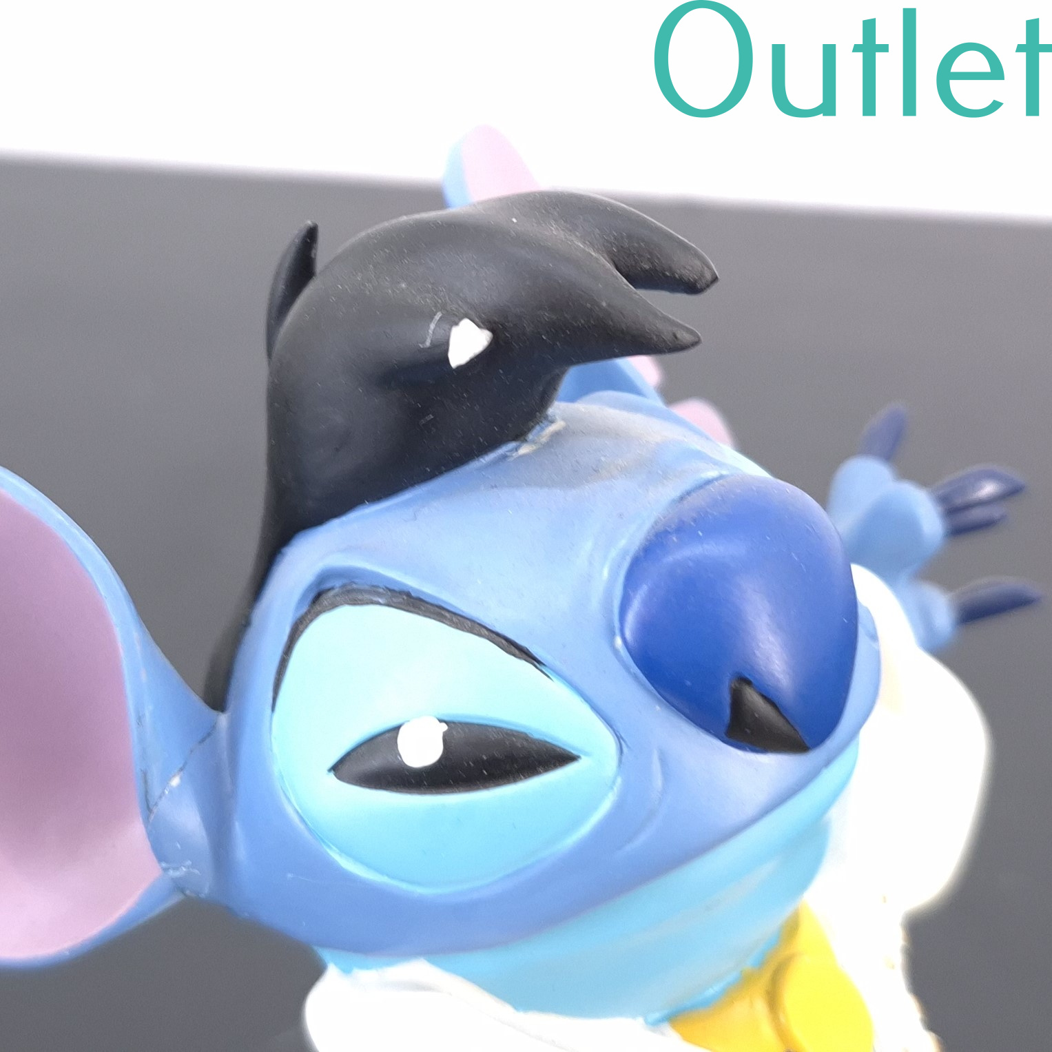 This statue of Stitch is in our outlet category because there is a part broken of his hair. And shows repairs at the ear and arm.
